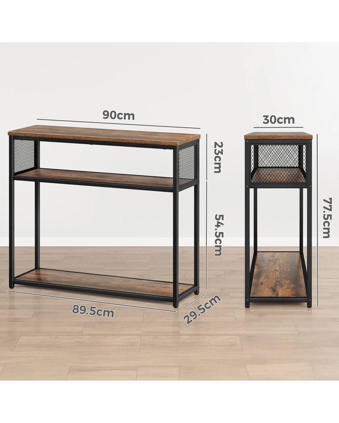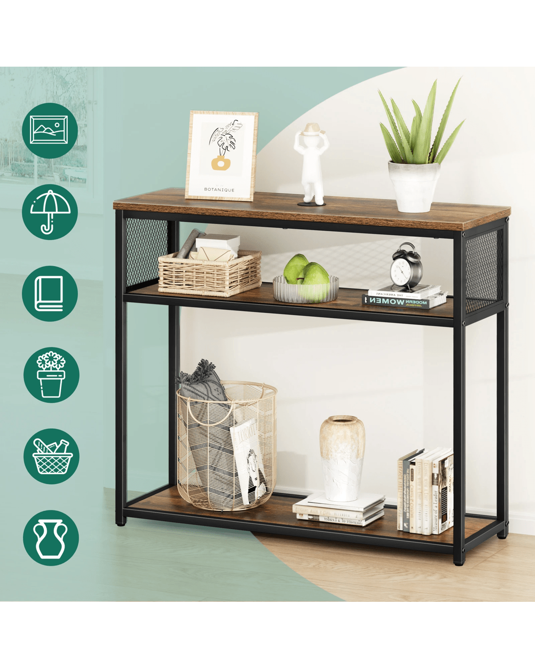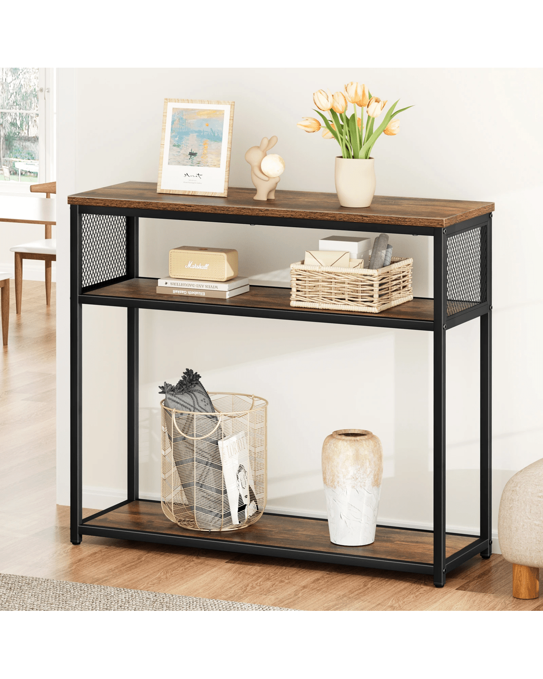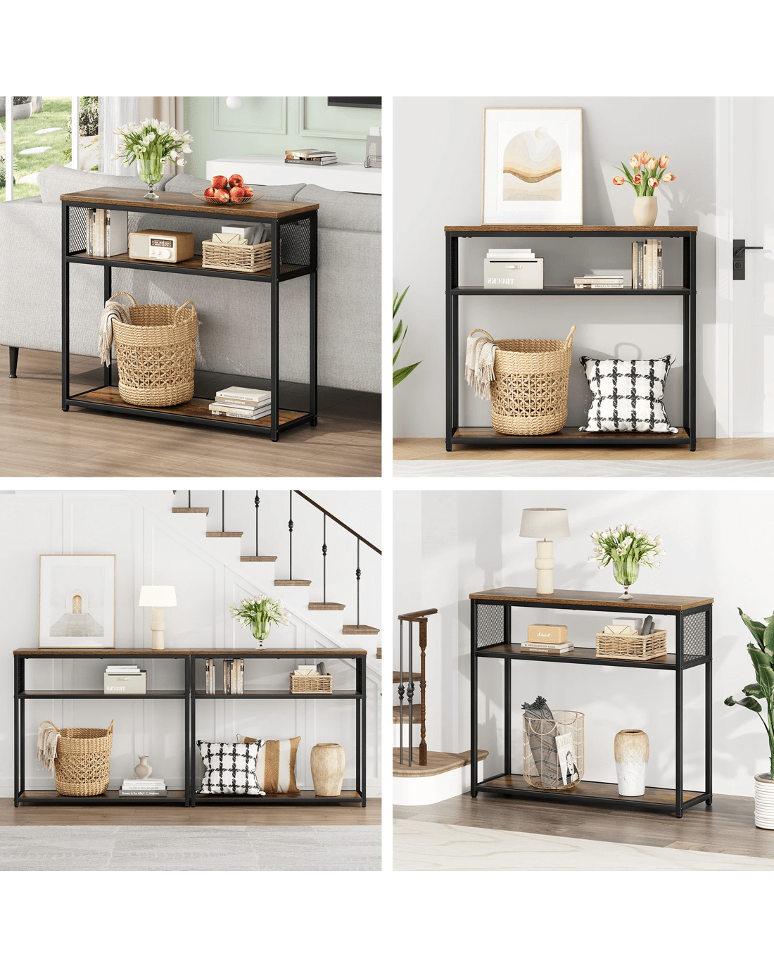 Not only will it add a vintage look to your space, but the console table also provides additional storage options with 3 tiers. The ample tabletop is great for decor displays, while the small items are suitable to be palced at the middle shelf which comes with wire mesh on either ends, keeping things from dropping onto the ground. Featuring wider space, the bottom shelf is ideal for storing other large goods. With compact and narrow deigsn, this console table perfectly fits in the hallway, entryway, dining room or serves as a sofa table behind the sofa backrest, infusing style and functionality into your living space effortlessly.