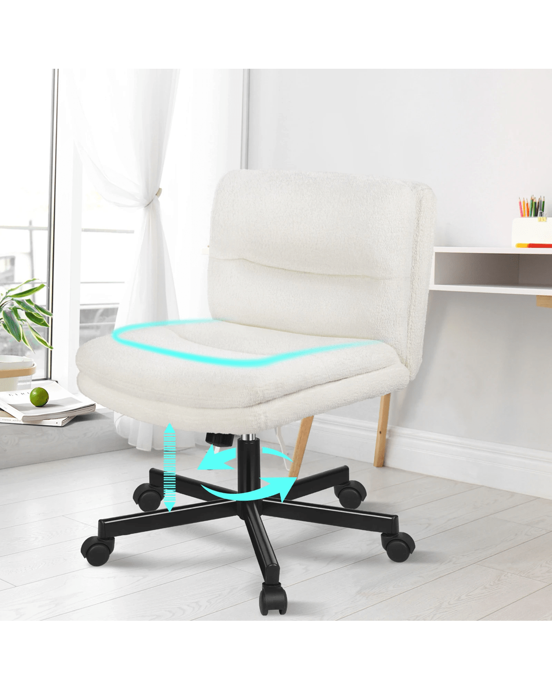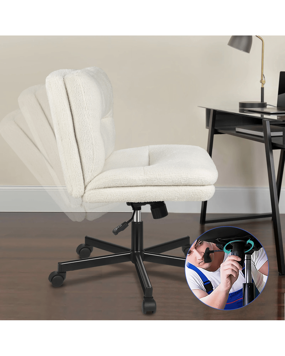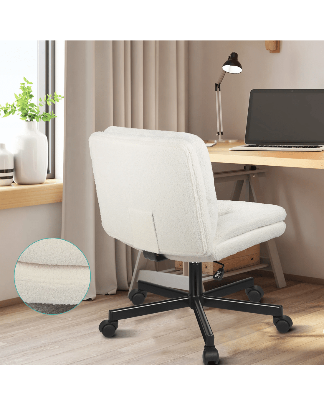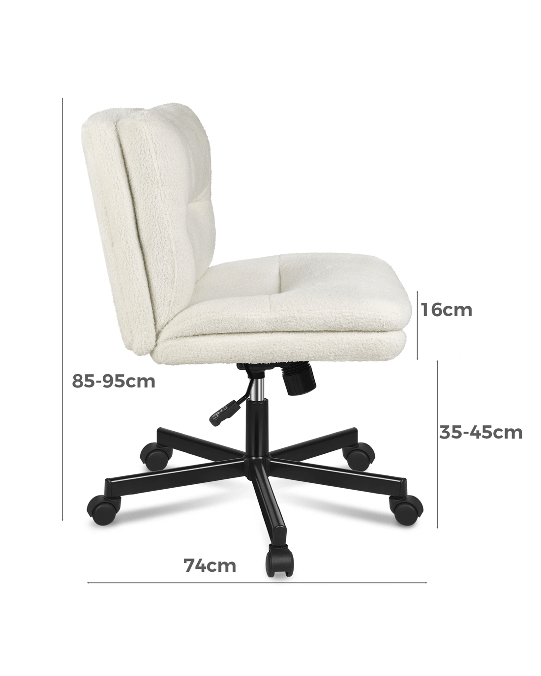 Alfordson Desk Chair Office Computer Armless Wide Seat Mid Back Boucle - White