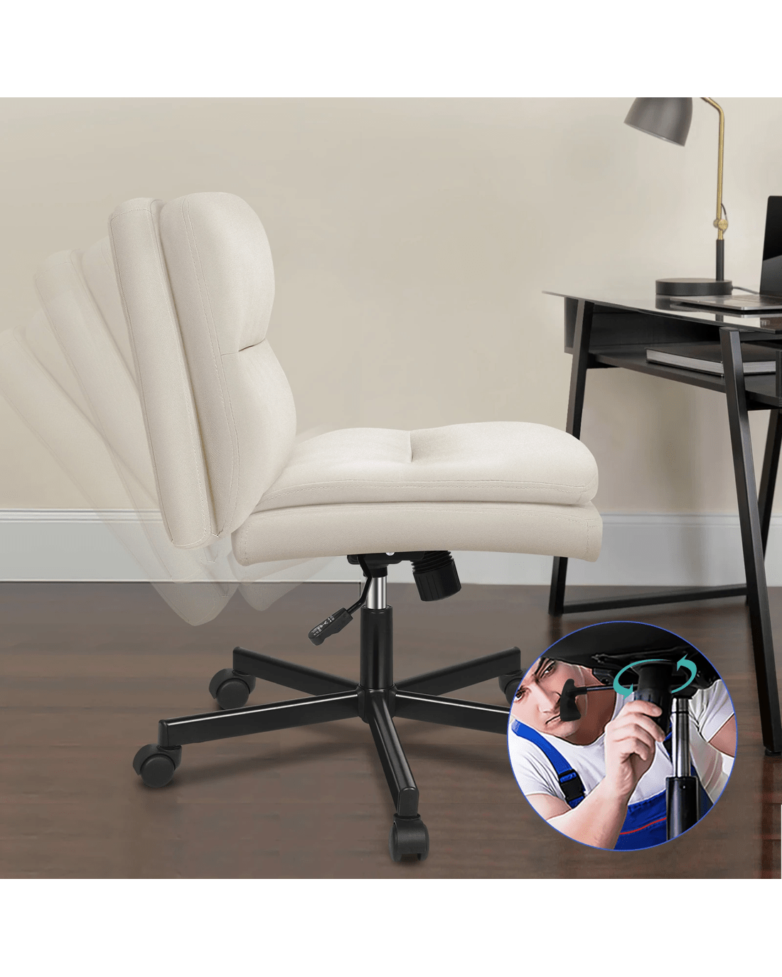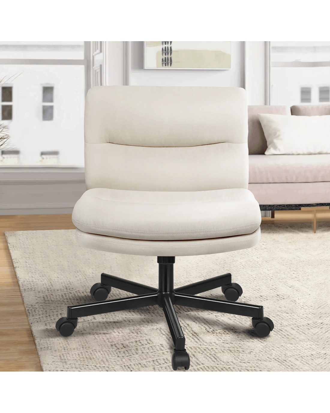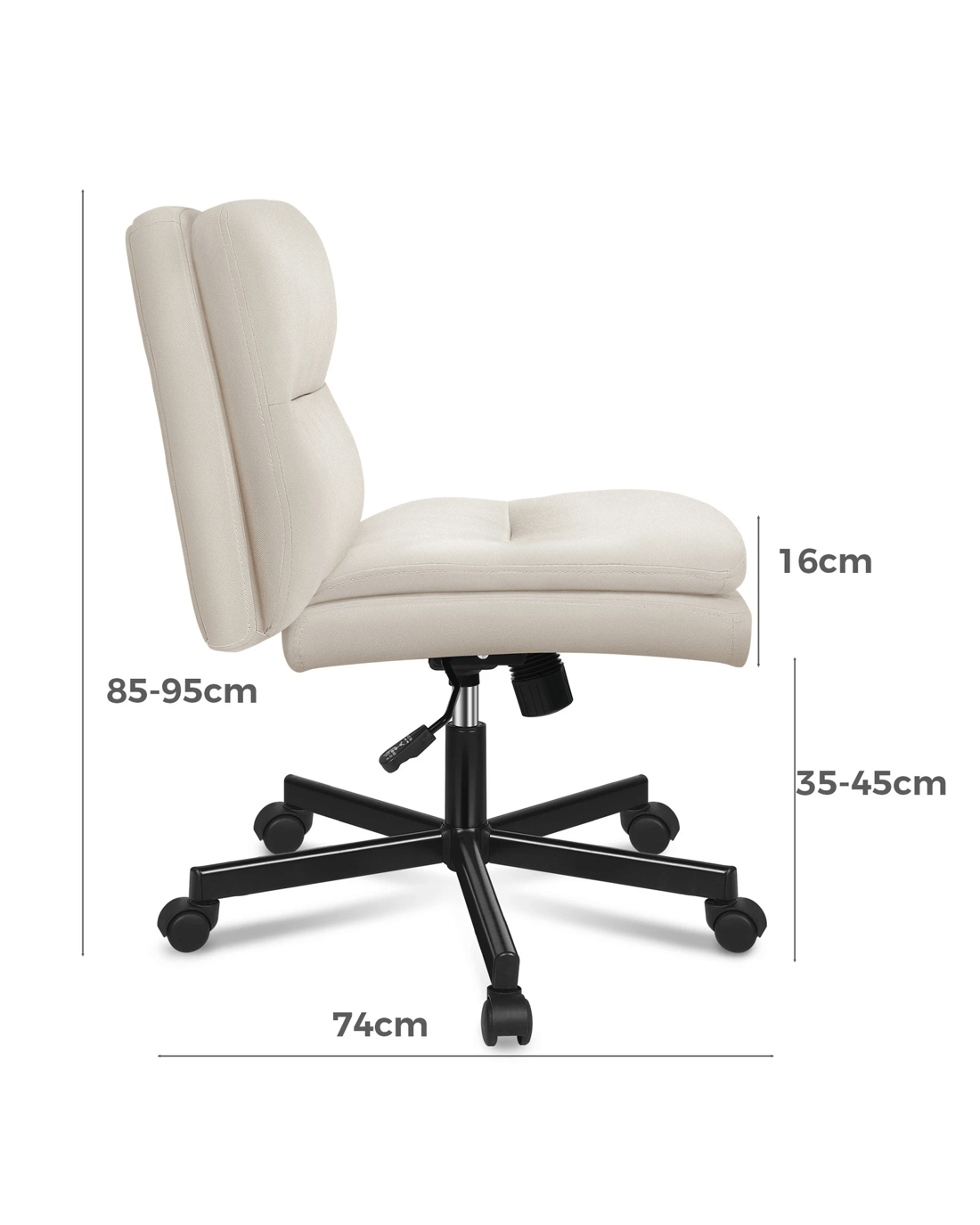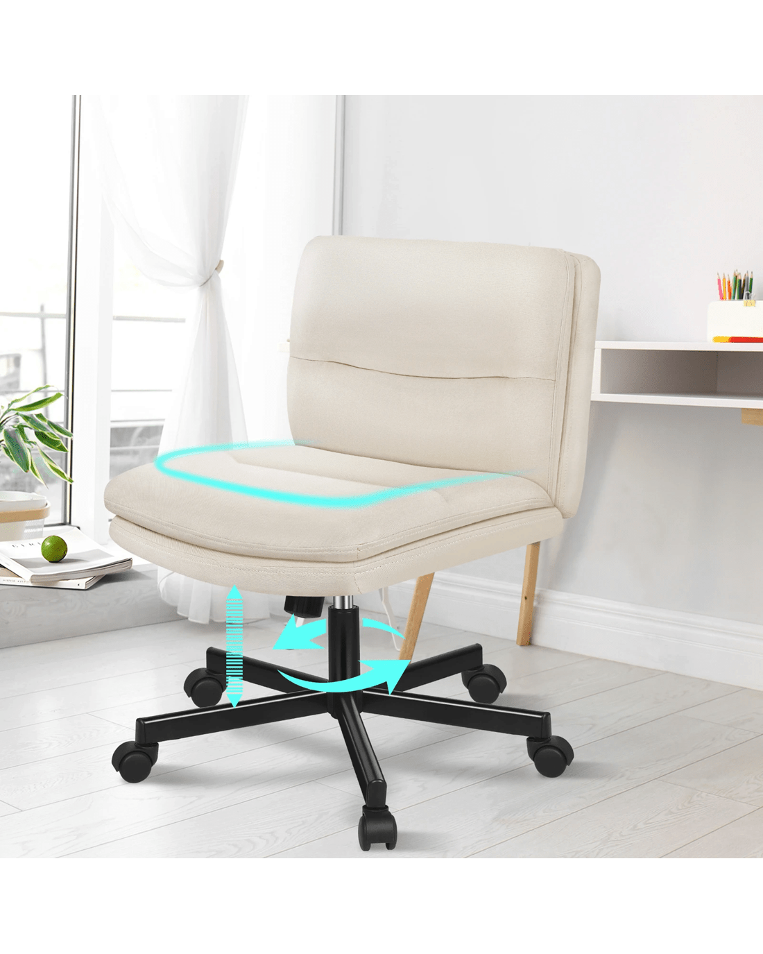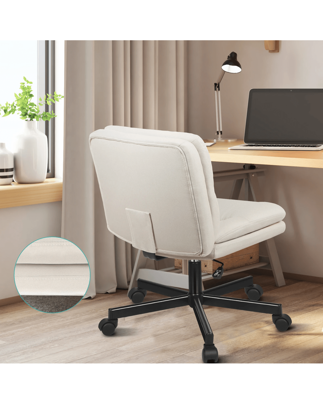 Upholstered from high-quality highly breathable linen fabric and generous foam paddings, this computer chair ensures optimal comfort and durability. The curved edges on backrest and seat contour to your body, providing ergonomically support. This office chair helps eliminate back and posterior fatigue after long hours of sitting.