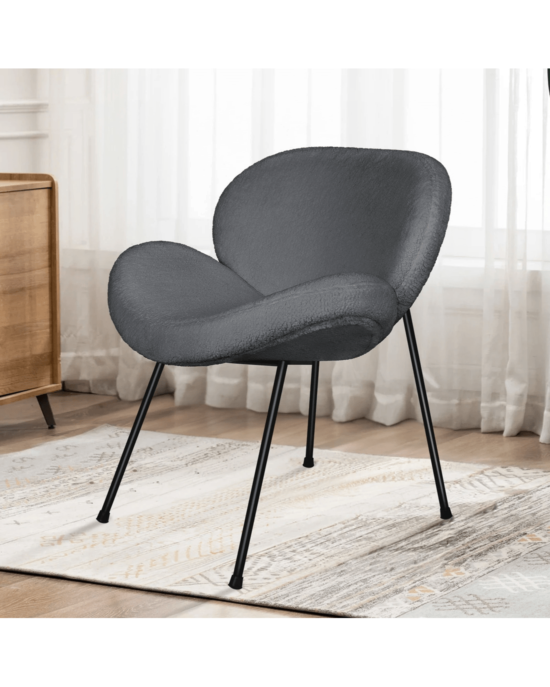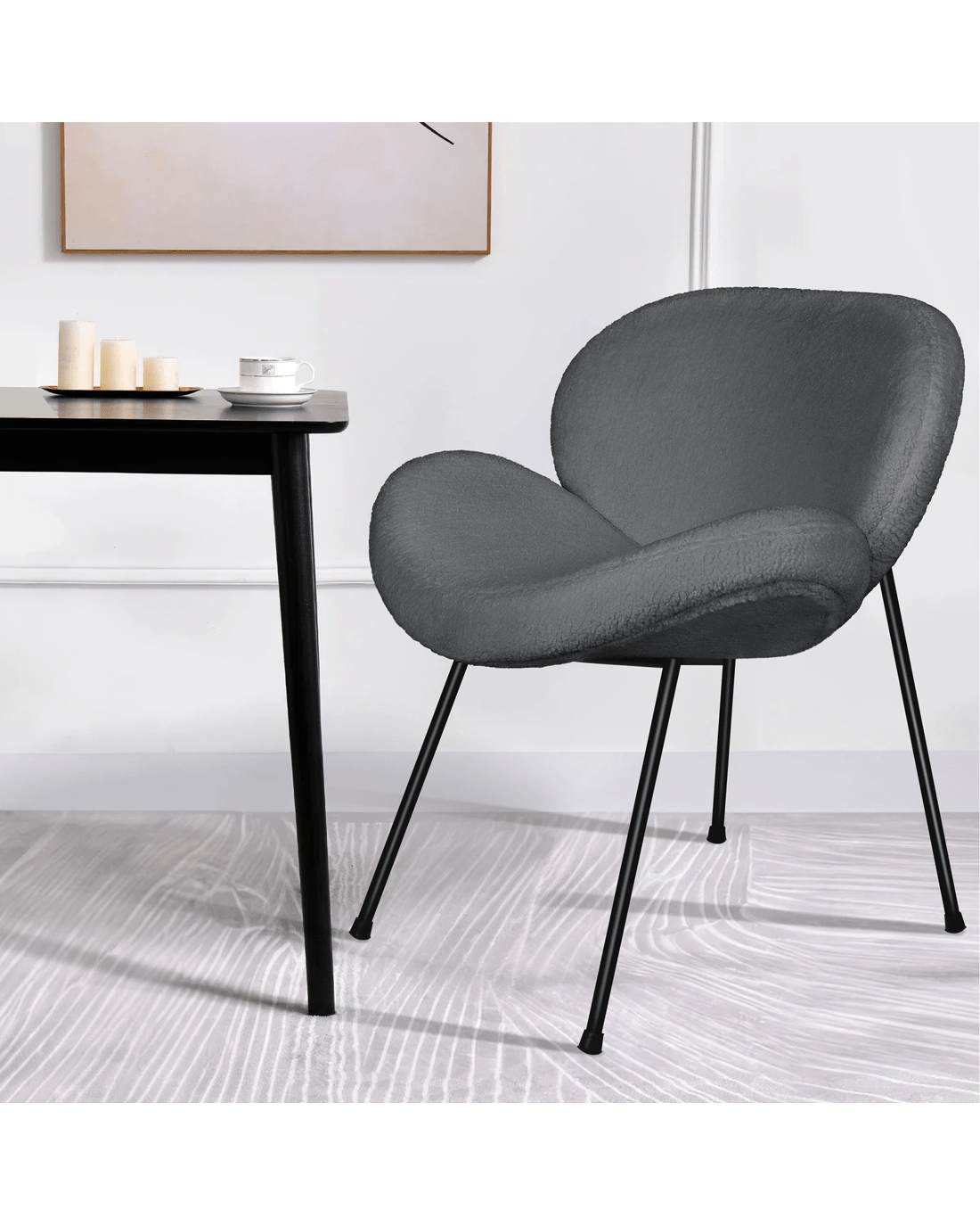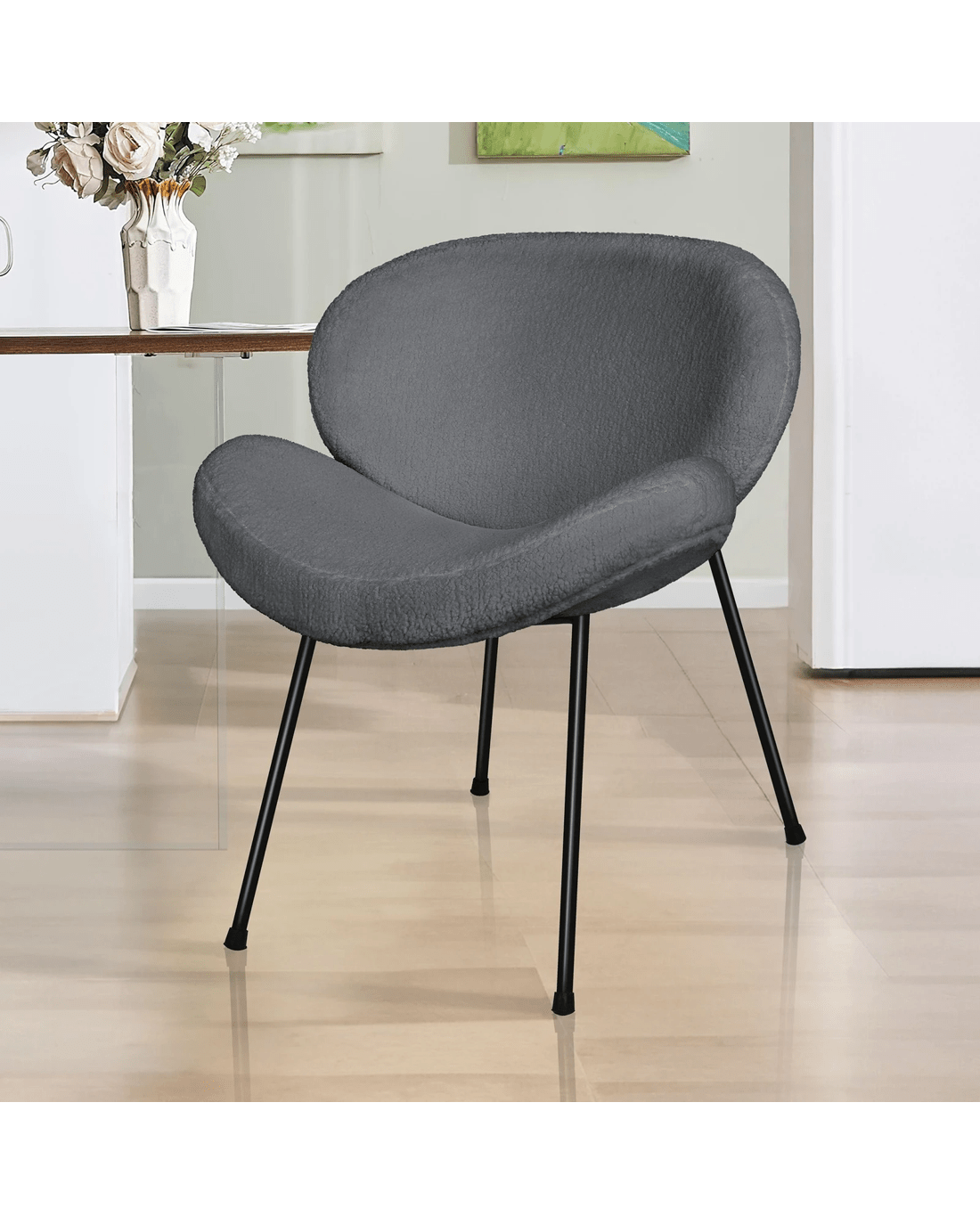 Designed with a blend of comfort and elegance, this accent chair invites you to dine in relaxation. Upholstered in premium sherpa fabric, the seat and backrest are richly padded with high resilient foam. Combining its curved seat and backrest, the kitchen chair offers a delightful seating experience.