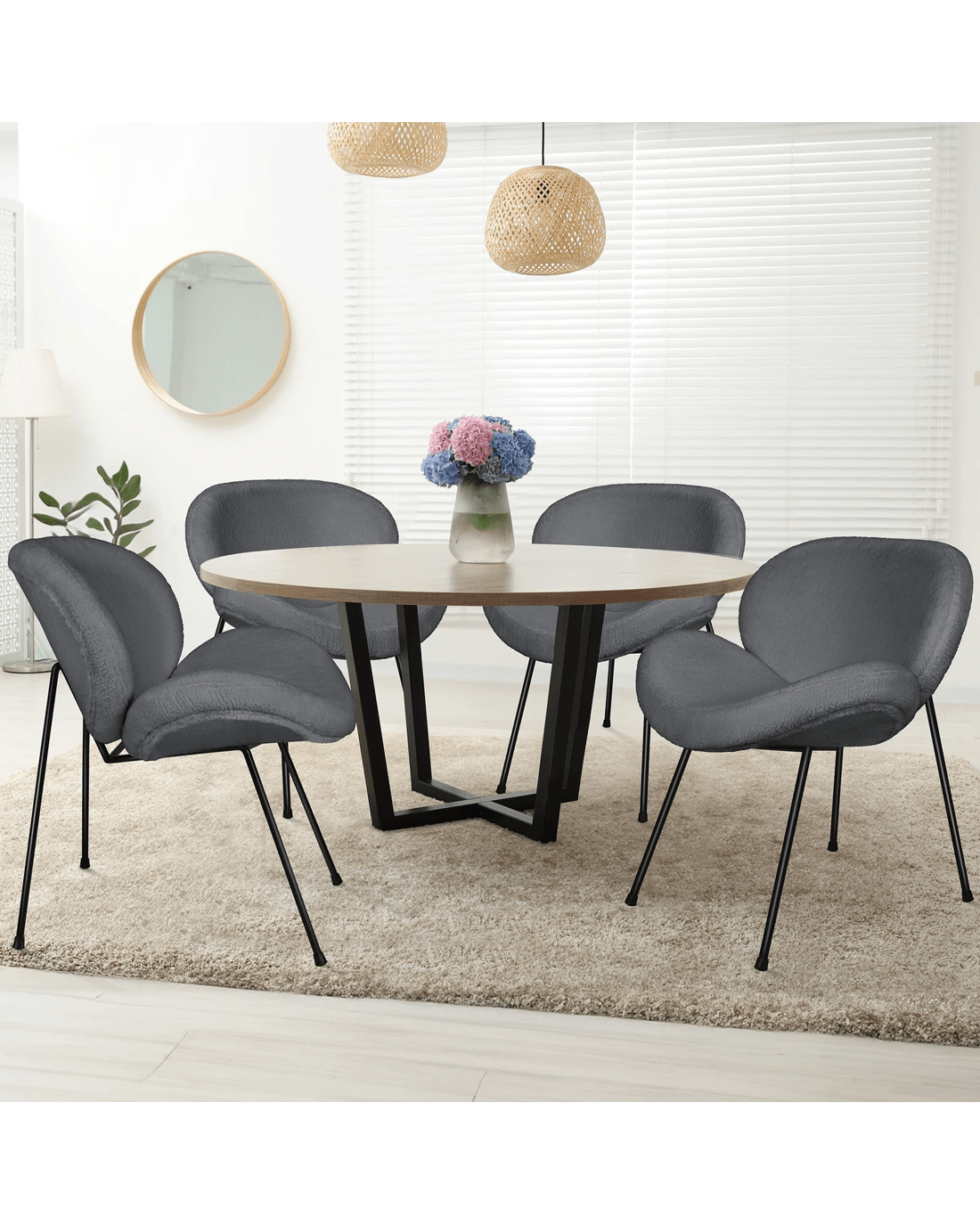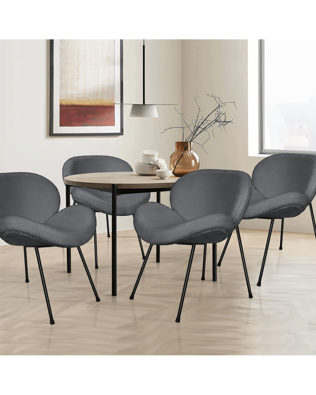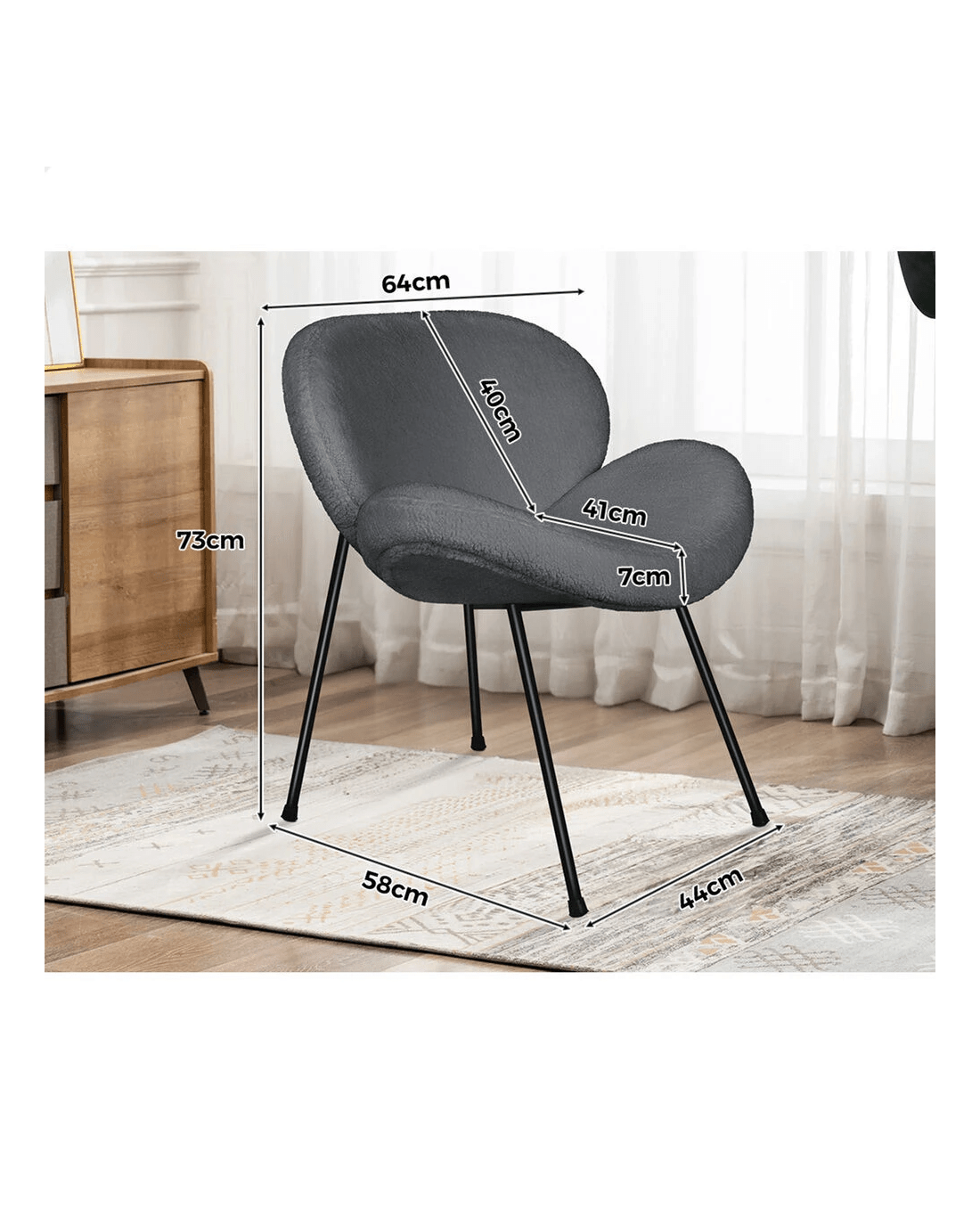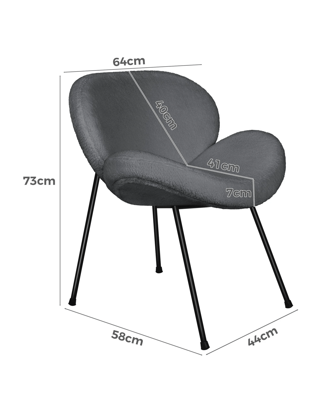 Designed with a blend of comfort and elegance, this accent chair invites you to dine in relaxation. Upholstered in premium sherpa fabric, the seat and backrest are richly padded with high resilient foam. Combining its curved seat and backrest, the kitchen chair offers a delightful seating experience.