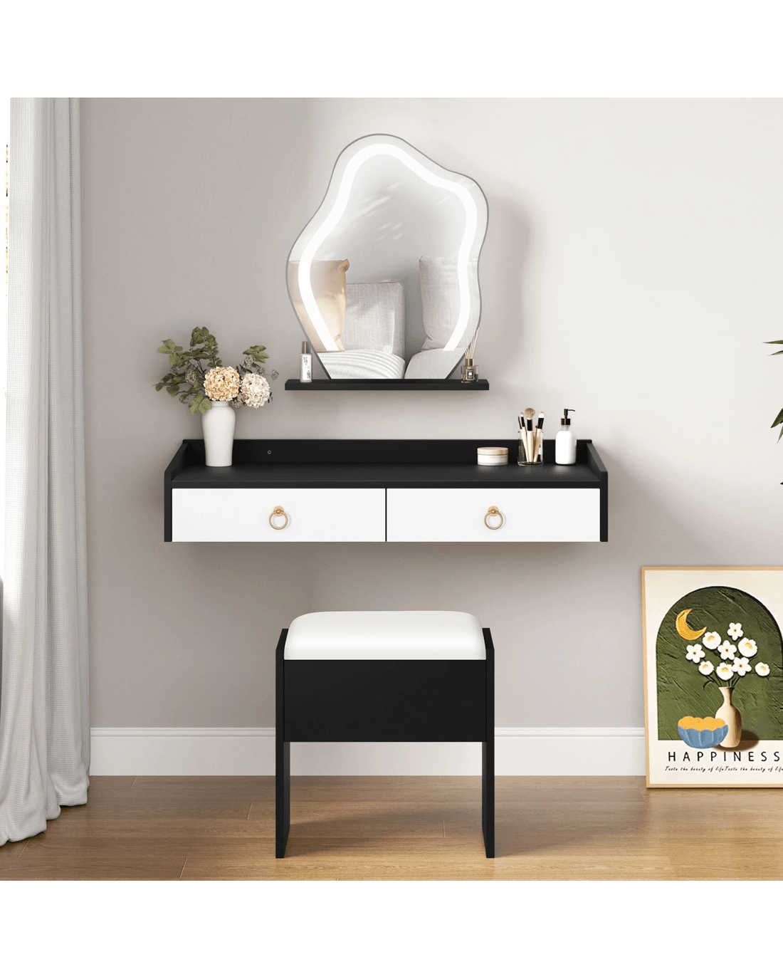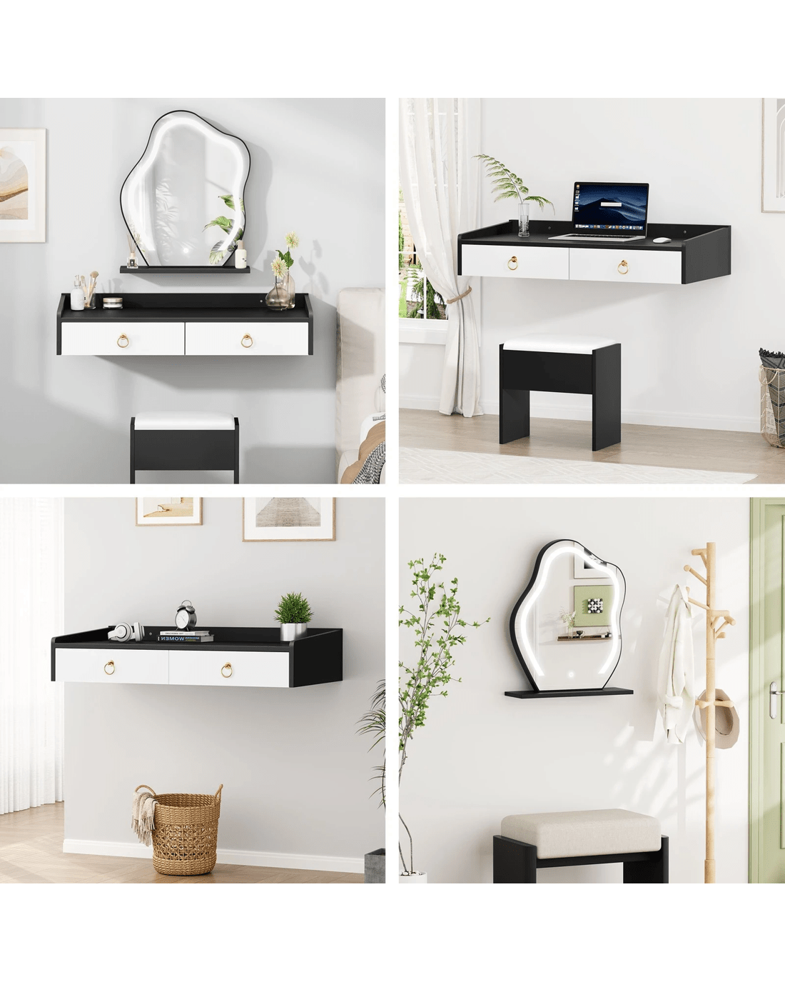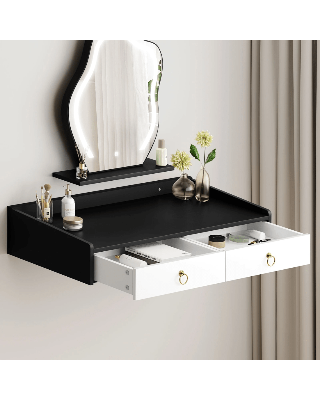 Space-saving design - With dual-use mirror, you can choose between wall-mounting to save desk space or placing it freestanding on tabletop for flexible styling options. Supported by heavy-duty brackets, this dressing table is securely mounted to free up valuable floor space in compact bedrooms, dorm rooms, or apartments while maintaining a clutter-free aesthetic.