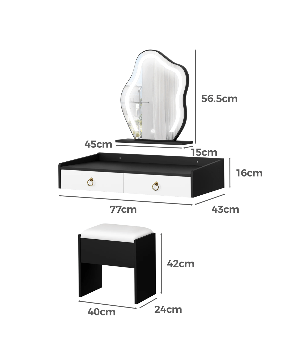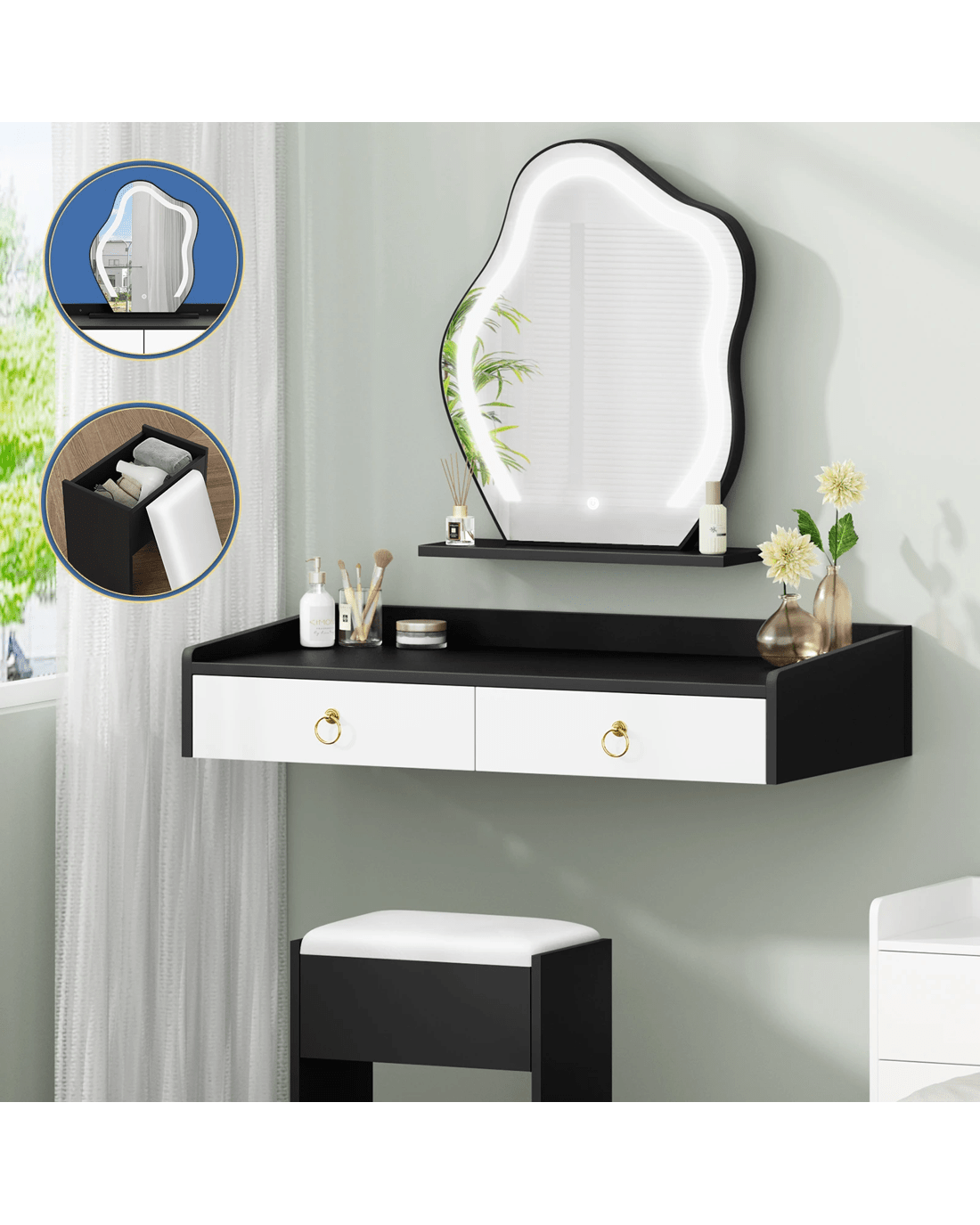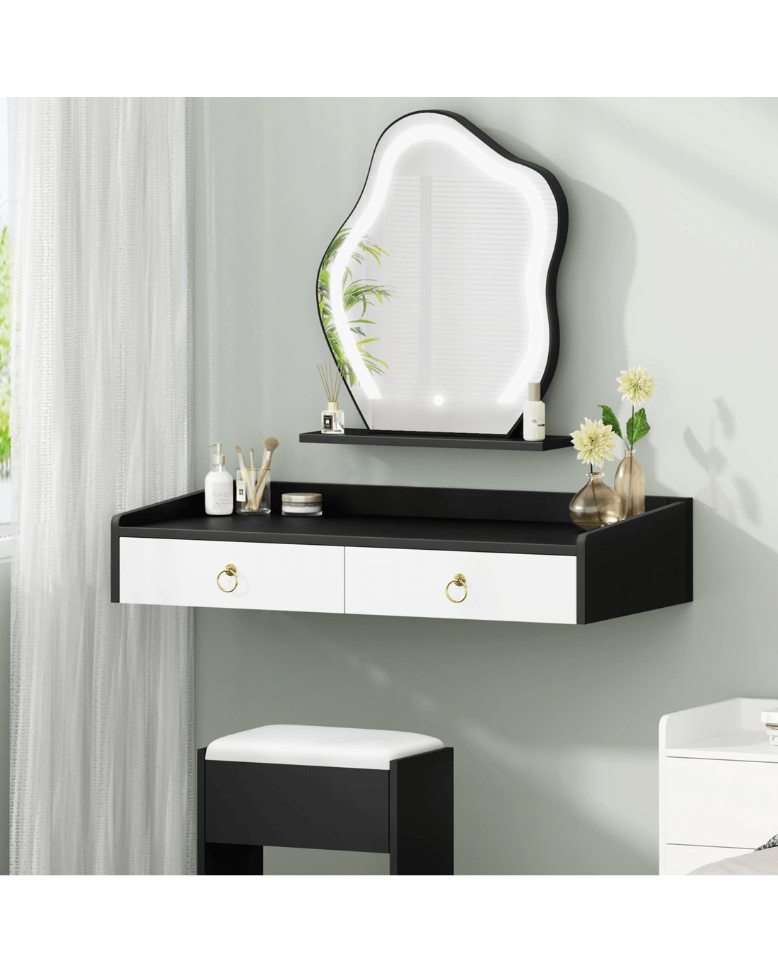 Space-saving design - With dual-use mirror, you can choose between wall-mounting to save desk space or placing it freestanding on tabletop for flexible styling options. Supported by heavy-duty brackets, this dressing table is securely mounted to free up valuable floor space in compact bedrooms, dorm rooms, or apartments while maintaining a clutter-free aesthetic.