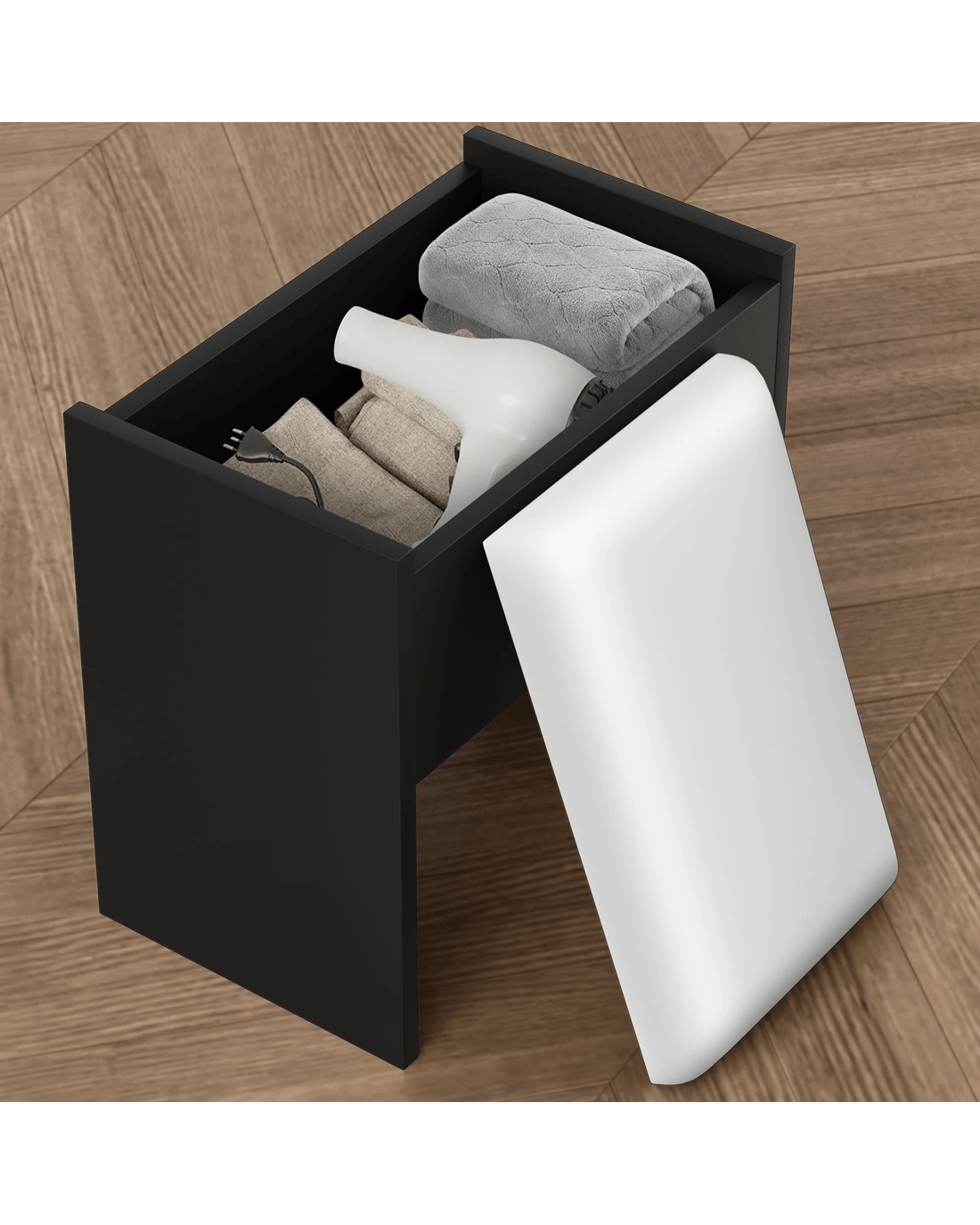 Comes with matching chair - The matching upholstered stool will provide you with a comfortable sitting position while applying make-up. Furthermore, with lift-up lid for easy storage, it is a perfect spot for your blanket or hair-dryer.