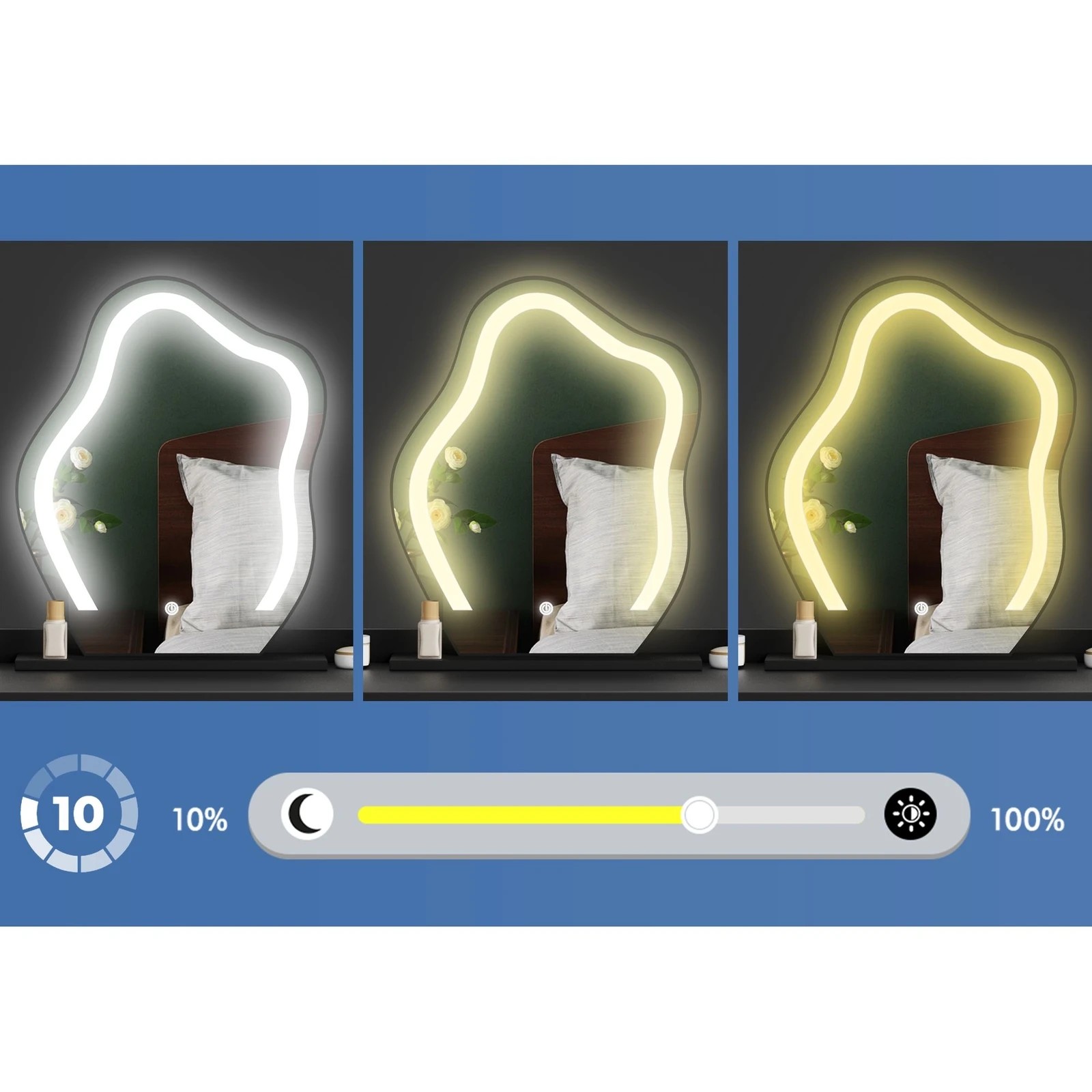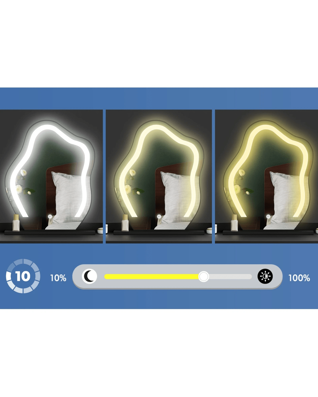 Customizable lighting - The dressing table features 3 LED light colours - neutral white, warm white, and daylight white and the brightness of each colour can be adjusted in 10 levels, providing adequate light to complete your make-up.