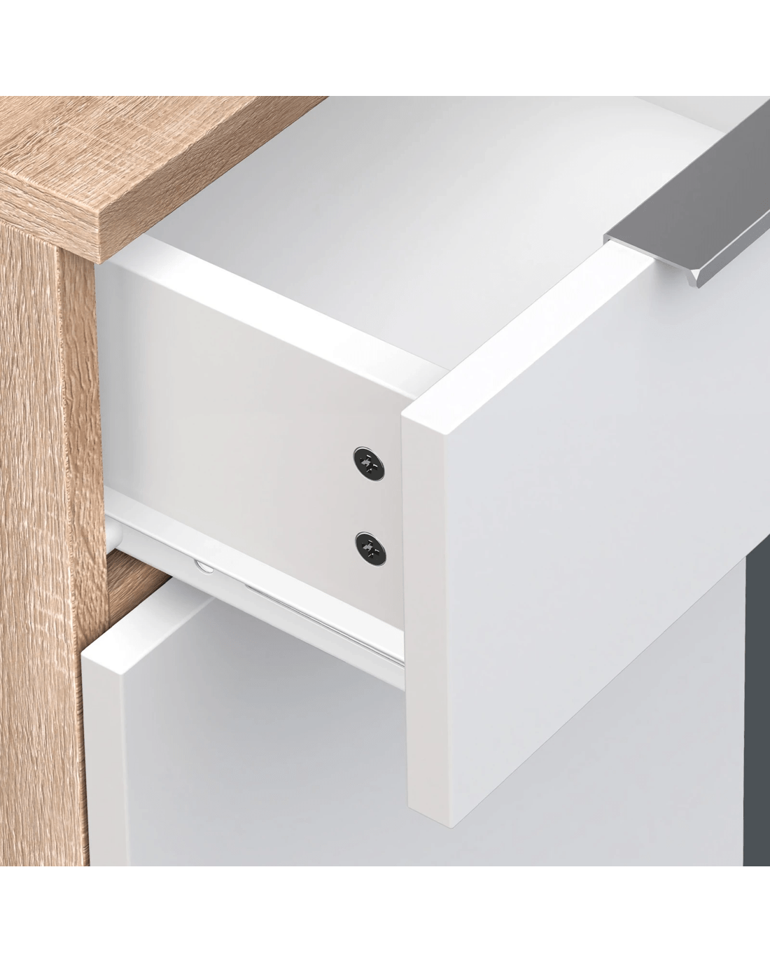 * 2 drawers & 1 side cabinet for discrete functional storage