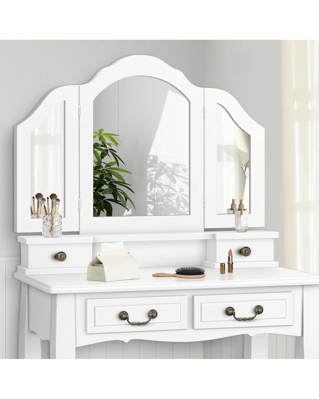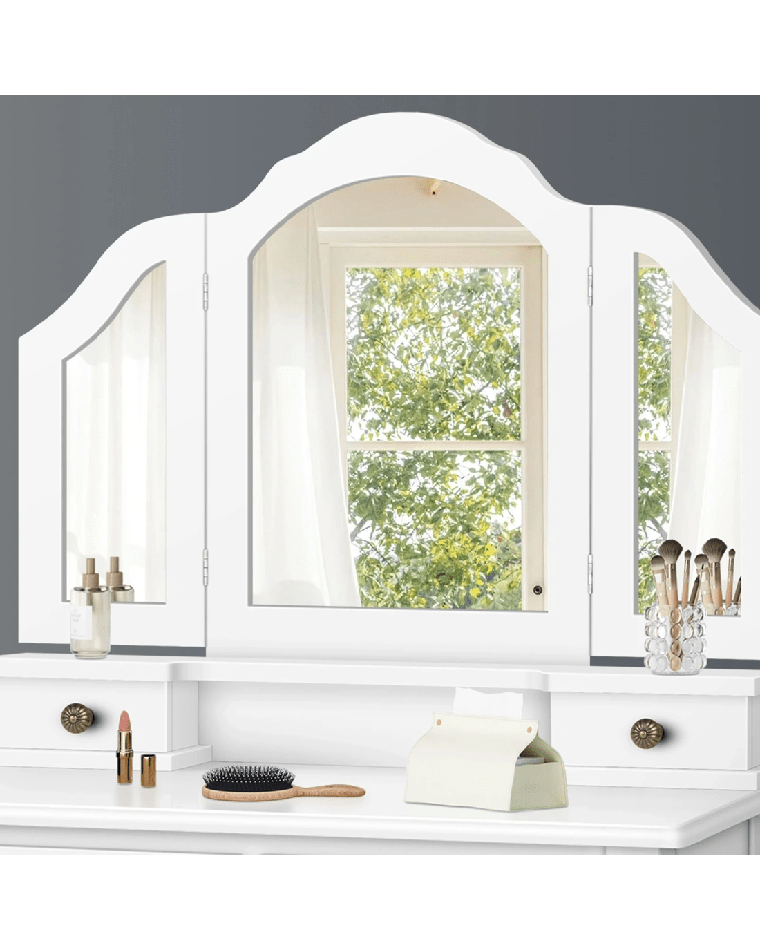Achieve good looking in every angle - With a unique three-panel mirror, you can get an all-around look from different angles. The side mirrors are freely rotated in 180??, which helps do your makeup or hair styling with better visibility.