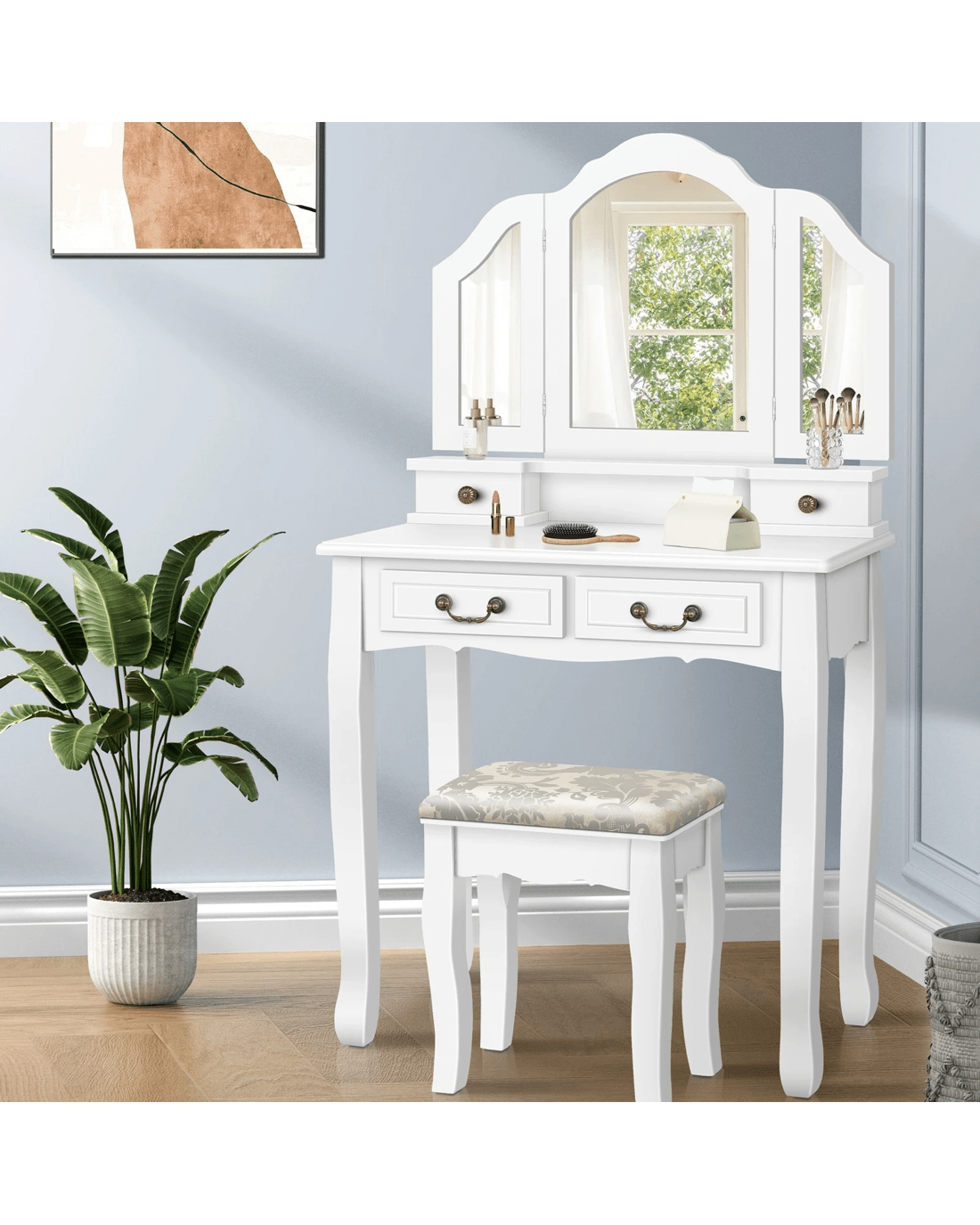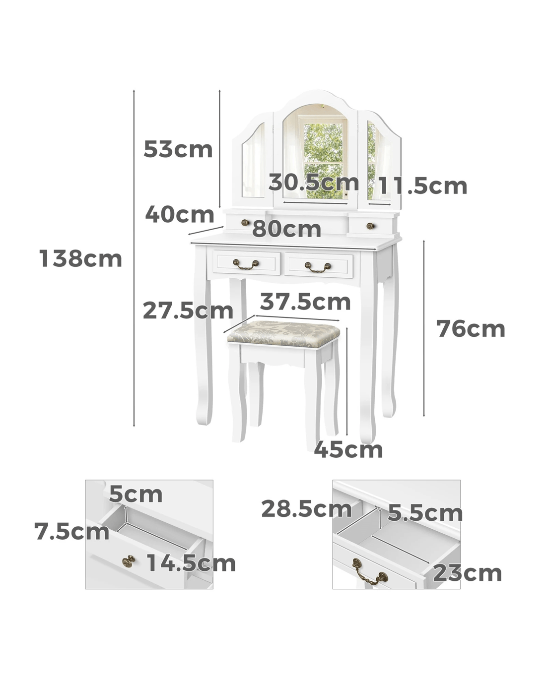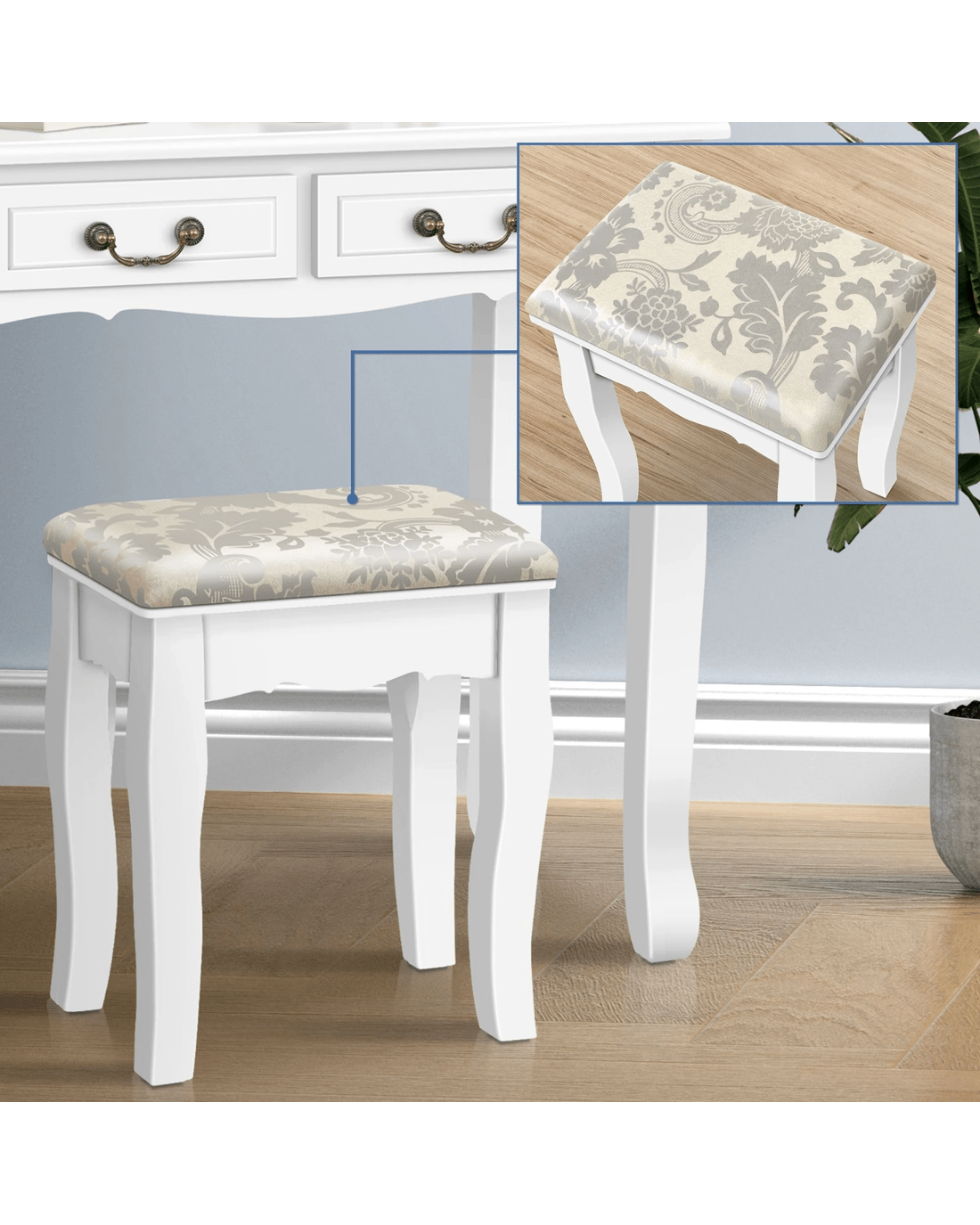 Comes with matching chair - The matching upholstered stool will provide you with a comfortable sitting position while applying make-up.