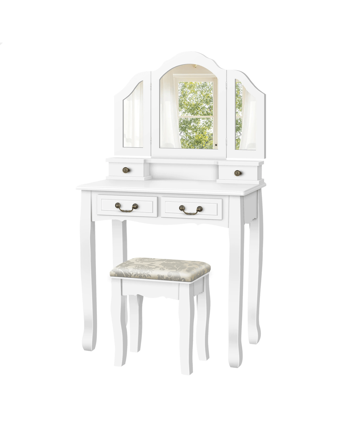 Sold by Aussie Union GroupAlfordson Dressing Table Stool Set Makeup Foldable Mirror Vanity Desk - White
