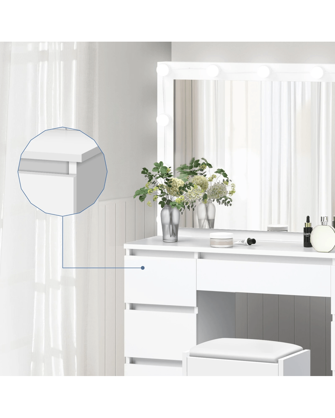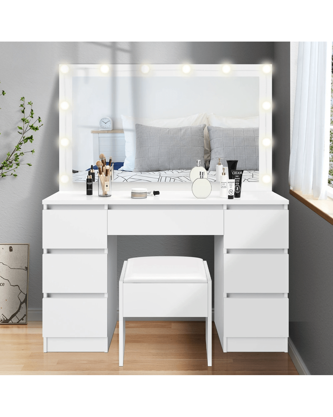 Comes with matching chair - The matching upholstered stool will provide you with a comfortable sitting position while applying make-up.