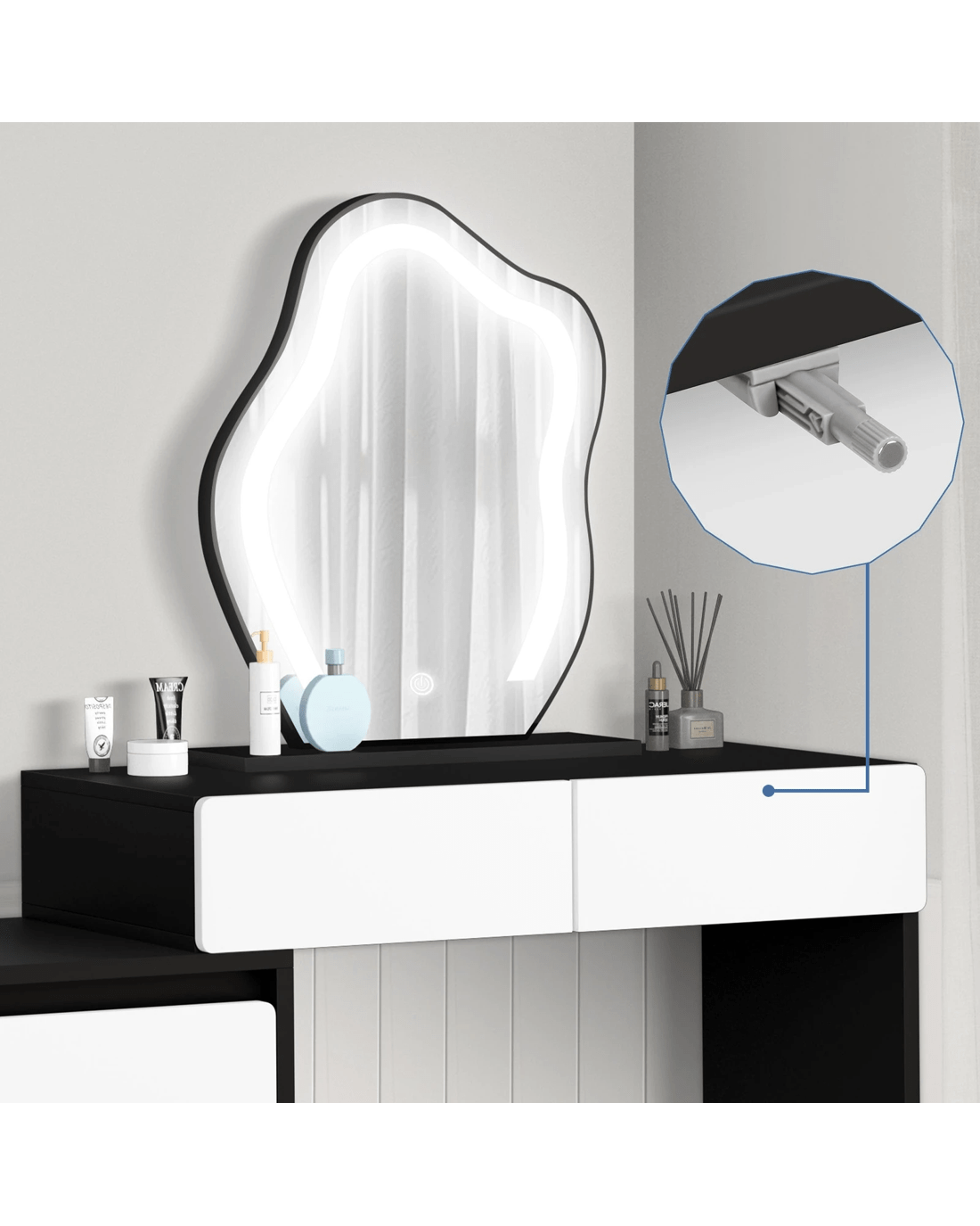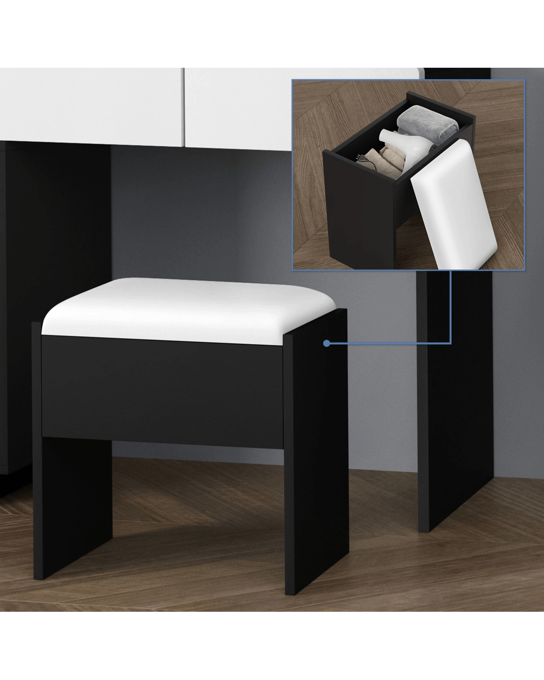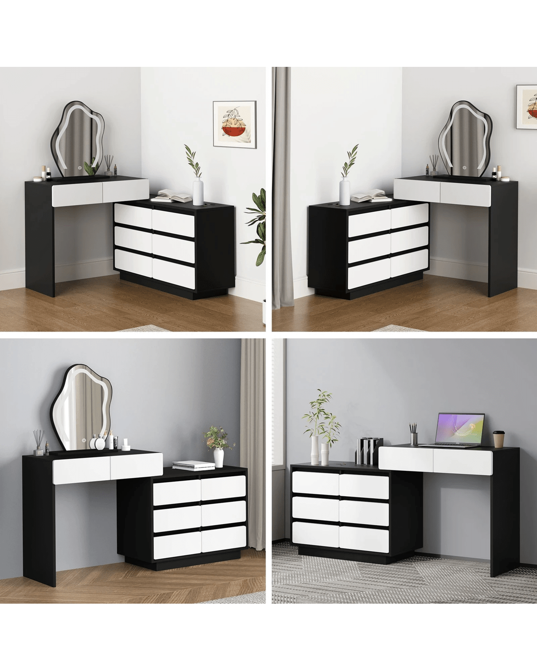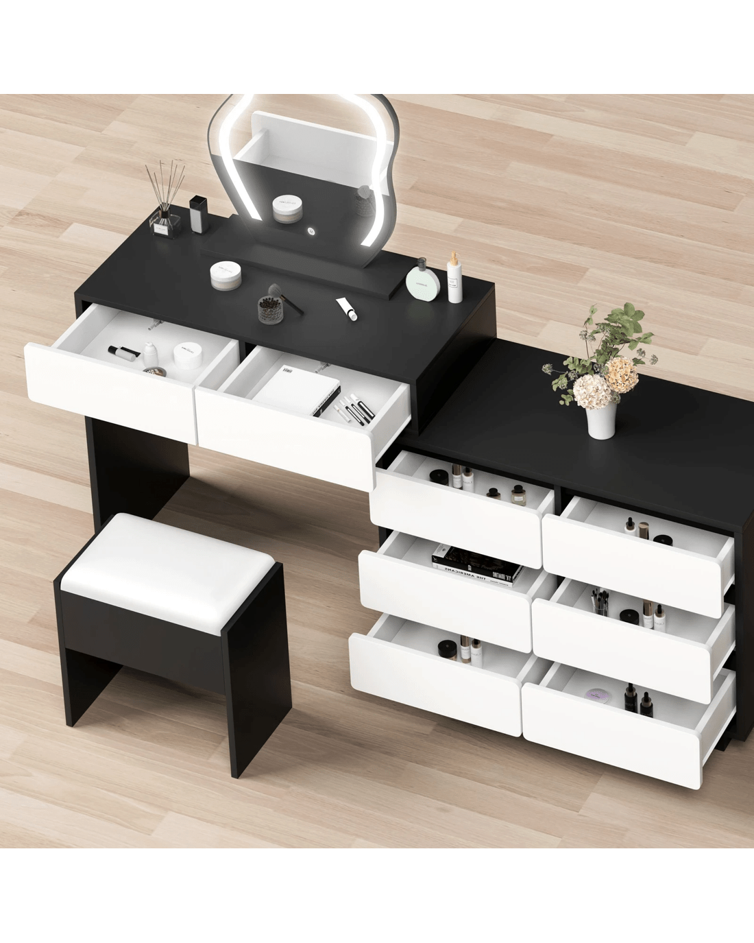 Sold by Aussie Union GroupAlfordson Dressing Table Stool Set Makeup Mirror Desk LED 8 Drawers - Black White