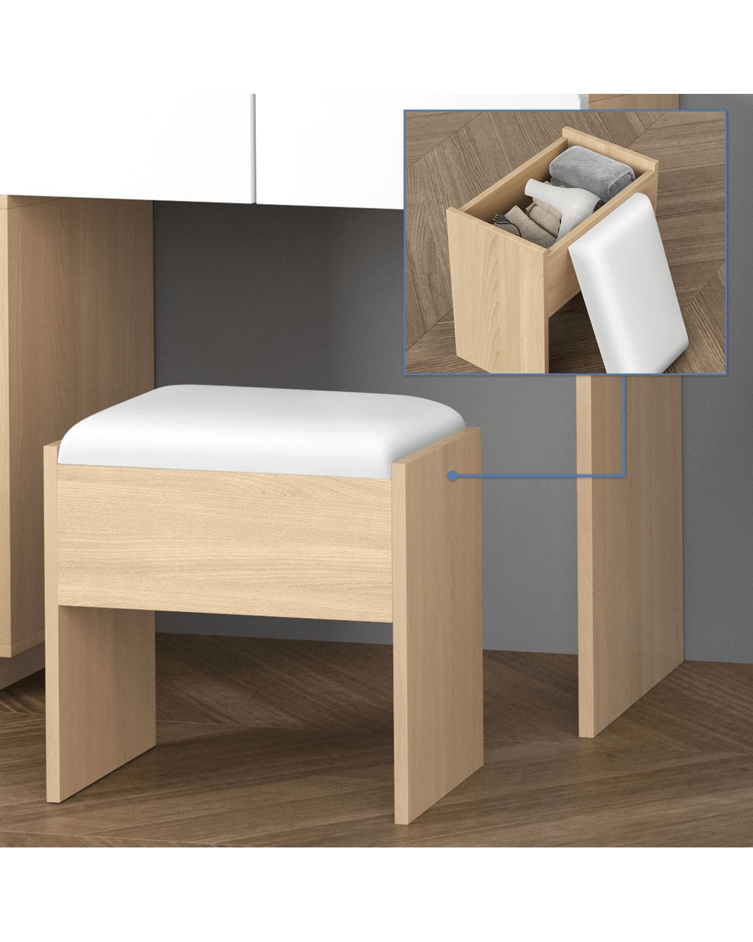 Comes with matching chair - The matching upholstered stool will provide you with a comfortable sitting position while applying make-up. Furthermore, the chair comes with lift-up lid for easy storage, which is a perfect spot for your blanket or hair-dryer.