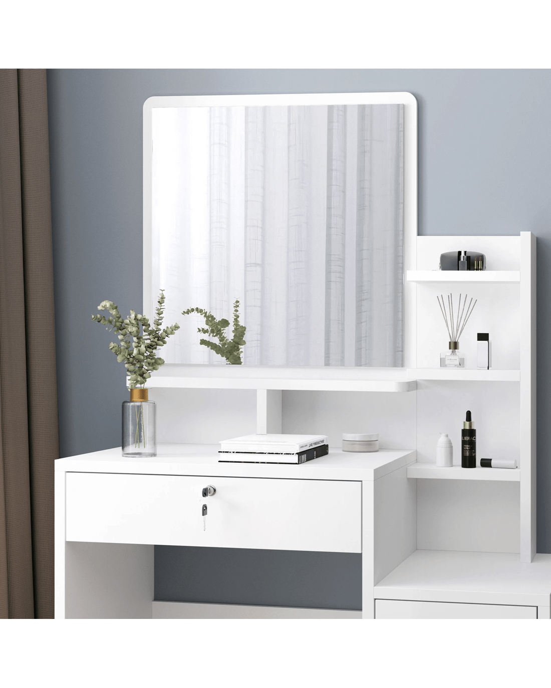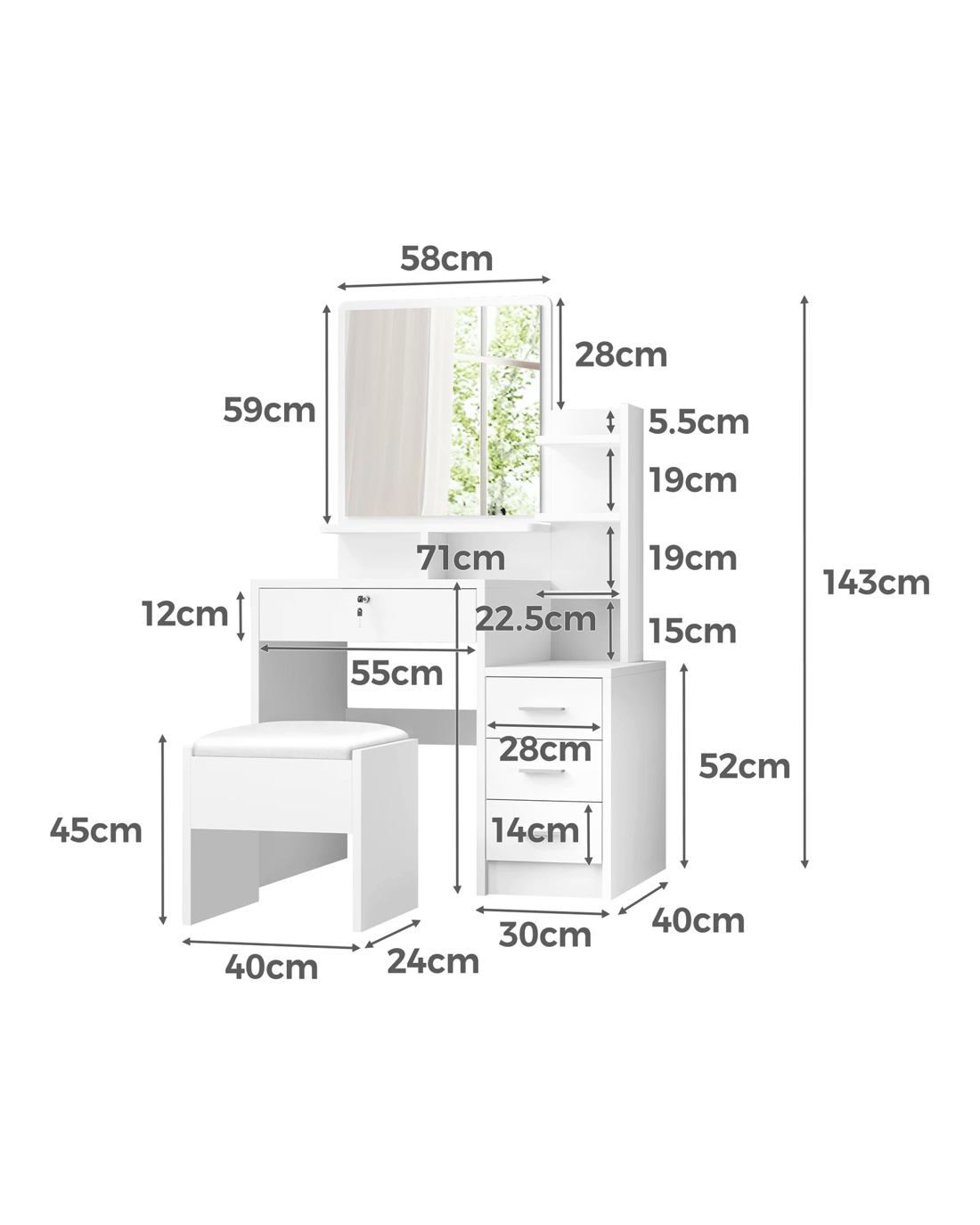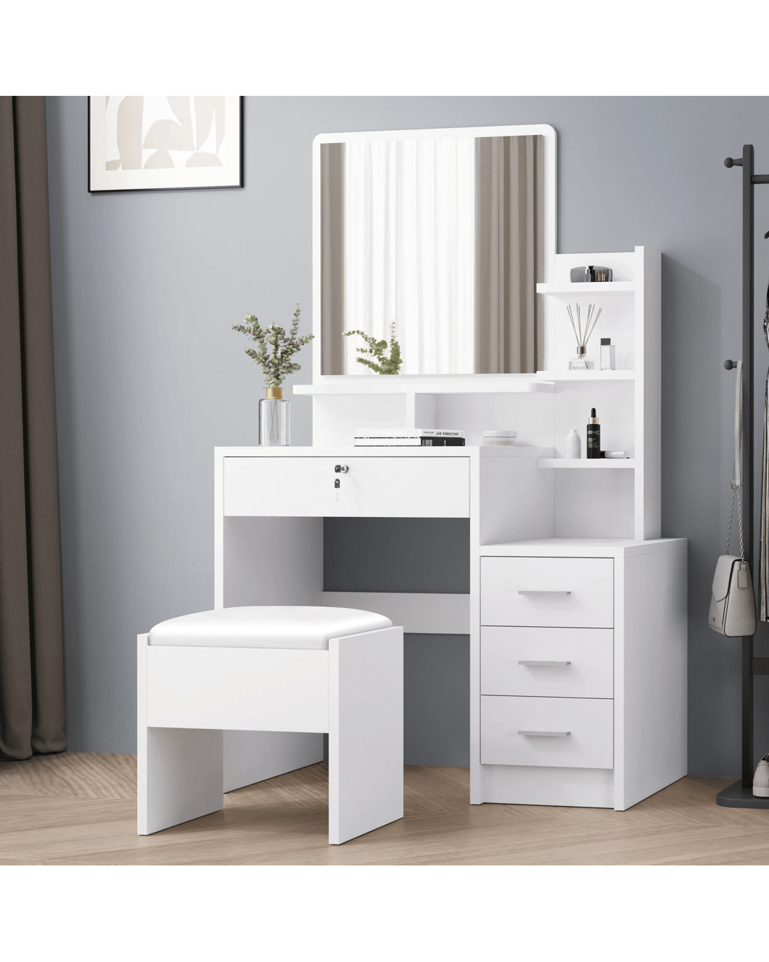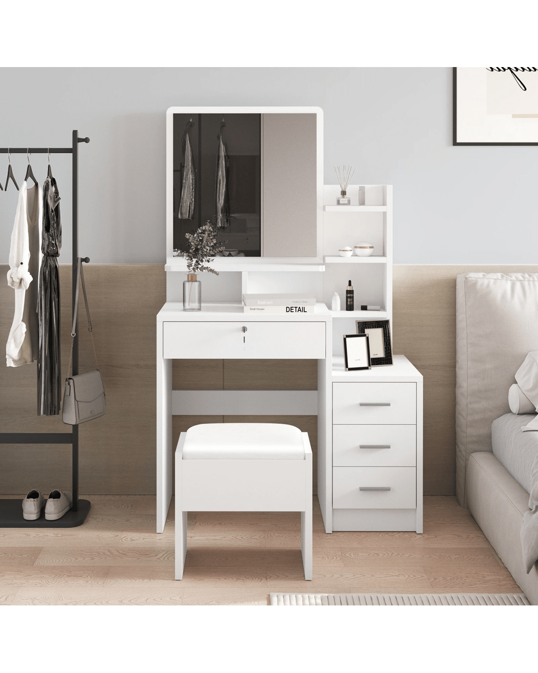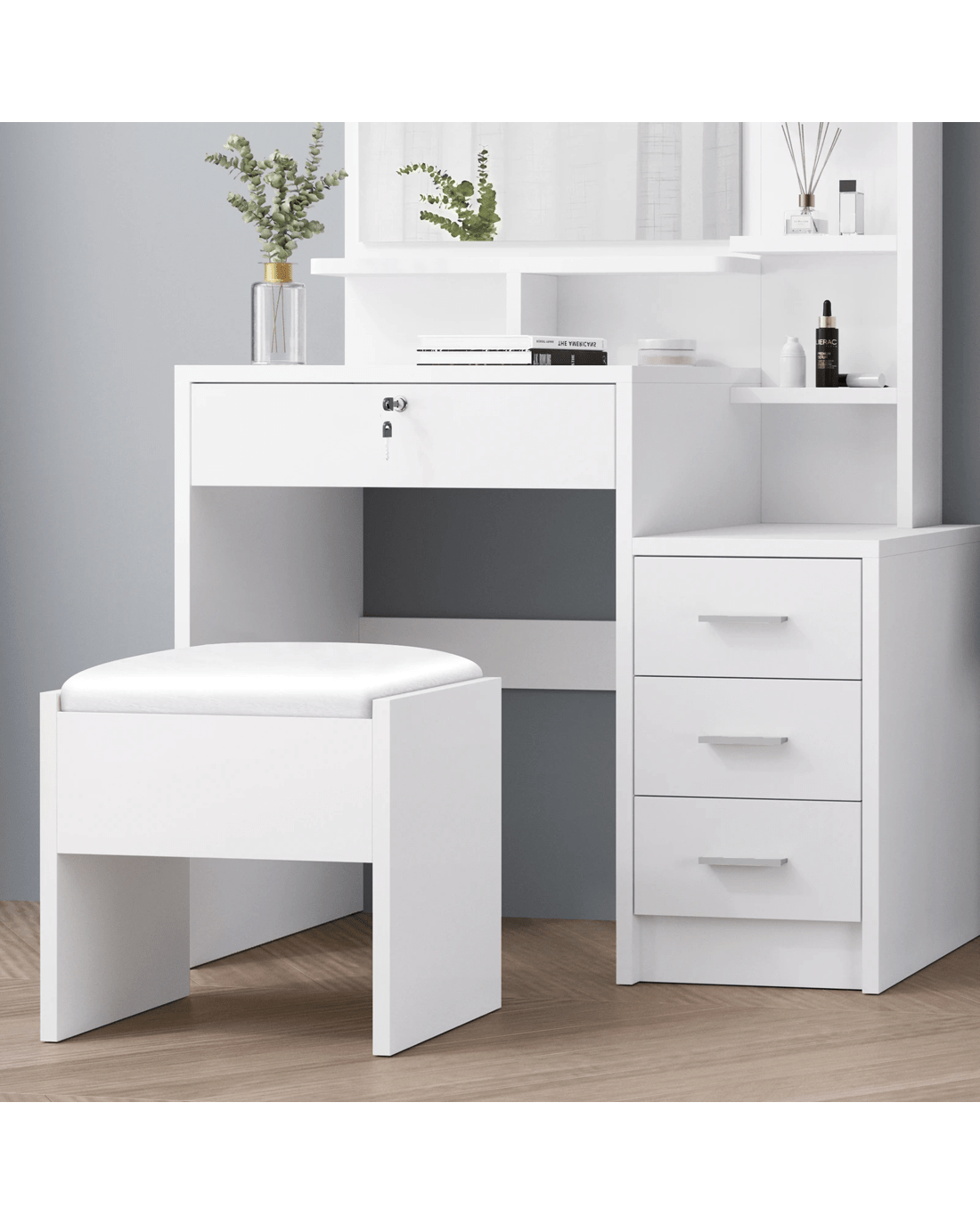 Keep your items organized - It features 7 open shelves and 4 drawers for ample storage space. For items you want to access easily, like make-up products, lotions, or perfumes, you can simply put them on desktop of table. For other items, like jewellery, you can store them away in drawers so they won't gather dust. Featuring a side cabinet, this dressing table can serve as nightstand next to your bed for use.