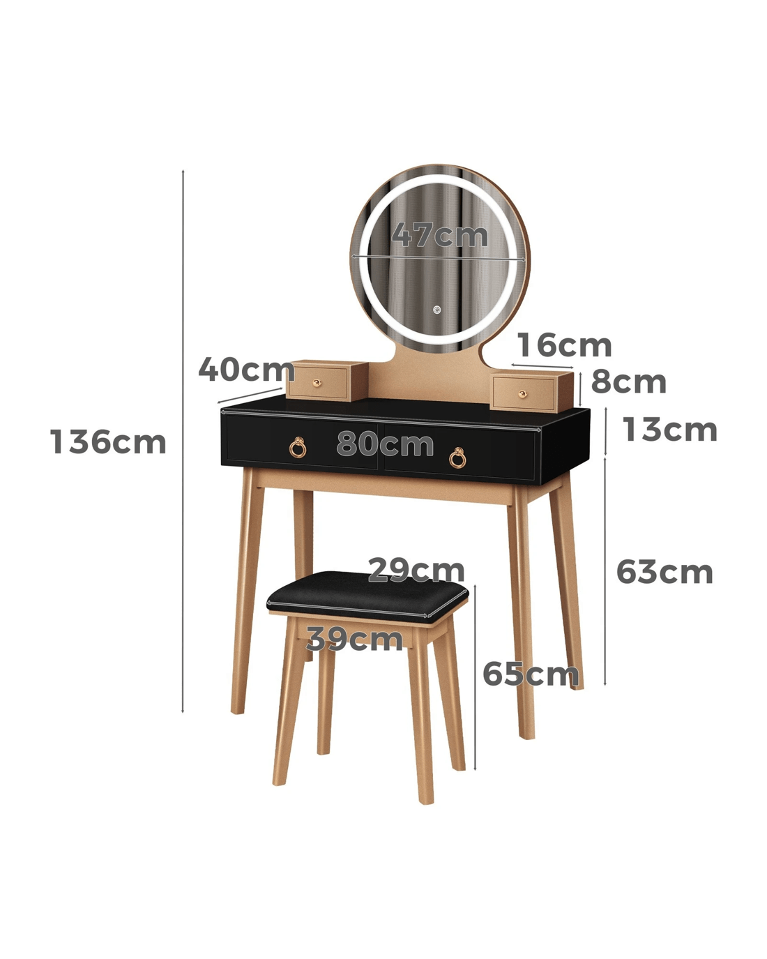 Sold by Aussie Union GroupAlfordson Dressing Table Stool Set Makeup Mirror Vanity Desk LED Light - Black