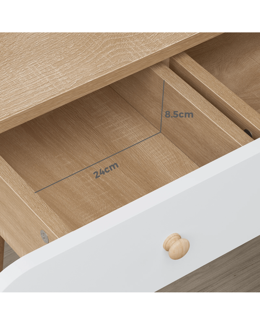* 2 drawers for discrete functional storage