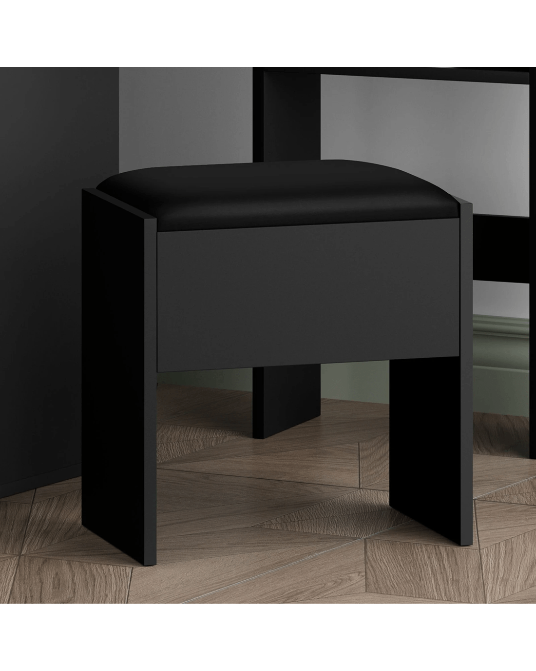 Comes with matching chair - The matching upholstered stool will provide you with a comfortable sitting position while applying make-up. Furthermore, the chair comes with lift-up lid for easy storage, which is a perfect spot for your blanket or hair-dryer.
