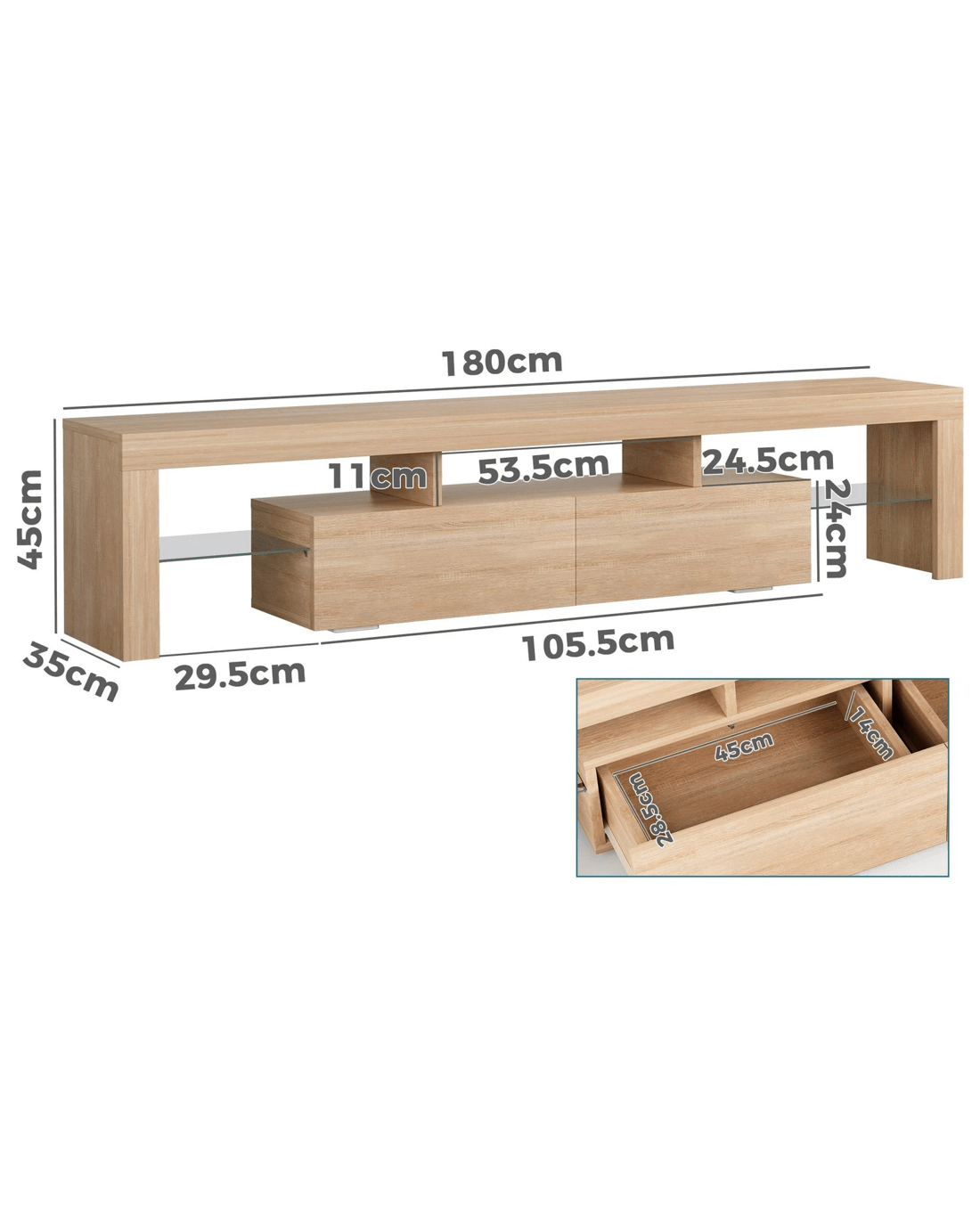 Sold by Aussie Union GroupAlfordson Entertainment Unit 180cm TV Stand LED Light Storage Drawer - Oak