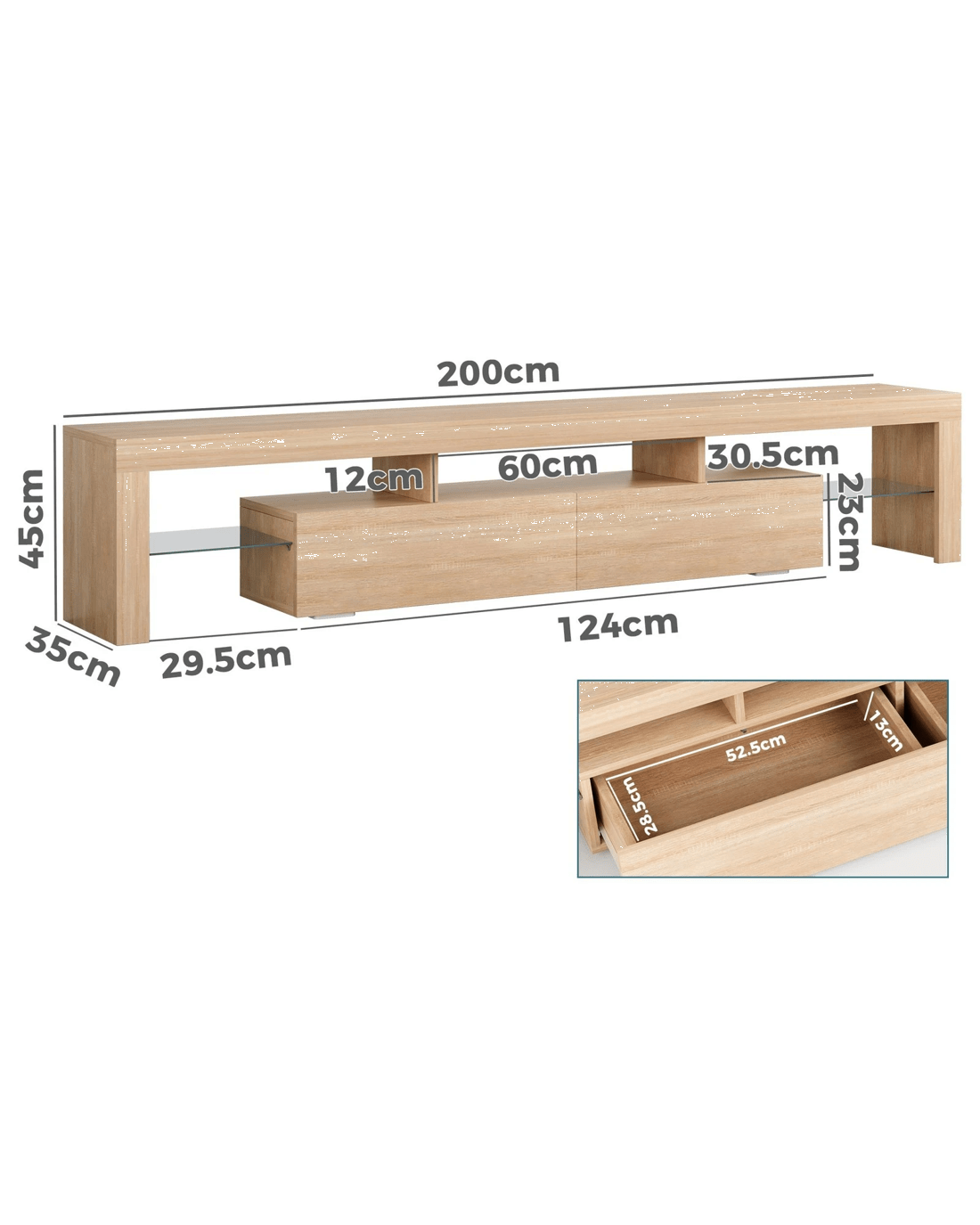 Sold by Aussie Union GroupAlfordson Entertainment Unit 200cm TV Stand LED Light Storage Drawer - Oak