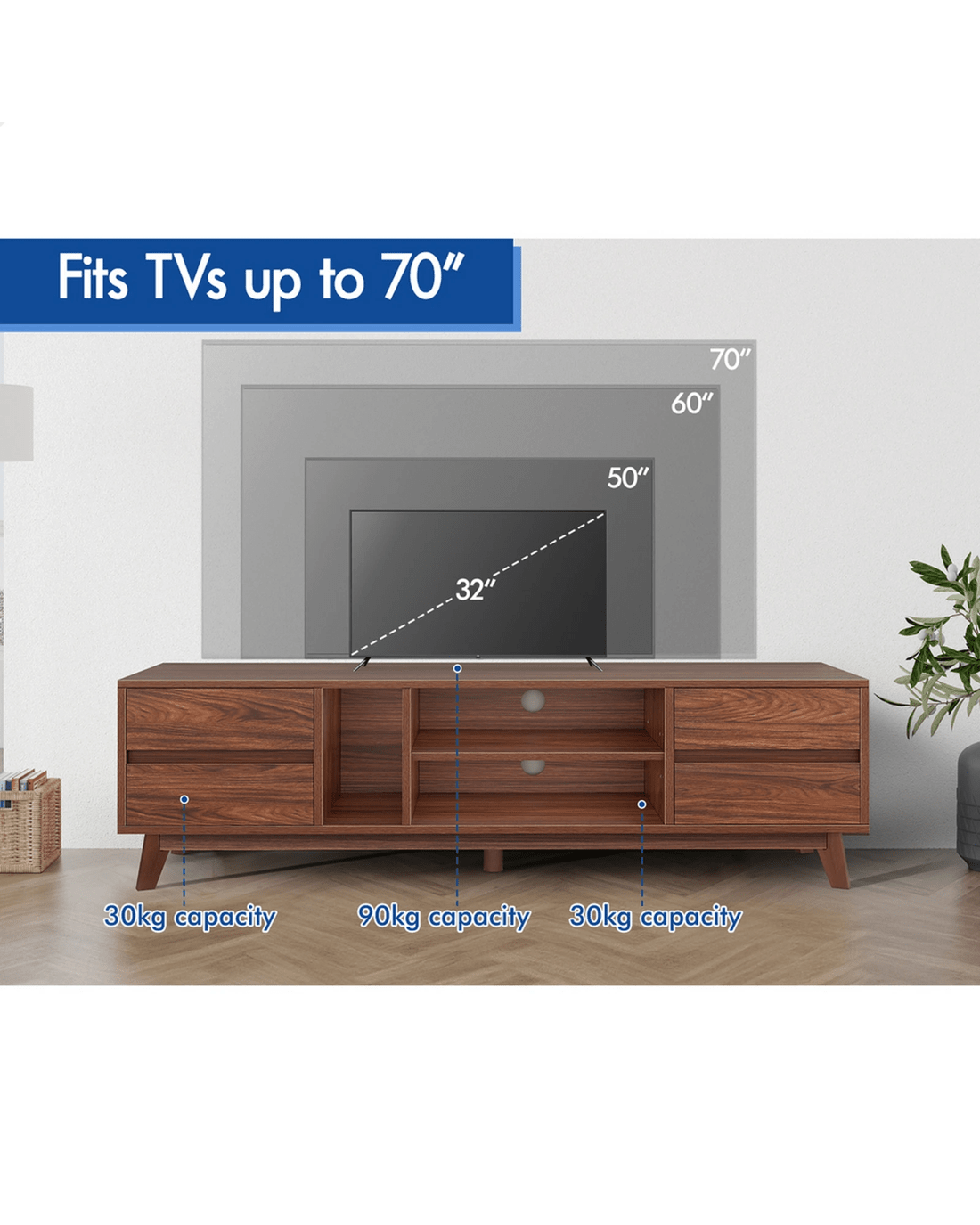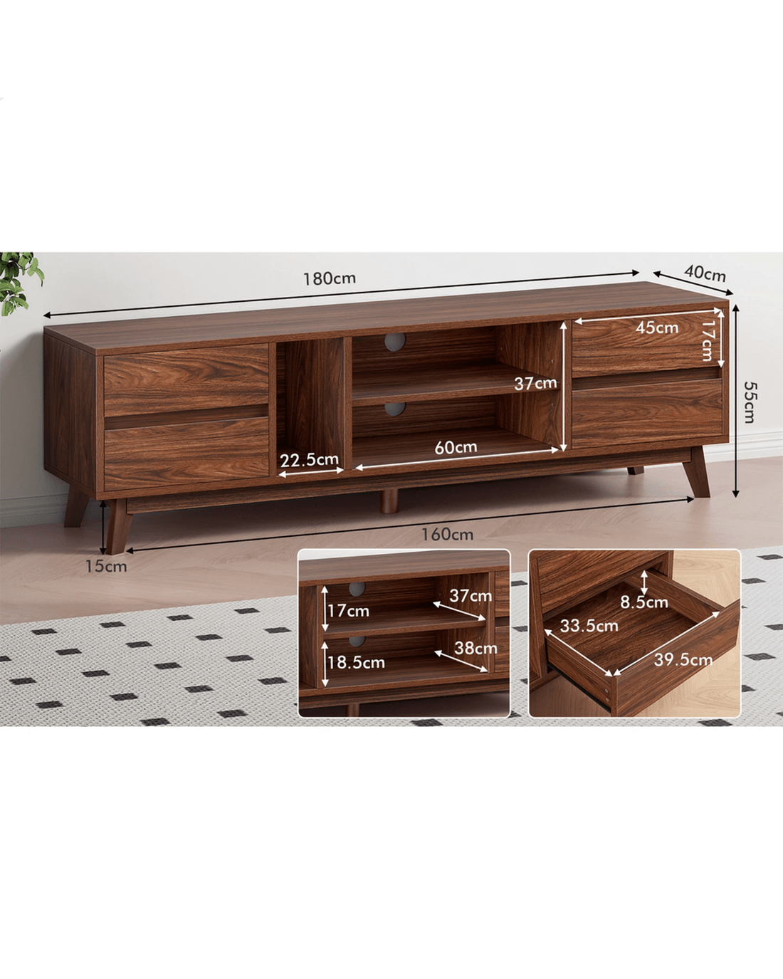 Alfordson Entertainment Unit TV Cabinet Stand 180cm Drawer Shelf - Walnut