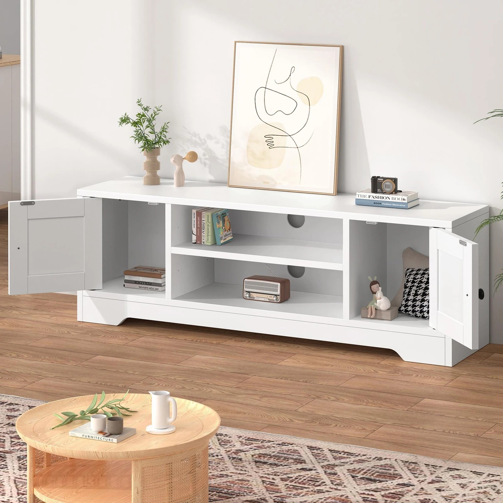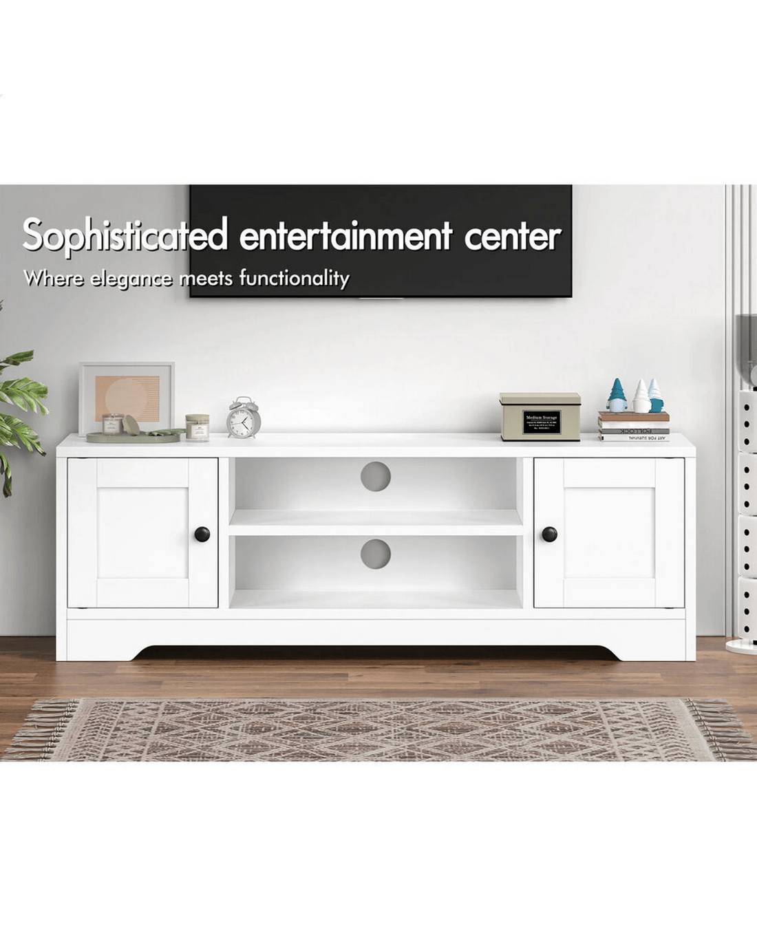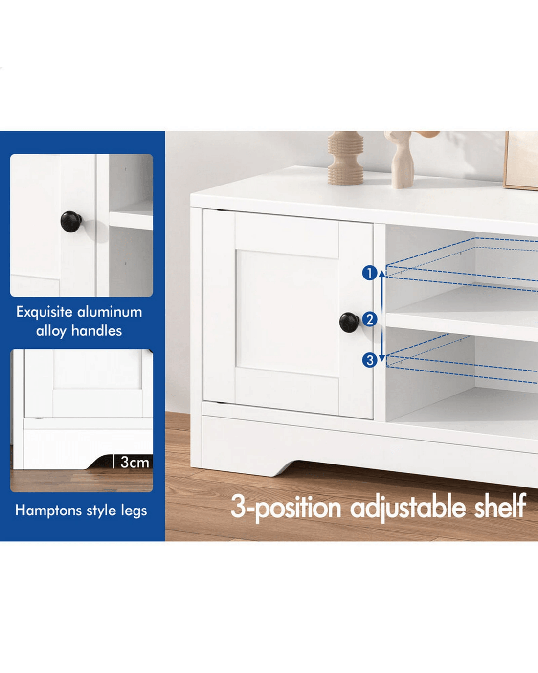 Alfordson Entertainment Unit TV Cabinet Stand Hamptons Storage 120cm - White
