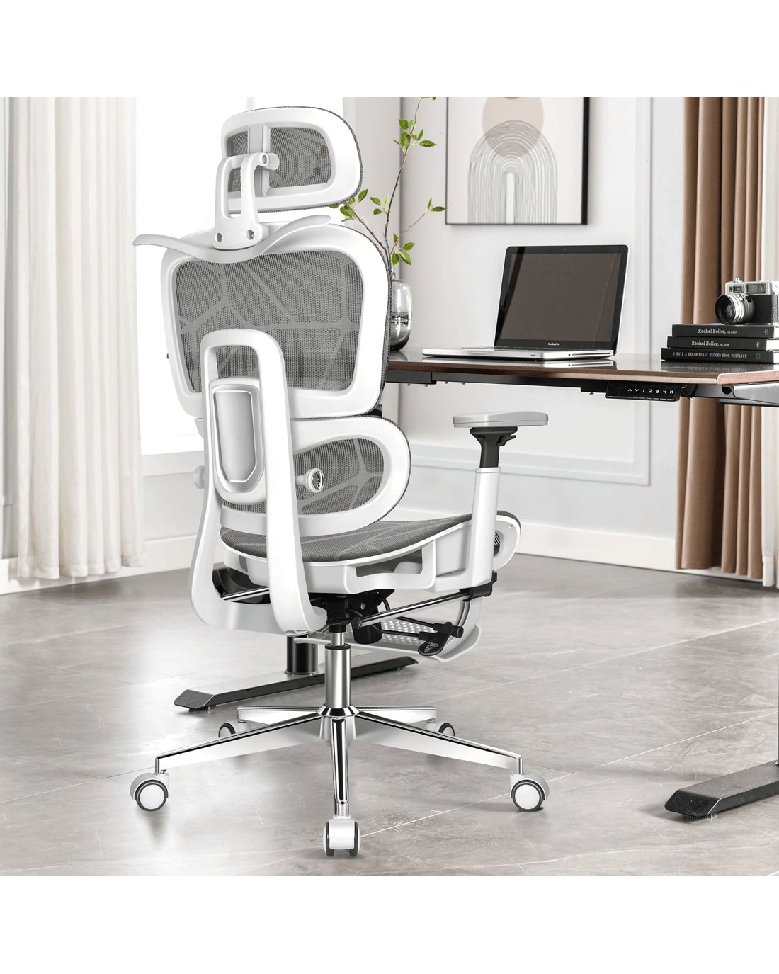 Flexible 3D armrests - Smooth, precise adjustments in three directions with a refined internal mechanism. Raise or rotate the armrests to be level with your desk for effective support for your wrists and elbows, or slide them under when you need to sit forward.