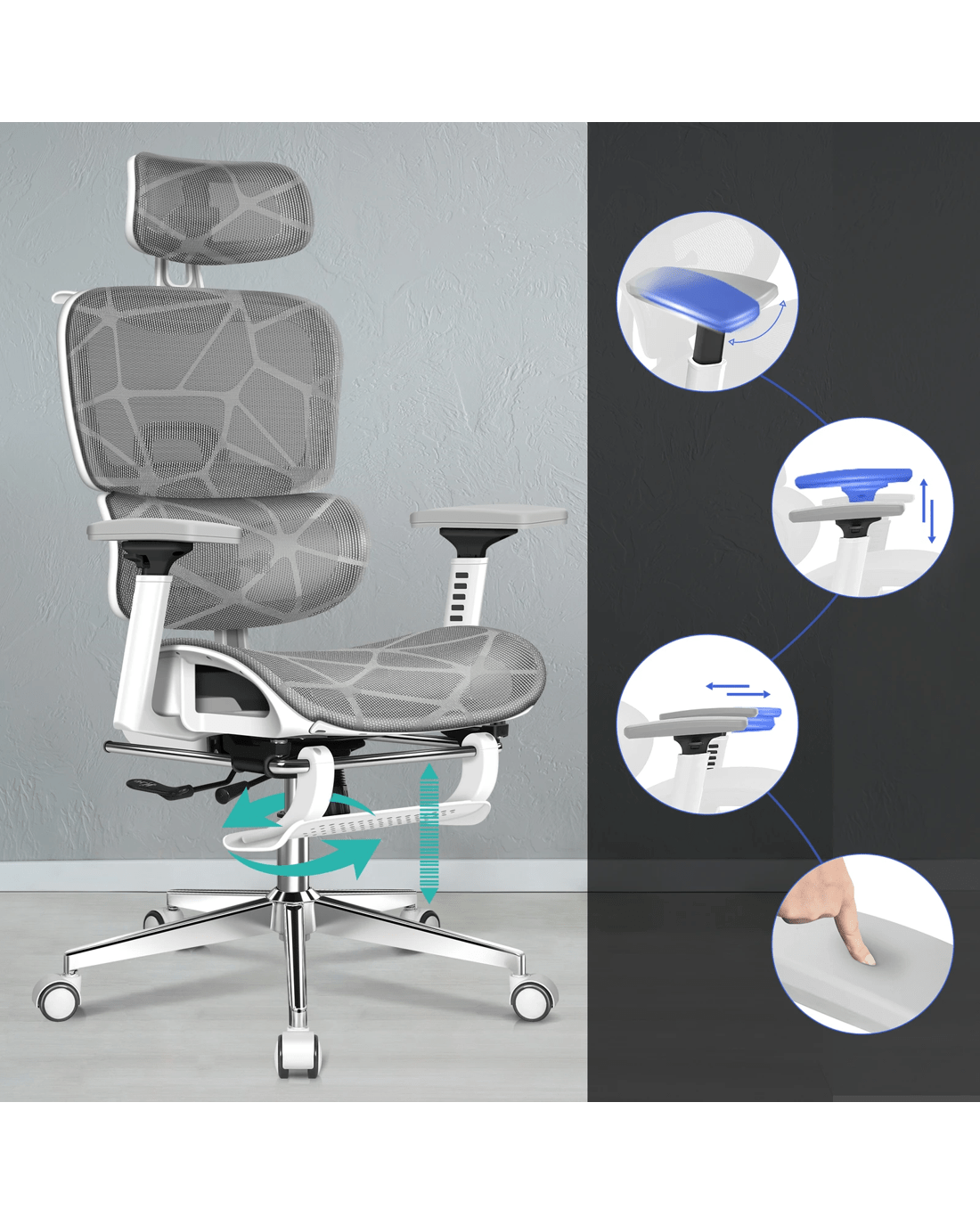 Full range & effective support - Specially designed for ergonomics, the Prox series chair provides ample support to your body in all the right places. Featuring divisional and ergonomic high back design with 4 gears height adjustable backrest, this computer chair suits the curvature of your spine.