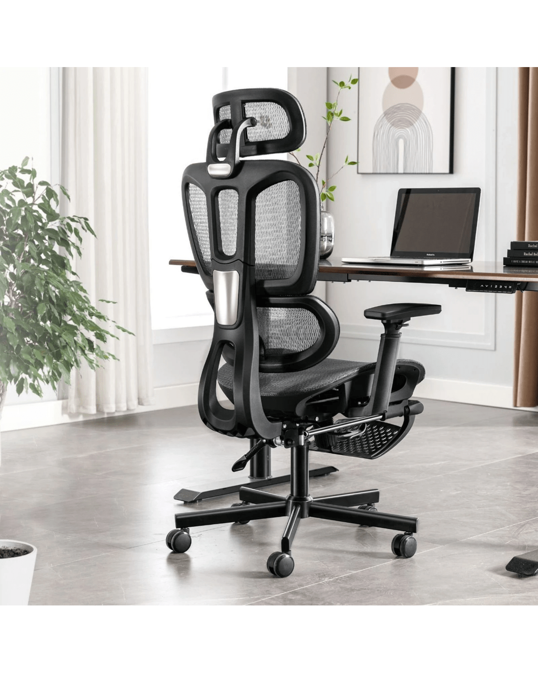 Flexible 3D armrests - Smooth, precise adjustments in three directions with a refined internal mechanism. Raise or rotate the armrests to be level with your desk for effective support for your wrists and elbows, or slide them under when you need to sit forward.
