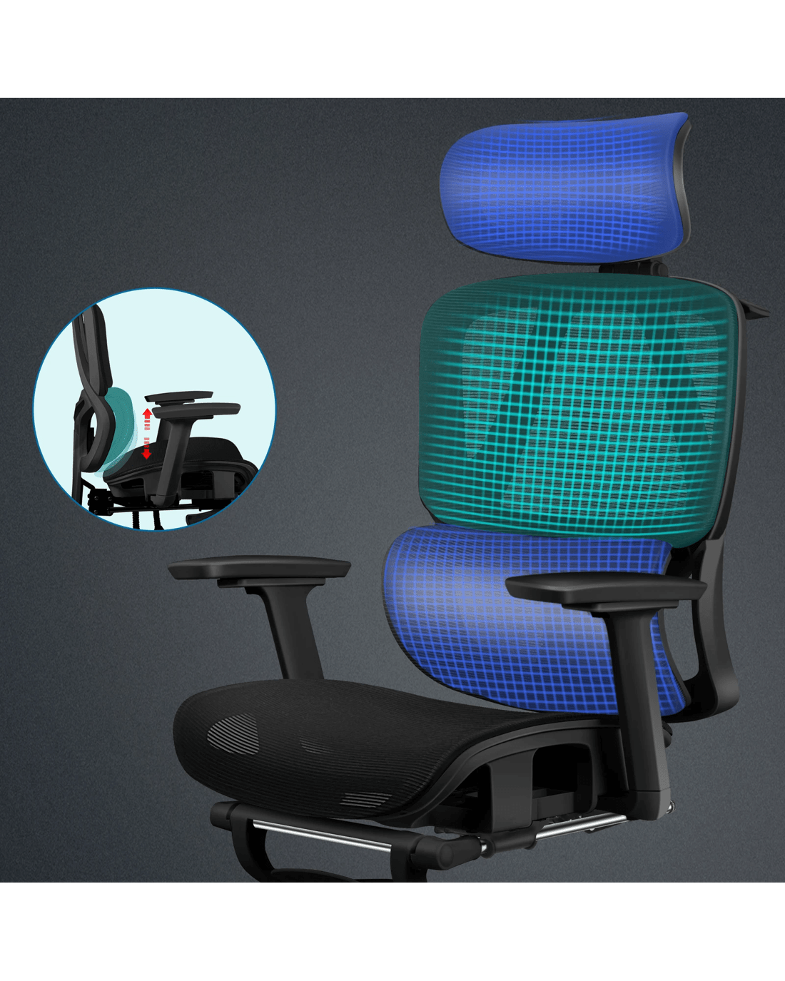 Full range & effective support - Specially designed for ergonomics, the Polaris series desk chair provides ample support to your body in all the right places. Featuring divisional ergonomic high back design with 3-level adjustable lumbar support, this ergonomic office chair suits the curvature of your spine.