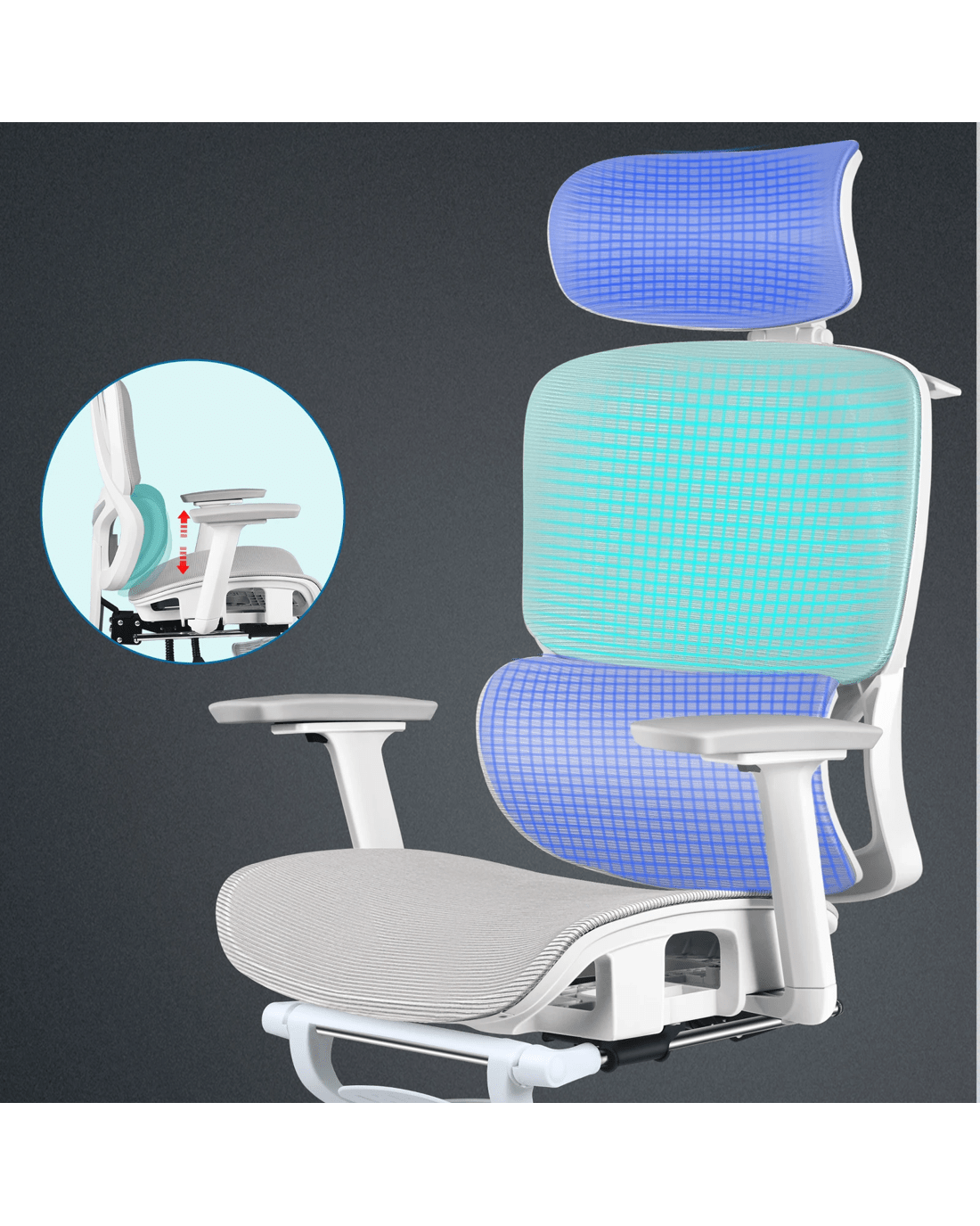 Full range & effective support - Specially designed for ergonomics, the Polaris series desk chair provides ample support to your body in all the right places. Featuring divisional ergonomic high back design with 3-level adjustable lumbar support, this ergonomic office chair suits the curvature of your spine.