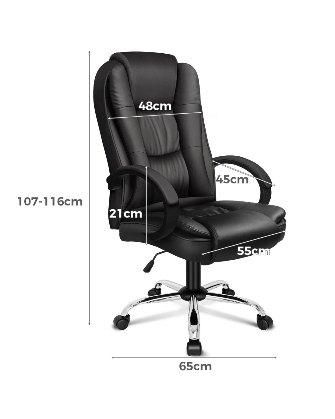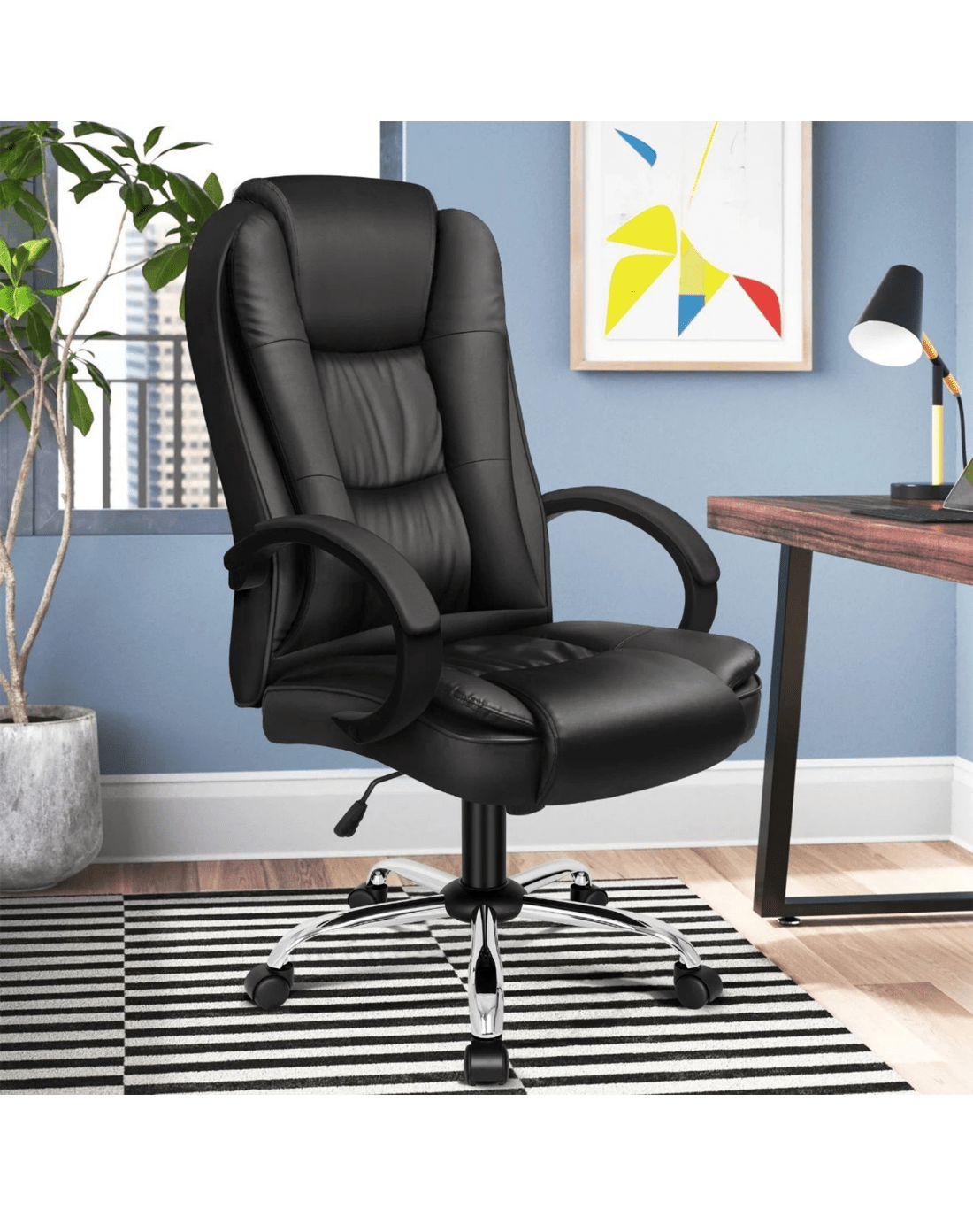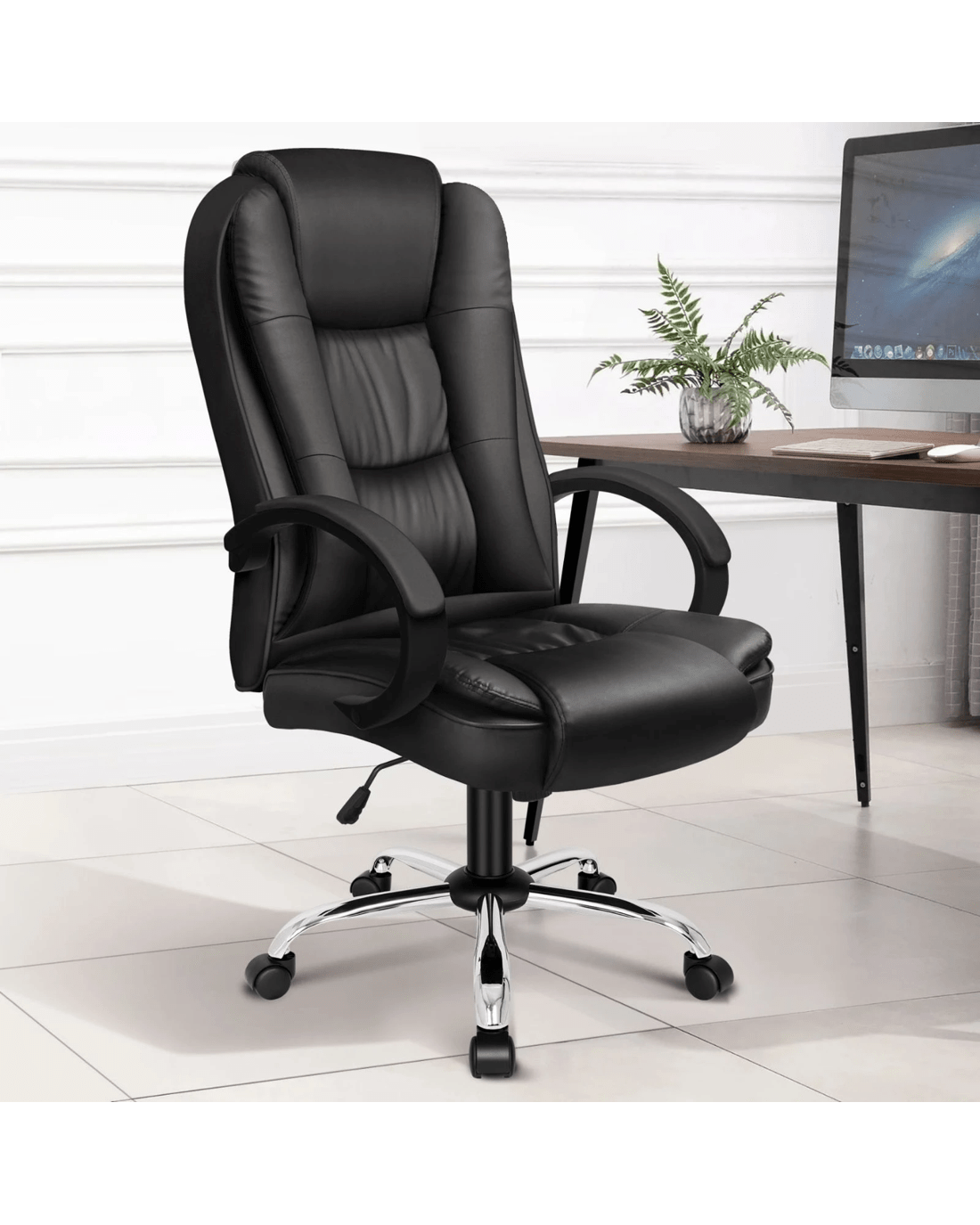 The Alfordson supreme executive office chair is an everlasting classic model. It features a dual-layer butterfly design with generous foam paddings, to make sure you can indulge yourself each time sitting on it. A stylish chrome base with Gas-Lift system and tilt function, delivering absolute five star luxury. Its ergonomic S-curve design with built-in lumbar and back support fully contour your body shape, allowing you to work or play at your peak for long periods of time in optimal comfort. The double-stitched upholstery crafted from premium PU leather ensures optimal durability and easy cleaning.