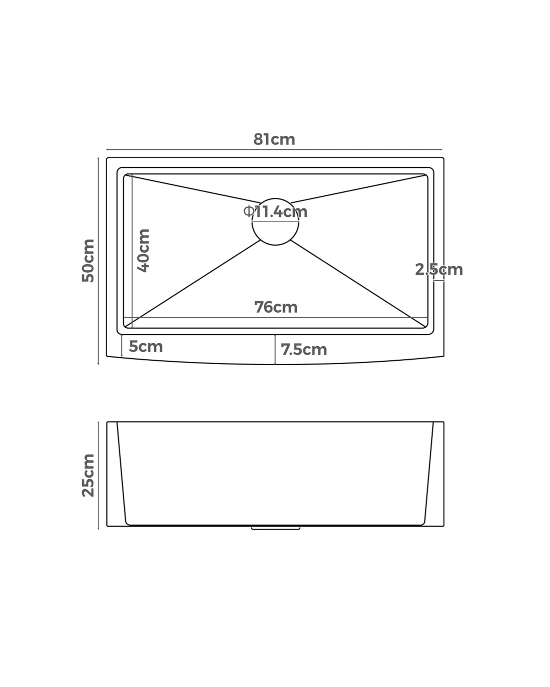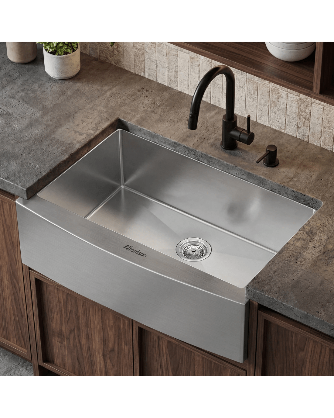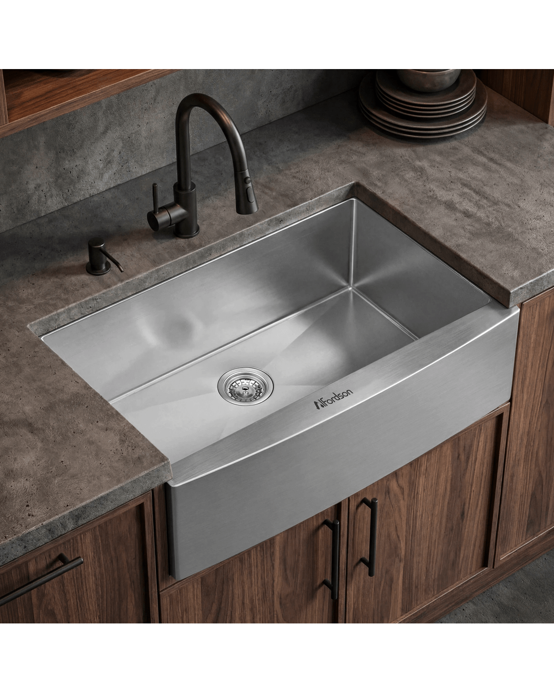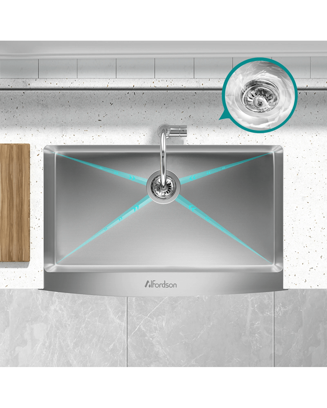 Alfordson Farmhouse Kitchen Sink 81x50cm Stainless Steel Basin Single Bowl - Silver