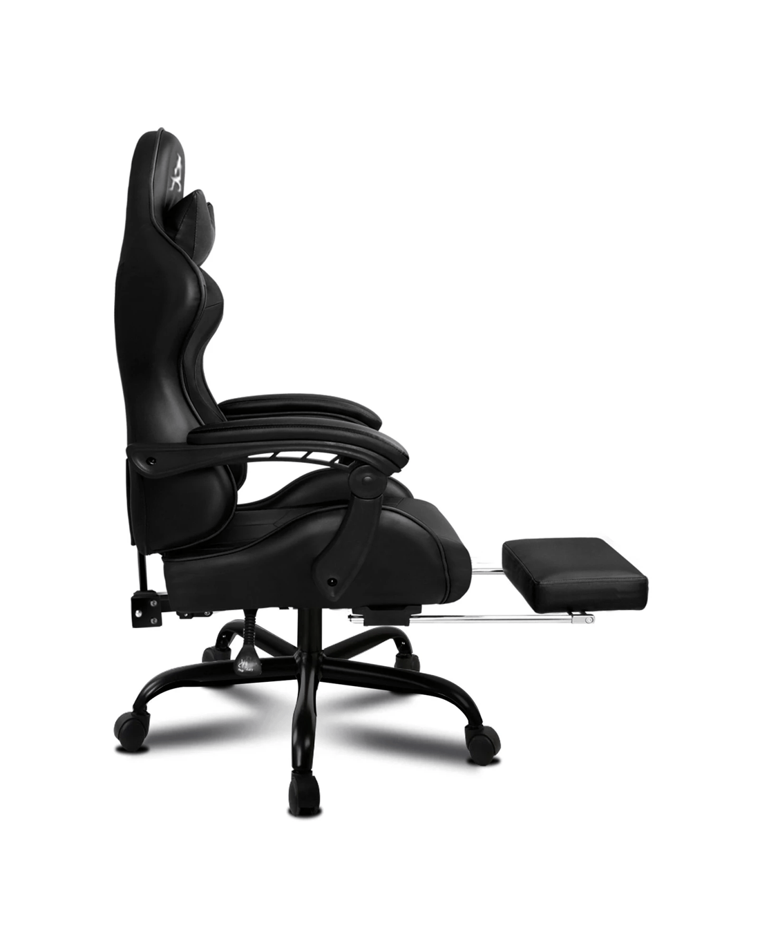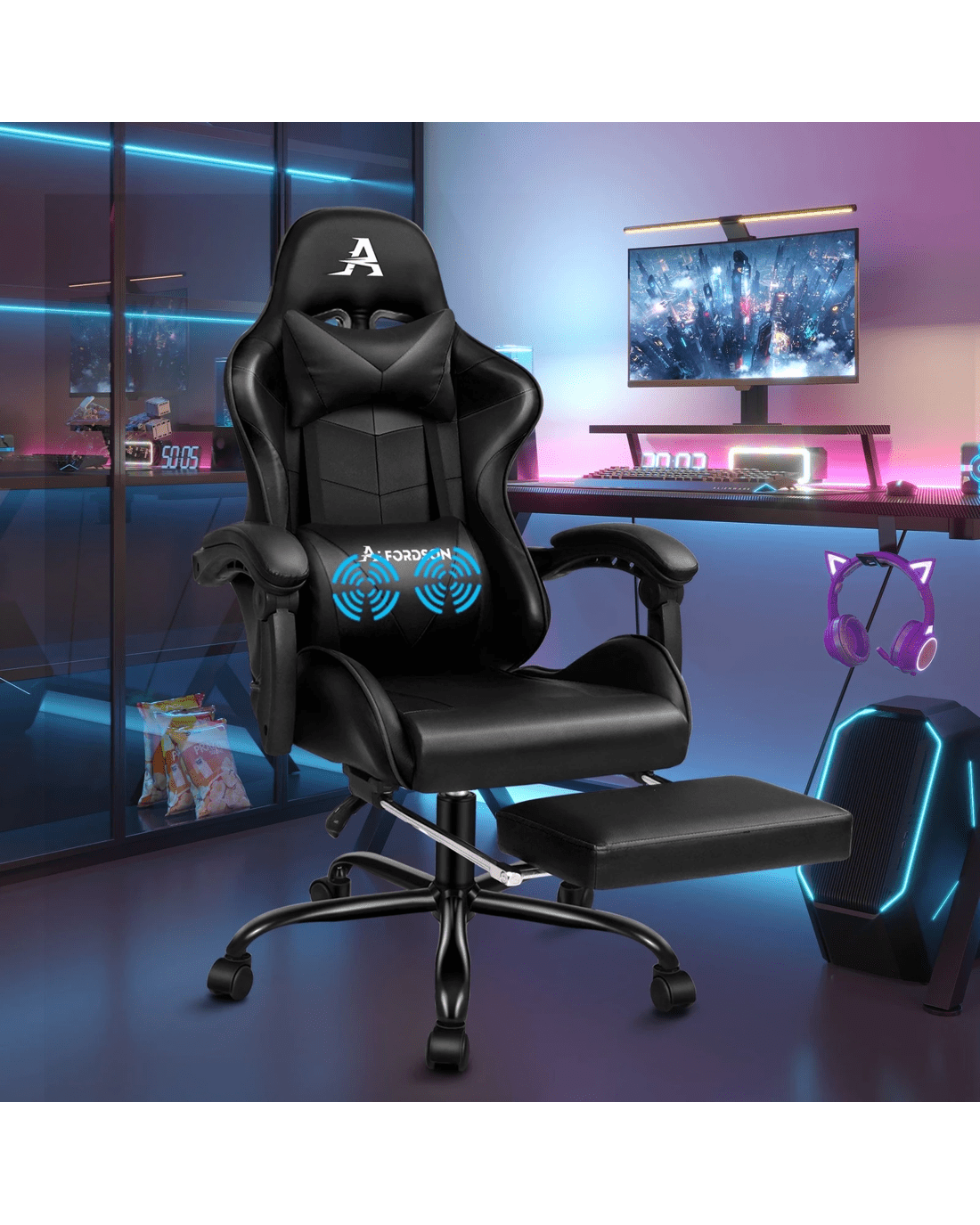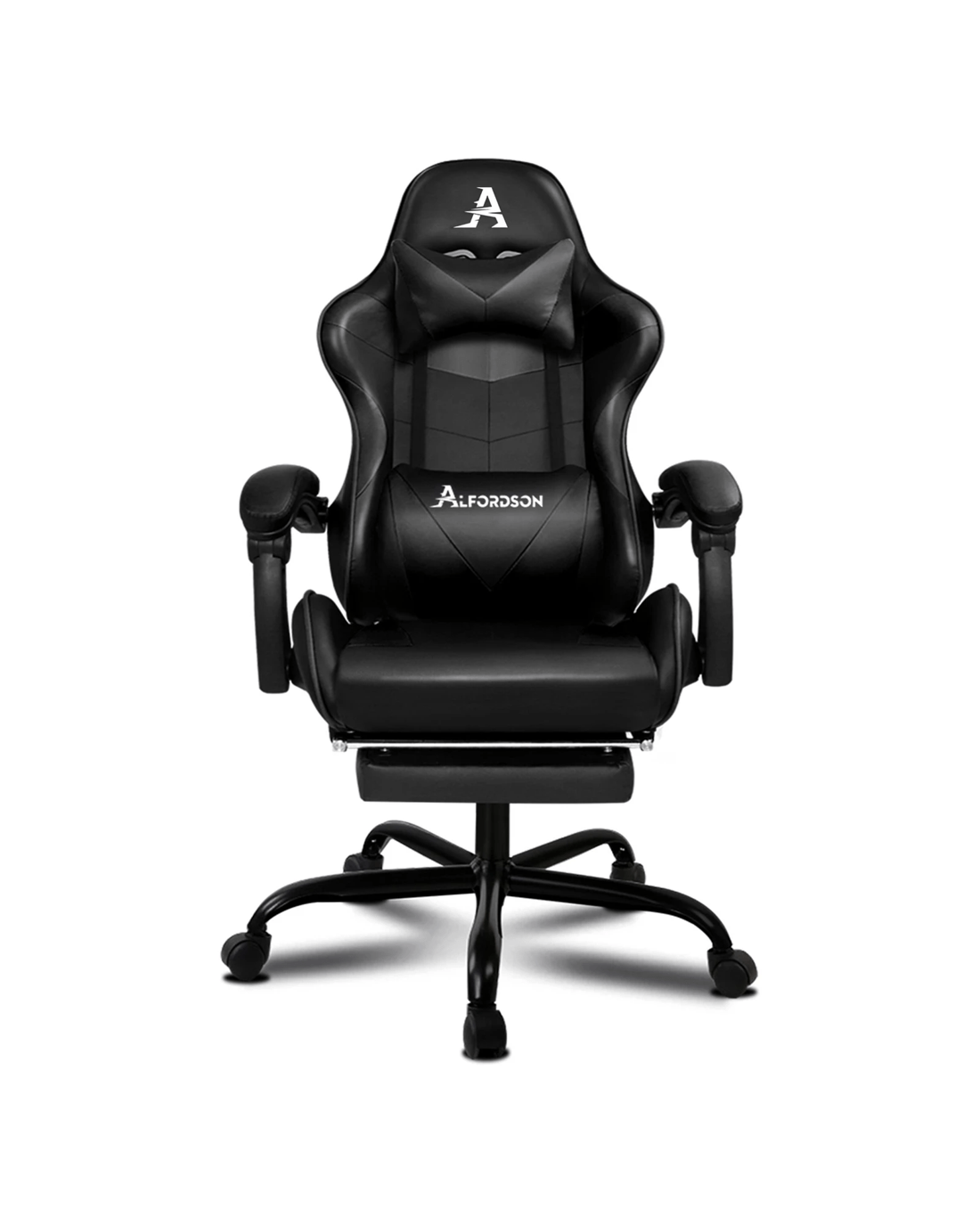 The Alfordson supreme gaming office chair is born for serious gamer, and the smart working executive who loves the adrenaline of residing in a gaming chair. Our all-metal frame racer chair is the ultimate for movers and shakers like yourself. Combined with retractable padded footrest that suits your personalized positions while sitting, sleeping or playing games. Its detachable and height-adjustable lumbar and neck cushions offers perfect support to make you relaxed. It features a sturdy chrome base with up to 150 degree back recline adjustment and 360 degree swivel, you can lock the position of reclination as you wish. Premium PU leather ensures optimal durability and easy cleaning.