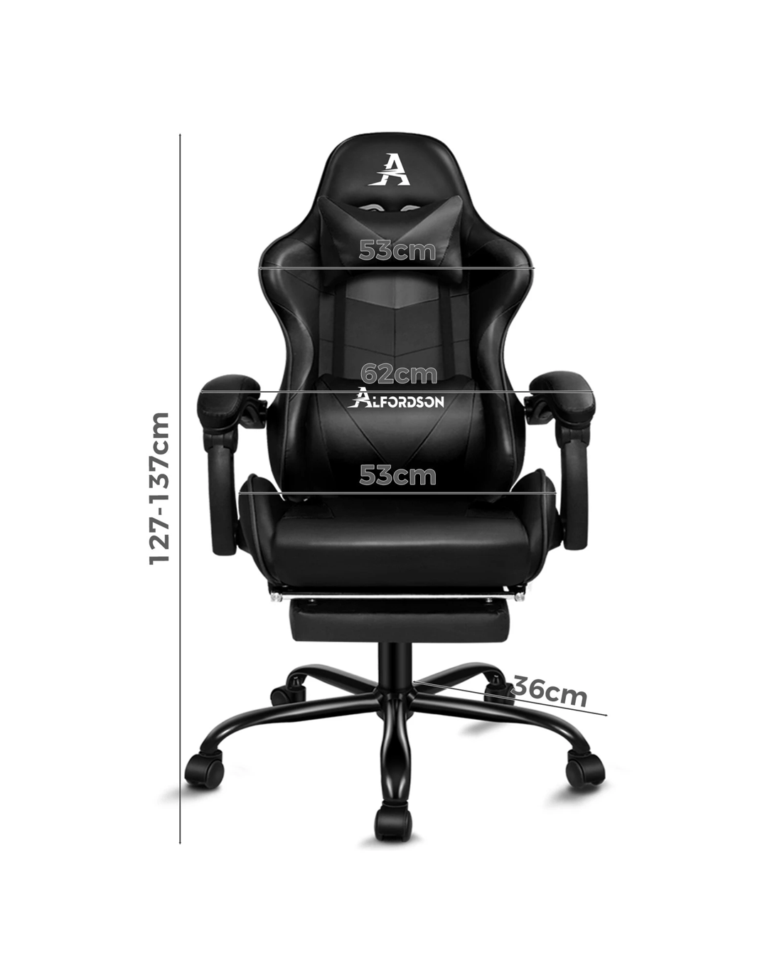 Sold by Aussie Union GroupAlfordson Gaming Chair Office Executive Racing Footrest Seat Leather - Black
