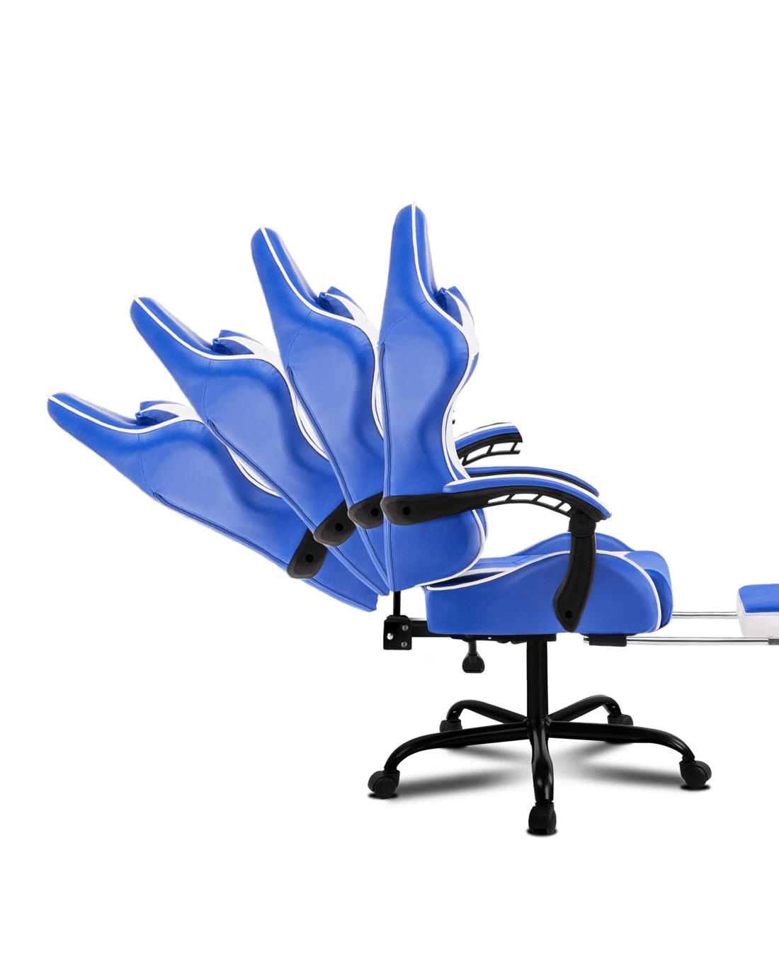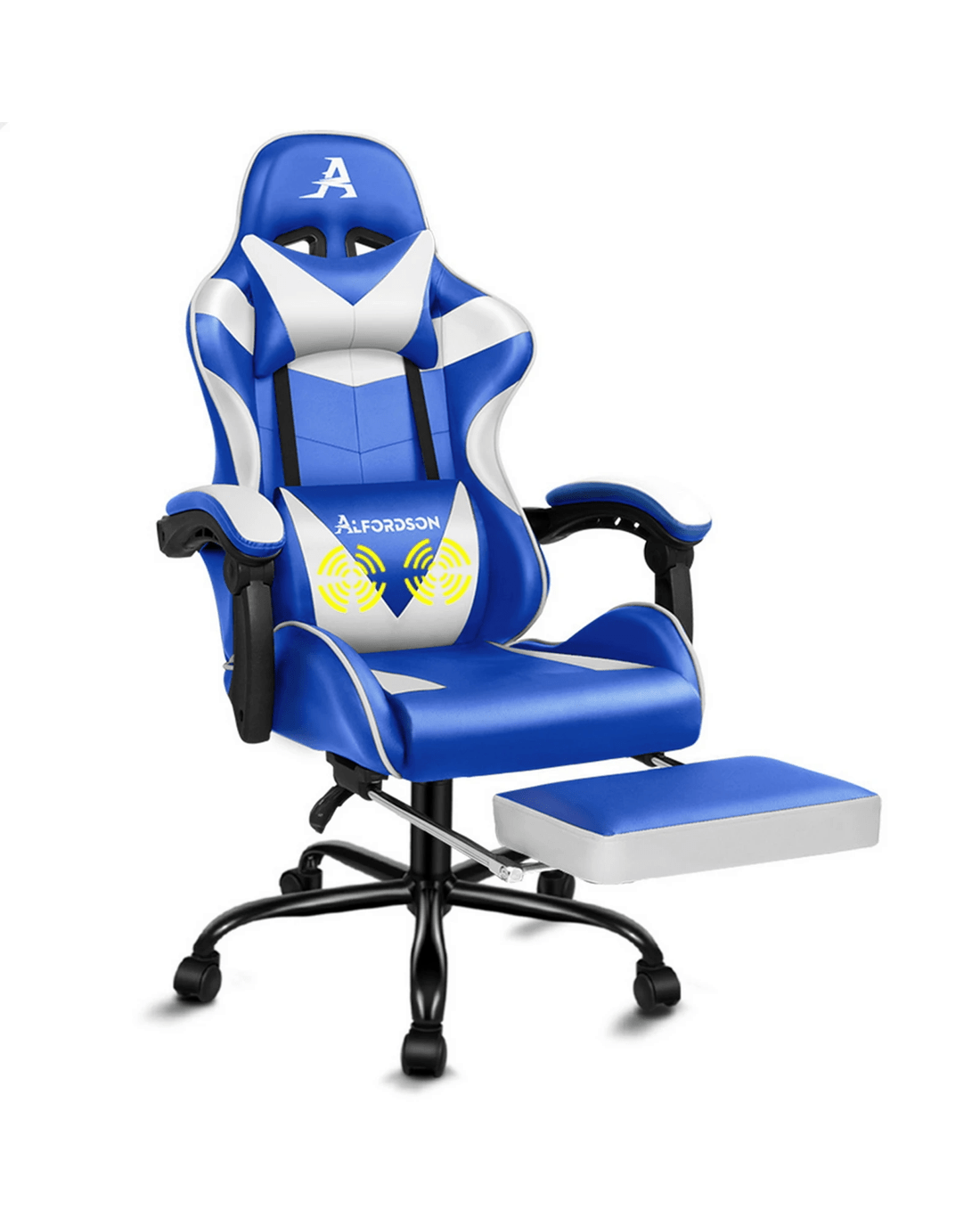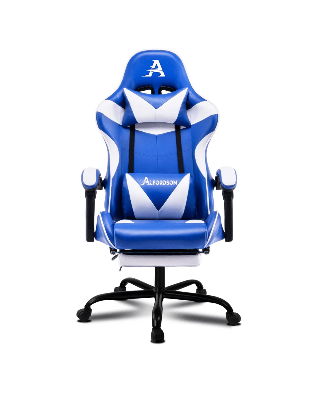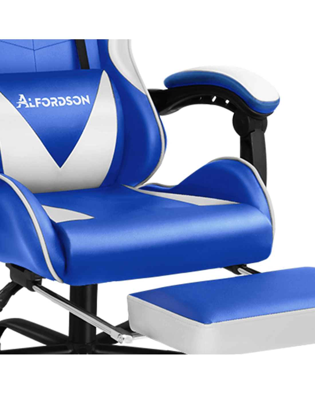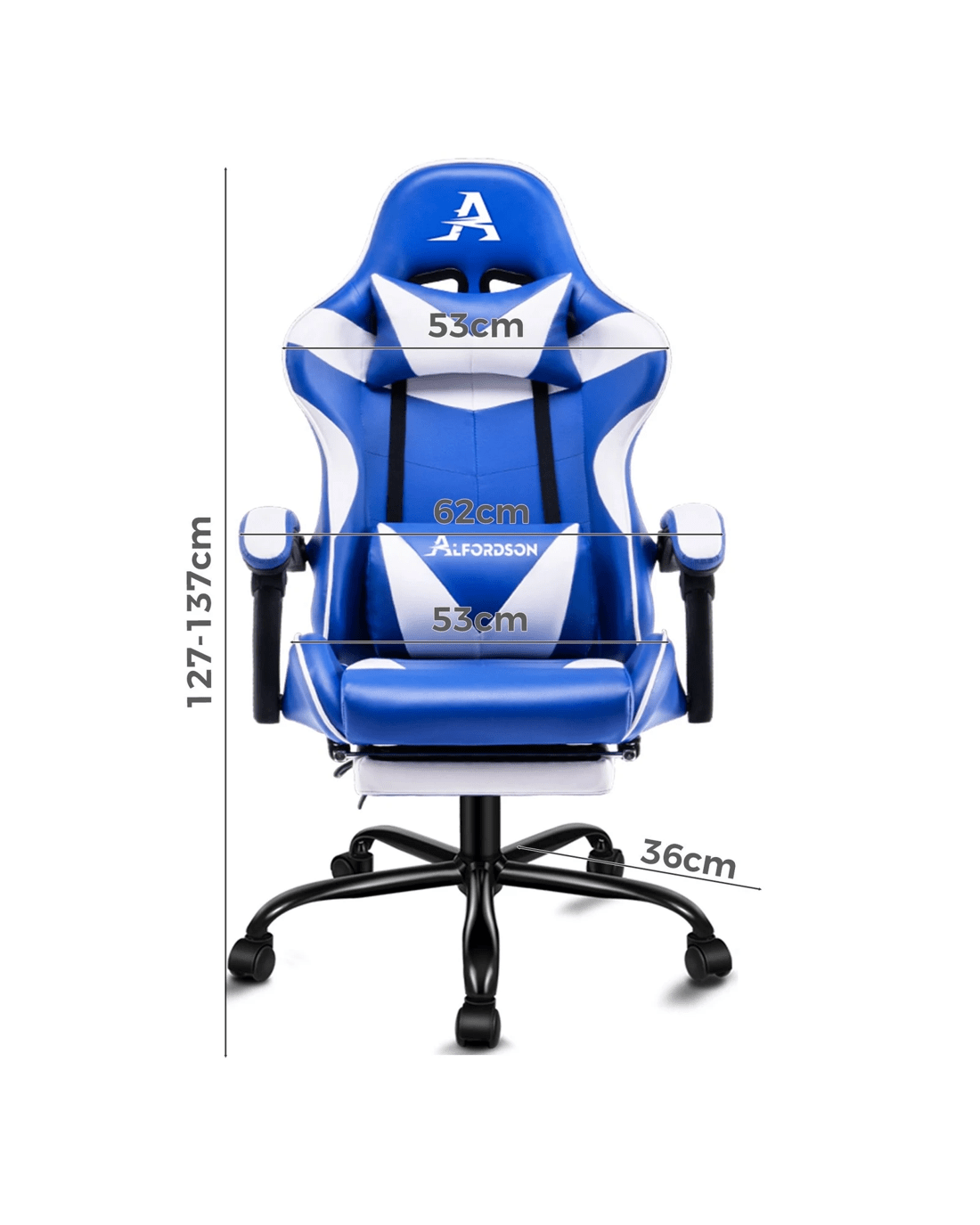 Alfordson Gaming Chair Office Executive Racing Footrest Seat Leather - Blue