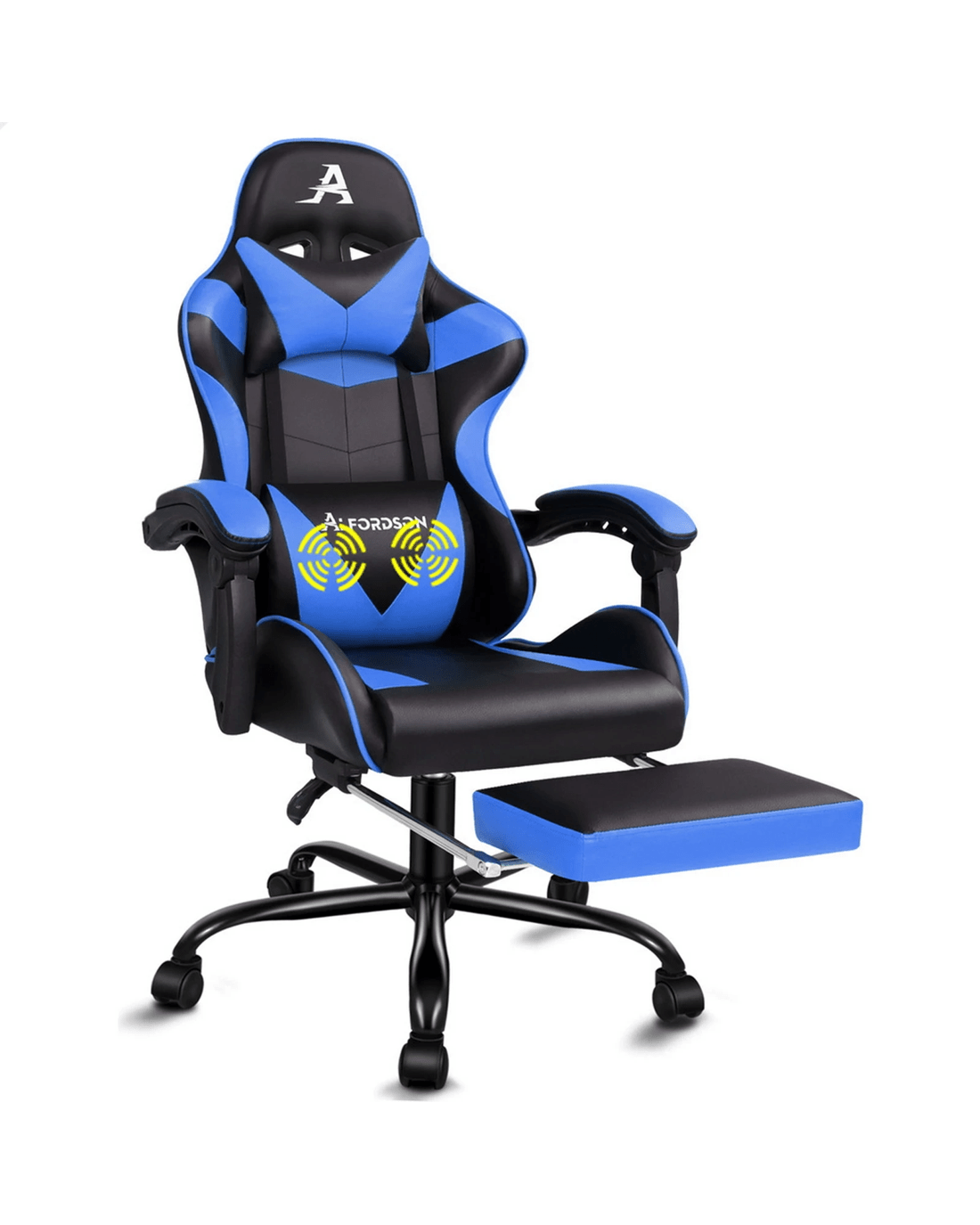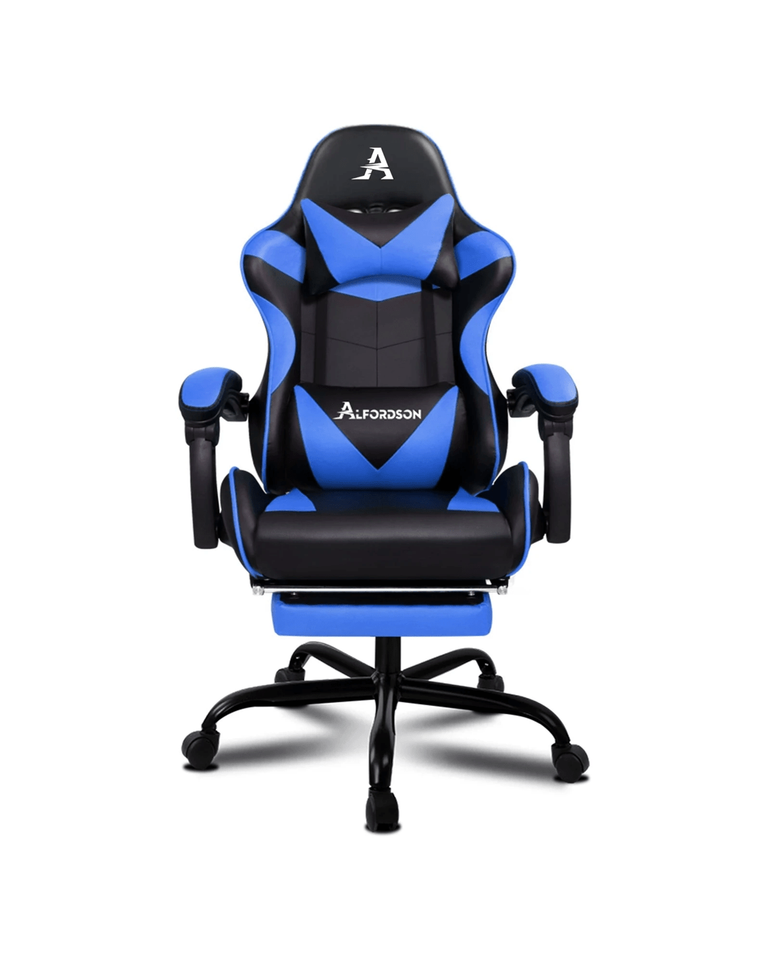 The Alfordson supreme gaming office chair is born for serious gamer, and the smart working executive who loves the adrenaline of residing in a gaming chair. Our all-metal frame racer chair is the ultimate for movers and shakers like yourself. Combined with retractable padded footrest that suits your personalized positions while sitting, sleeping or playing games. Its detachable and height-adjustable lumbar and neck cushions offers perfect support to make you relaxed. It features a sturdy chrome base with up to 150 degree back recline adjustment and 360 degree swivel, you can lock the position of reclination as you wish. Premium PU leather ensures optimal durability and easy cleaning.