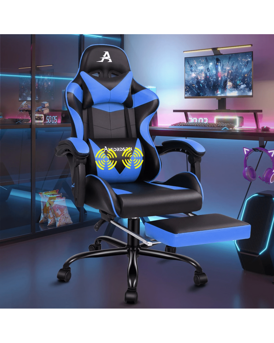 Sold by Aussie Union GroupAlfordson Gaming Chair Office Executive Racing Footrest Seat PU Leather - Blue