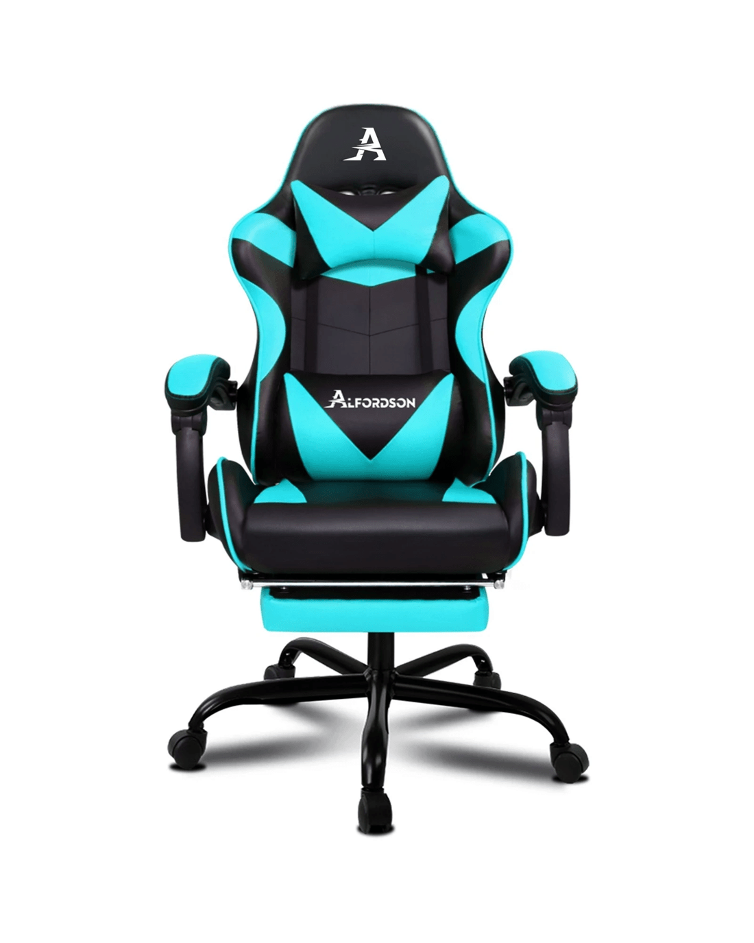 Sold by Aussie Union GroupAlfordson Gaming Chair Office Executive Racing Footrest Seat PU Leather - Cyan