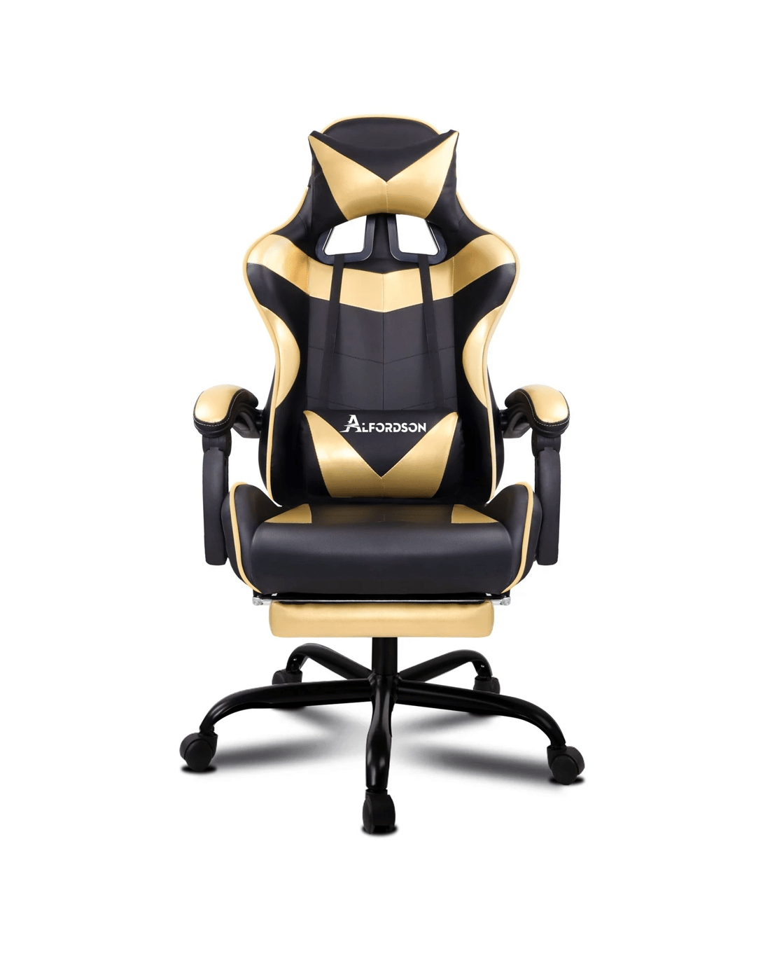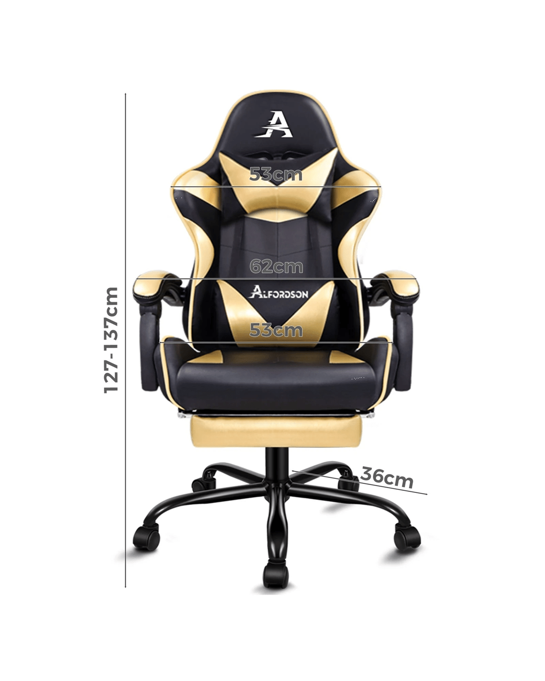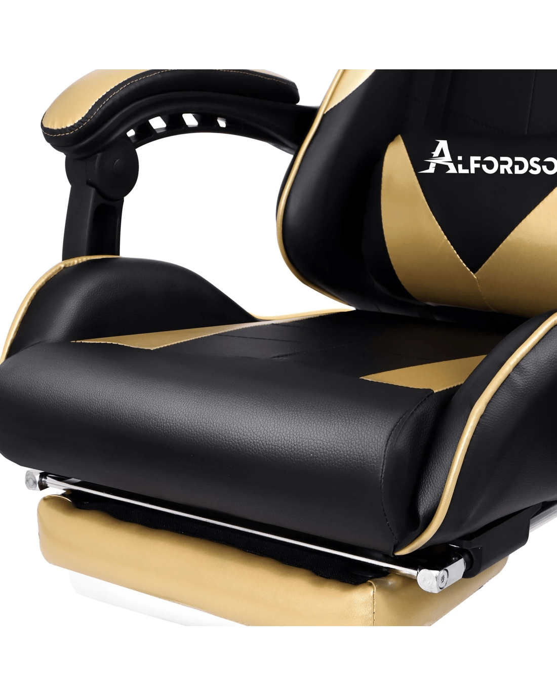 Sold by Aussie Union GroupAlfordson Gaming Chair Office Executive Racing Footrest Seat PU Leather - Gold