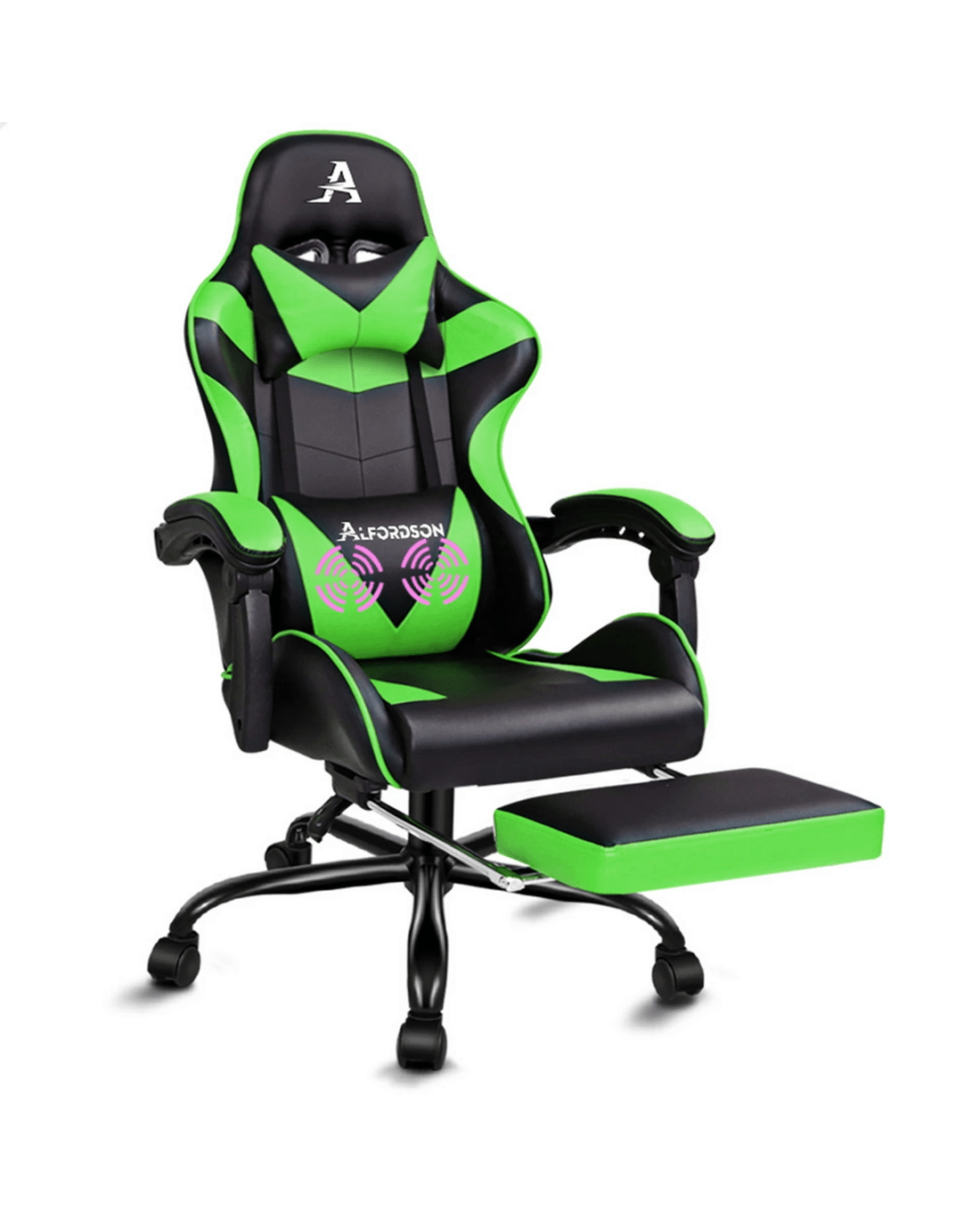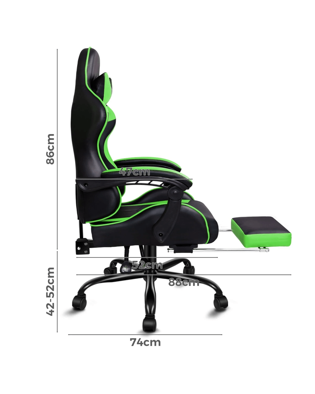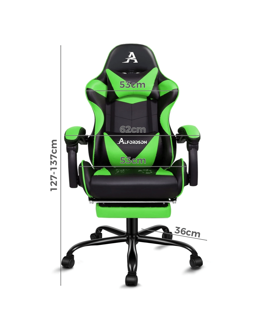 Alfordson Gaming Chair Office Executive Racing Footrest Seat PU Leather - Green