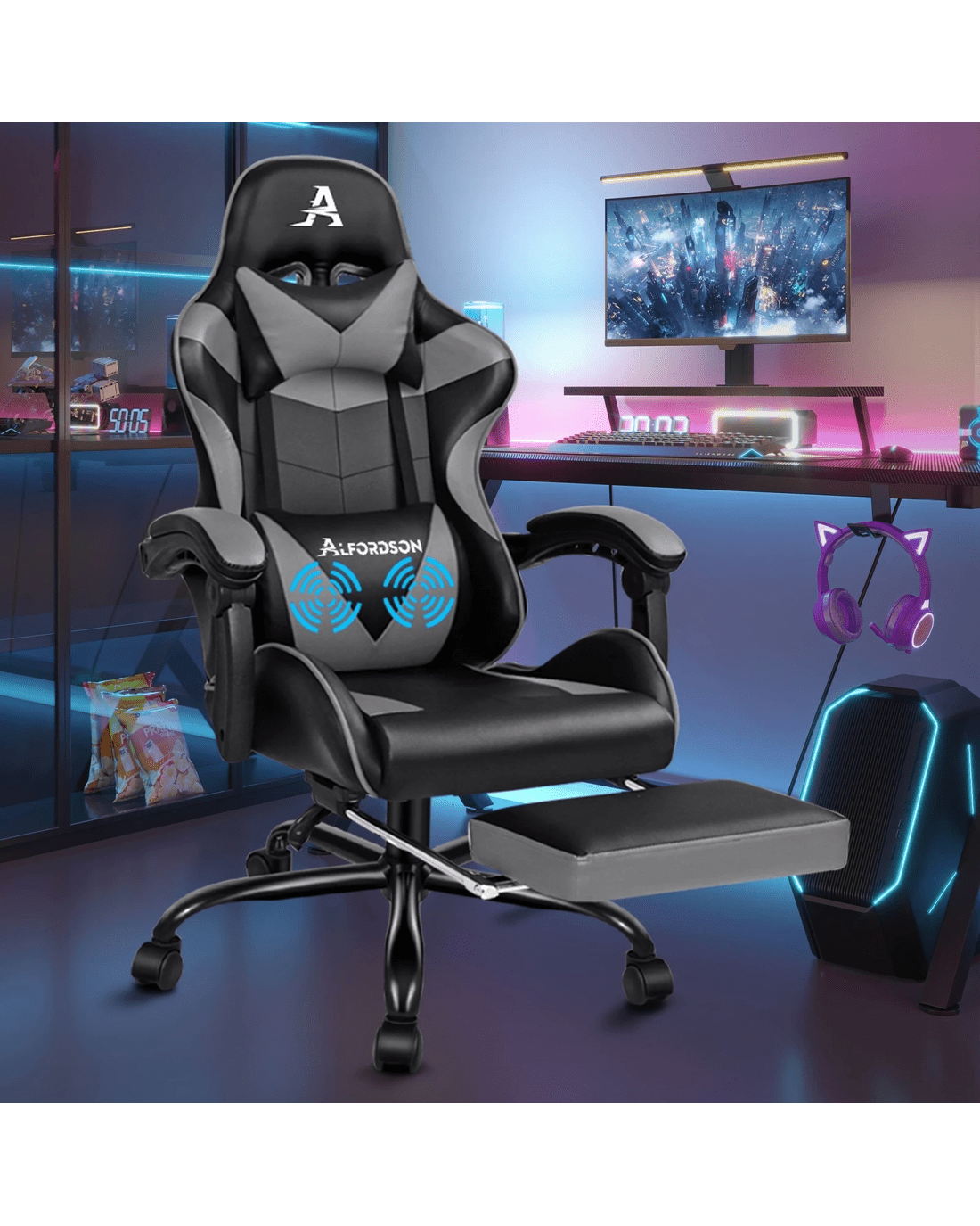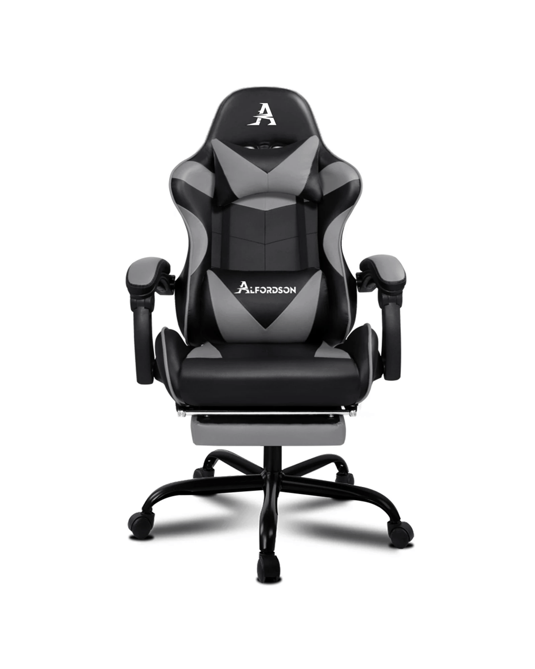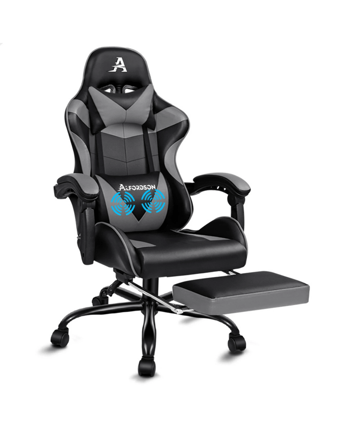 The Alfordson supreme gaming office chair is born for serious gamer, and the smart working executive who loves the adrenaline of residing in a gaming chair. Our all-metal frame racer chair is the ultimate for movers and shakers like yourself. Combined with retractable padded footrest that suits your personalized positions while sitting, sleeping or playing games. Its detachable and height-adjustable lumbar and neck cushions offers perfect support to make you relaxed. It features a sturdy chrome base with up to 150 degree back recline adjustment and 360 degree swivel, you can lock the position of reclination as you wish. Premium PU leather ensures optimal durability and easy cleaning.