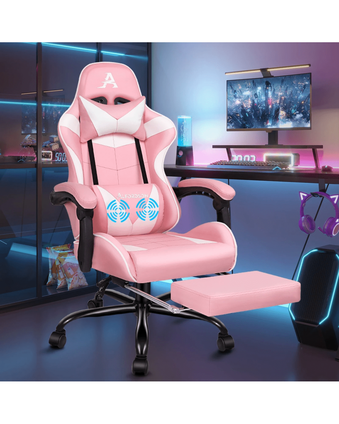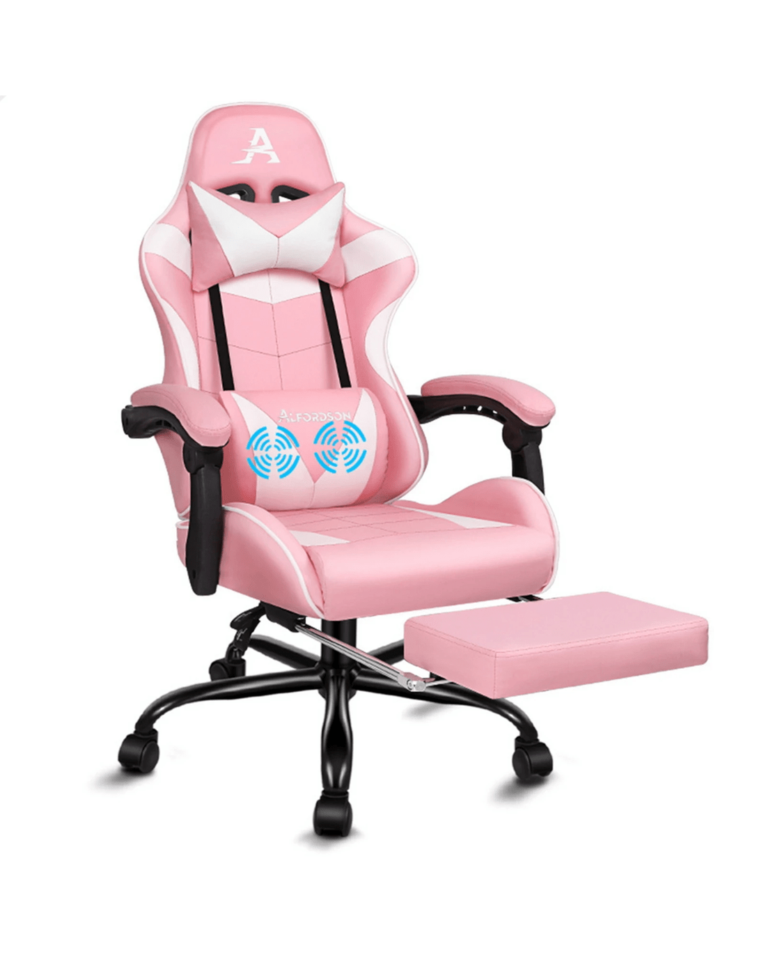 The Alfordson supreme gaming office chair is born for serious gamer, and the smart working executive who loves the adrenaline of residing in a gaming chair. Our all-metal frame racer chair is the ultimate for movers and shakers like yourself. Combined with retractable padded footrest that suits your personalized positions while sitting, sleeping or playing games. Its detachable and height-adjustable lumbar and neck cushions offers perfect support to make you relaxed. It features a sturdy chrome base with up to 150 degree back recline adjustment and 360 degree swivel, you can lock the position of reclination as you wish. Premium PU leather ensures optimal durability and easy cleaning.