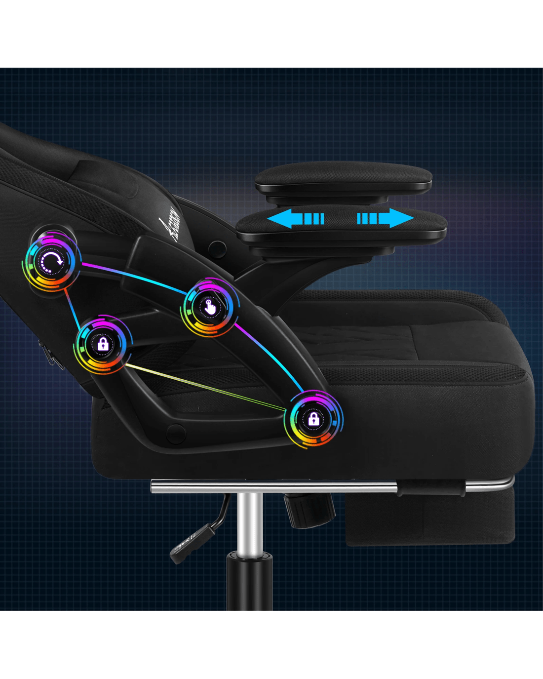 With 12 colours of LED and multiple light settings, this ergonomic gaming chair comes with hundreds of lighting modes, providing a unique and aesthetic glow to your gaming setup. Upholstery crafted from premium linen fabric and generous foam paddings ensures optimal durability and easy cleaning.