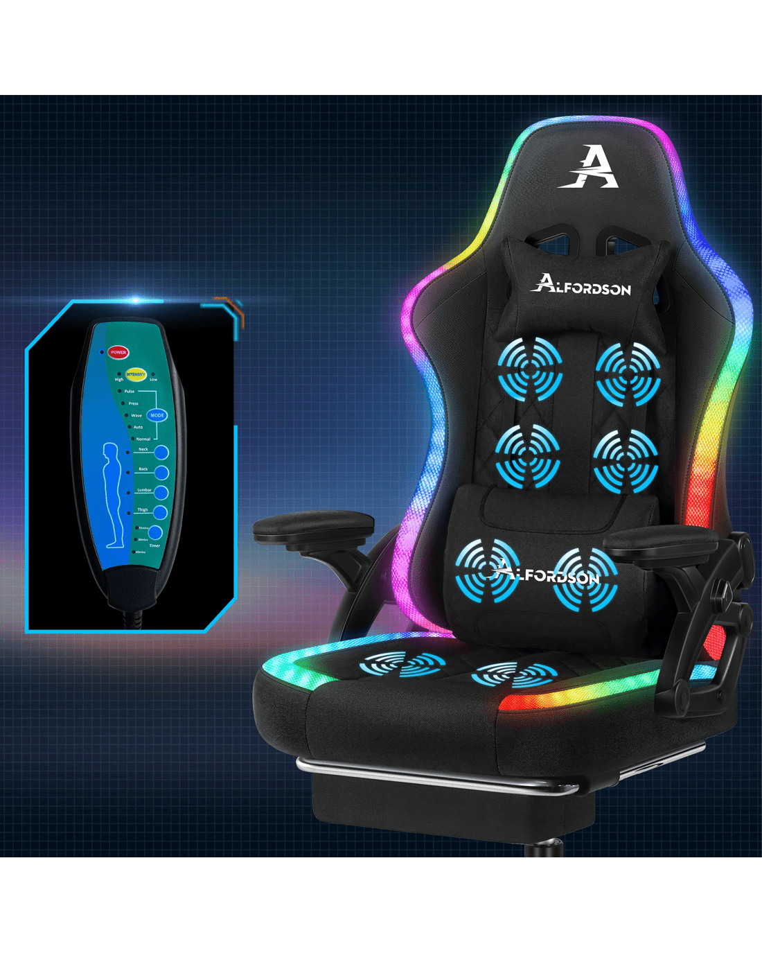 Sold by Aussie Union GroupAlfordson Gaming Chair Office Massage 12 RGB LED Computer Fabric - Black