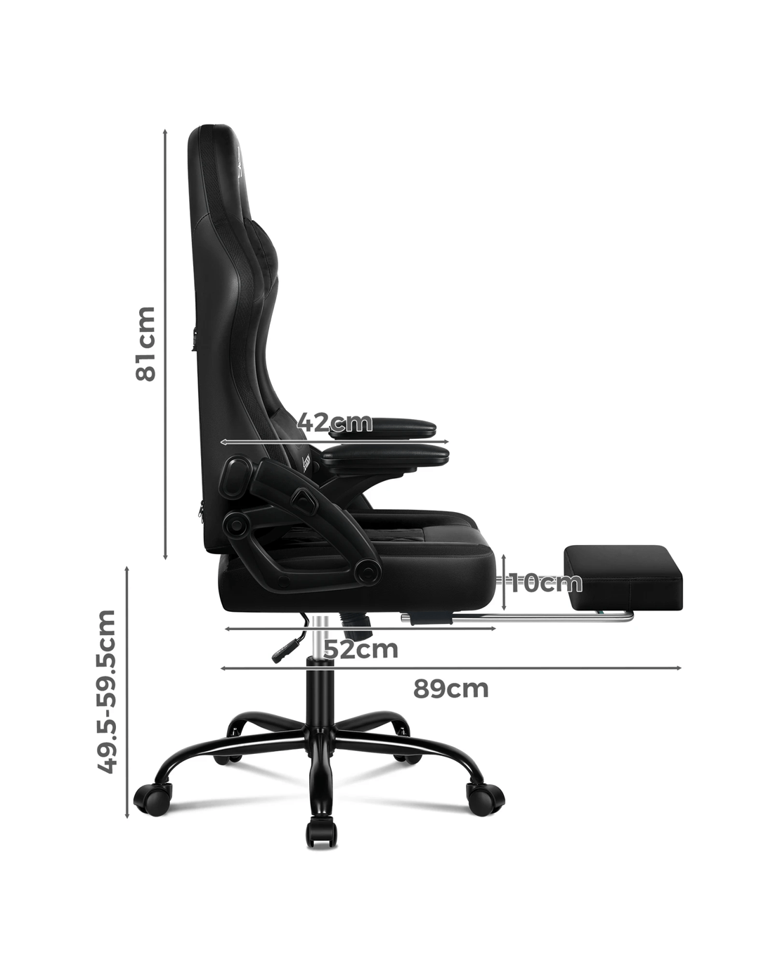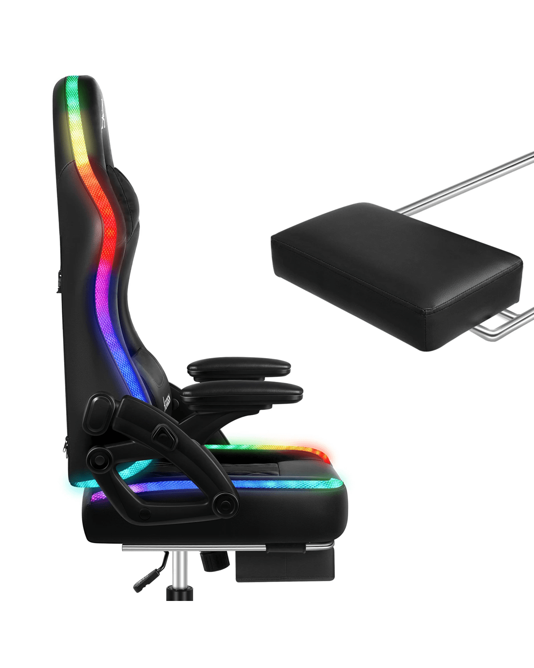 The ergonomic gaming chair is combined with retractable padded footrest that suits your personalized positions while sitting, sleeping, working or playing games. An elite in quality and design, your solution to true comfort.