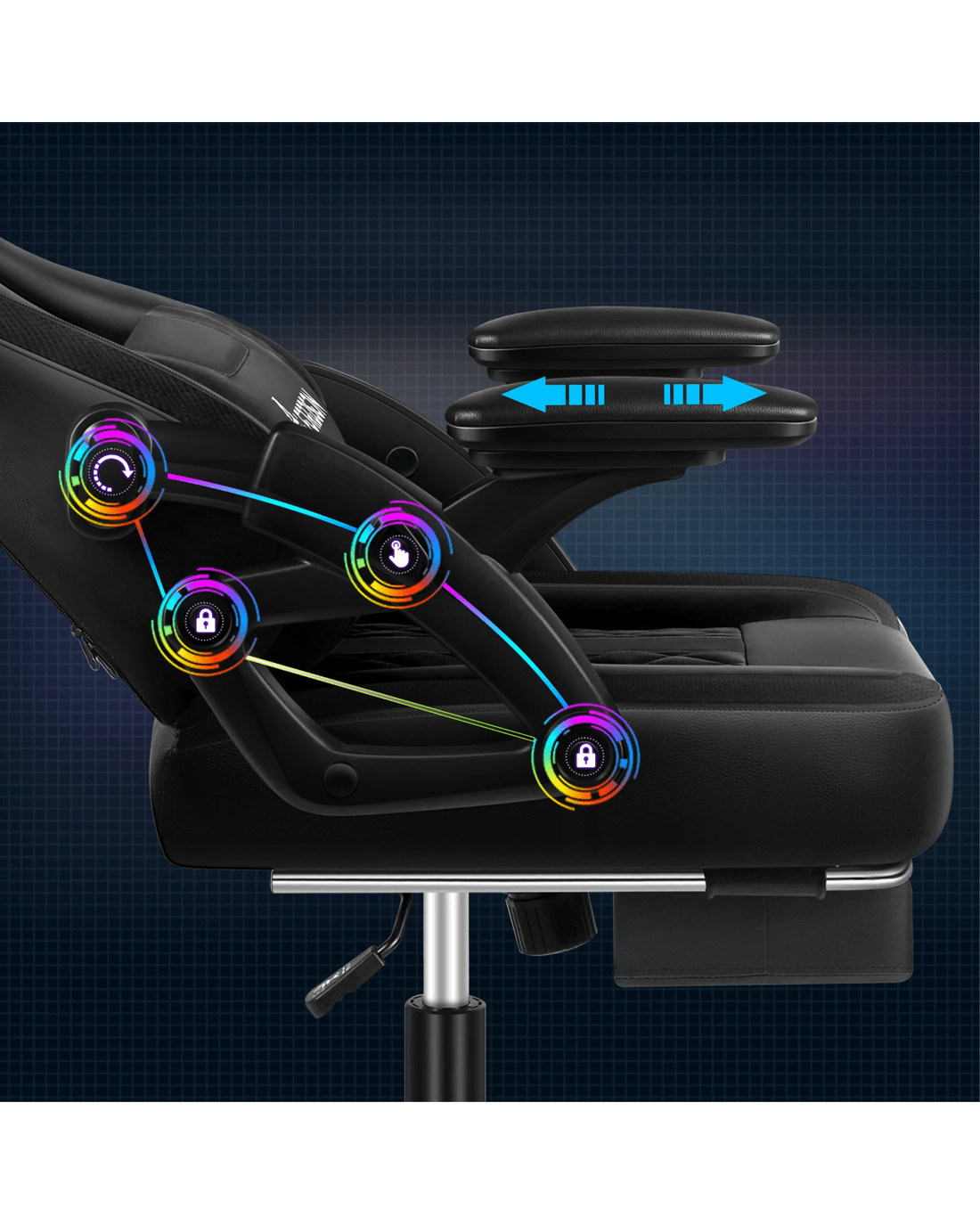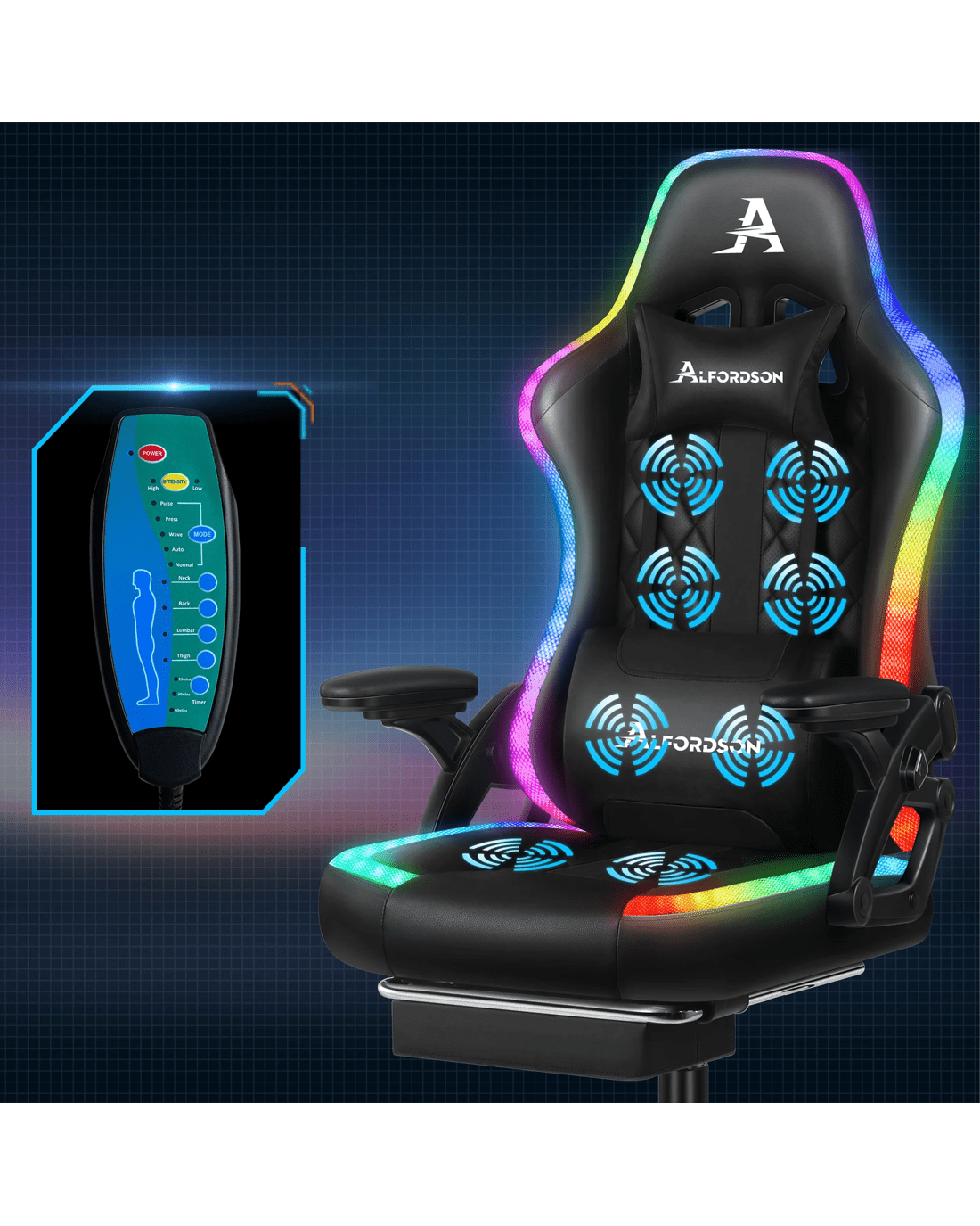 Sold by Aussie Union GroupAlfordson Gaming Chair Office Massage 12 RGB LED Computer Leather - All Black