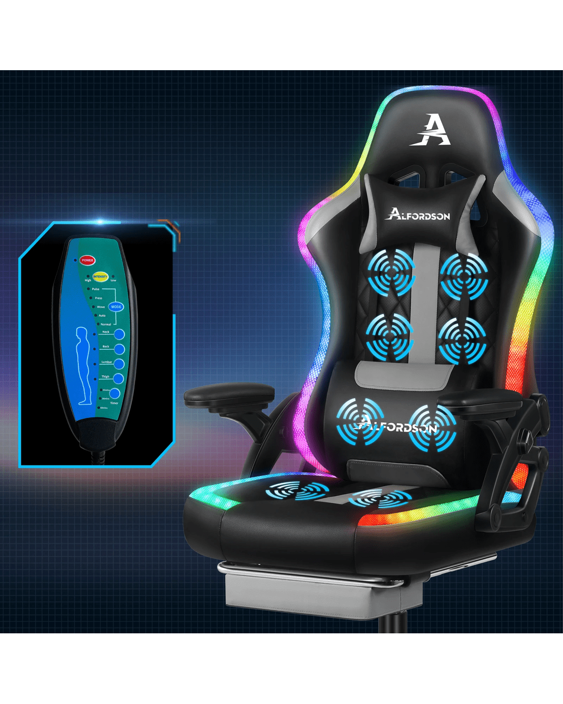 Sold by Aussie Union GroupAlfordson Gaming Chair Office Massage 12 RGB LED Computer Leather - Grey