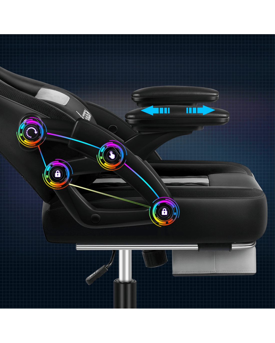 With 12 colours of LED and multiple light settings, this ergonomic gaming chair comes with hundreds of lighting modes, providing a unique and aesthetic glow to your gaming setup. Upholstery crafted from premium linen fabric and generous foam paddings ensures optimal durability and easy cleaning.