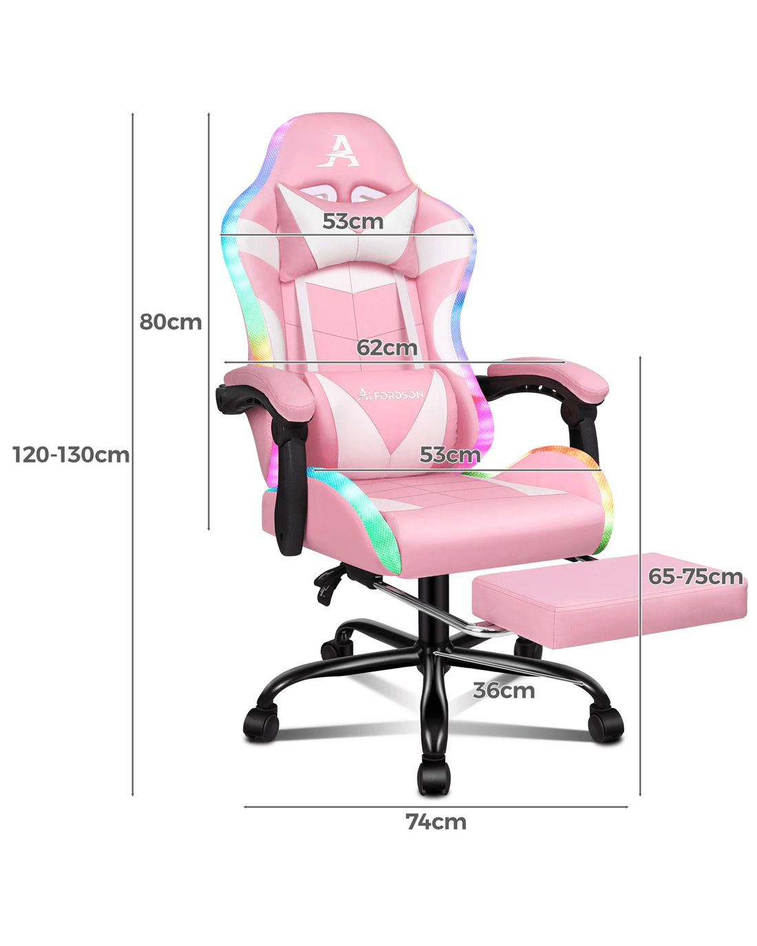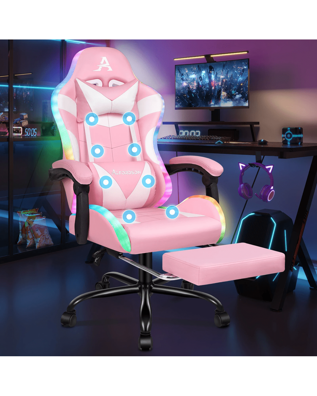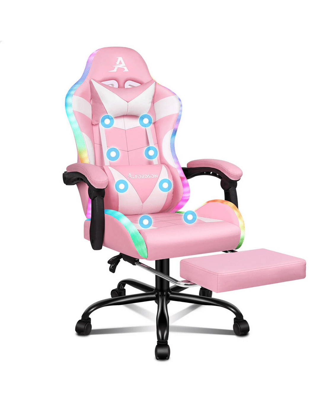 Alfordson Gaming Chair Office Massage 12 RGB LED Computer Seat PU Leather - Pink