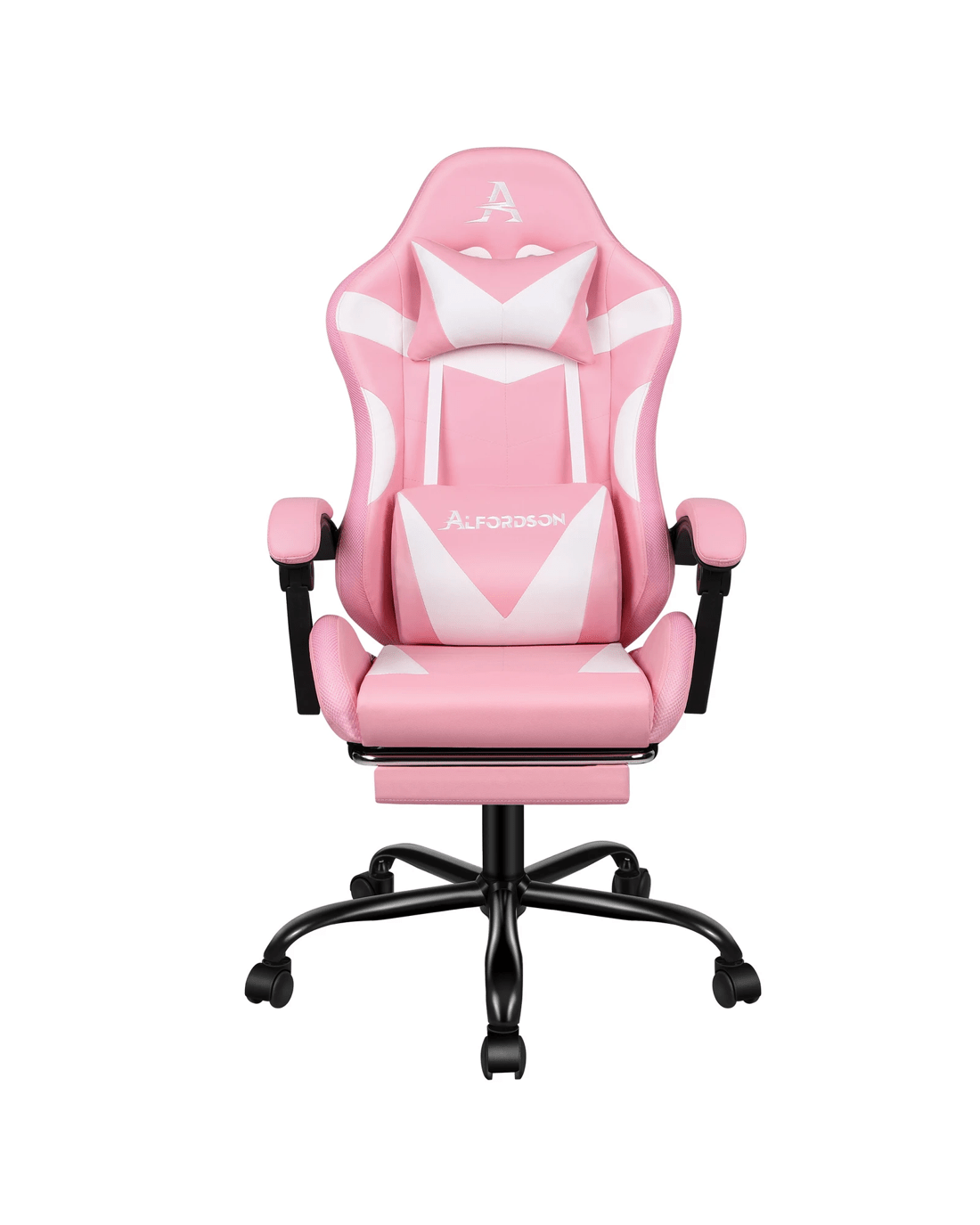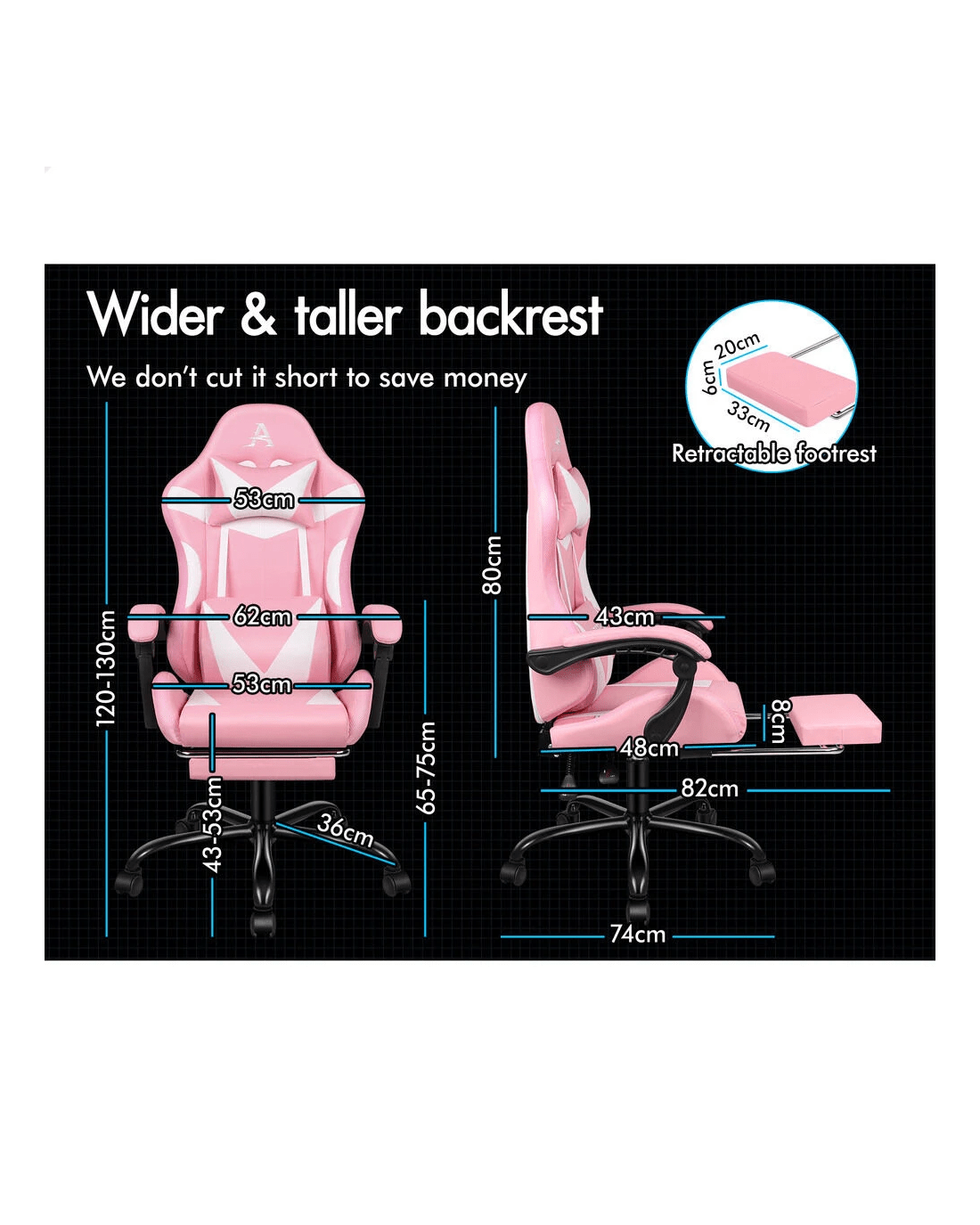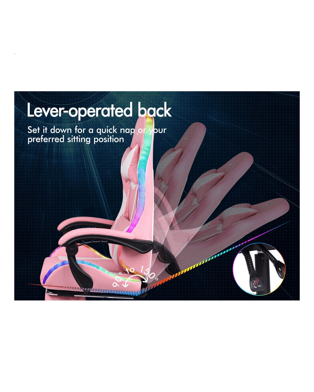 Alfordson Gaming Chair Office Massage 12 RGB LED Computer Seat PU Leather - Pink