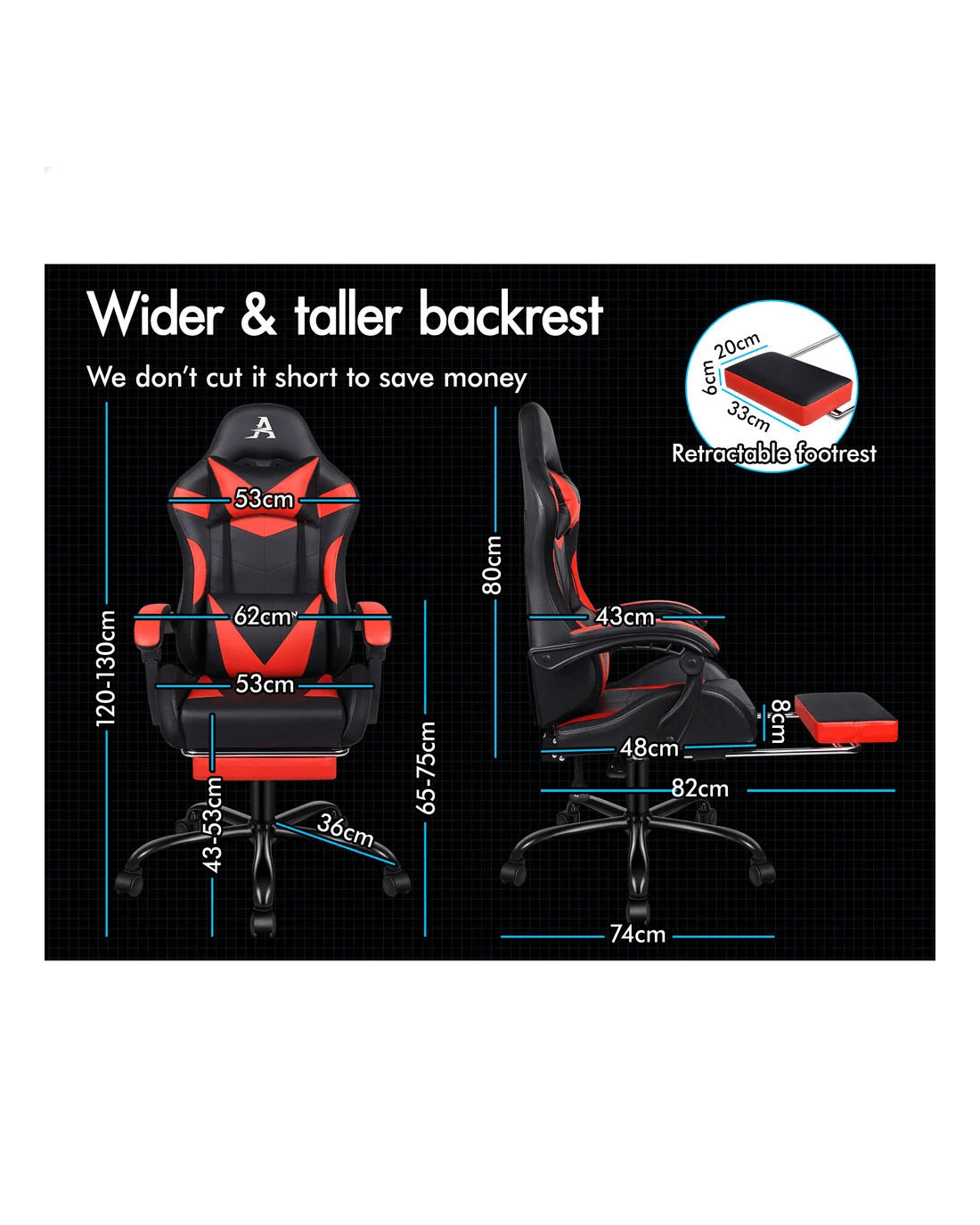 Personalized sitting position adjustment - Whether you're sitting straight or leaning back, our generous 150 degree of recline accommodates effortlessly to your favorite posture. You can lock the position of reclination as you wish. Combined with retractable padded footrest, the racing chair suits your personalized positions while sitting, sleeping or playing games.
